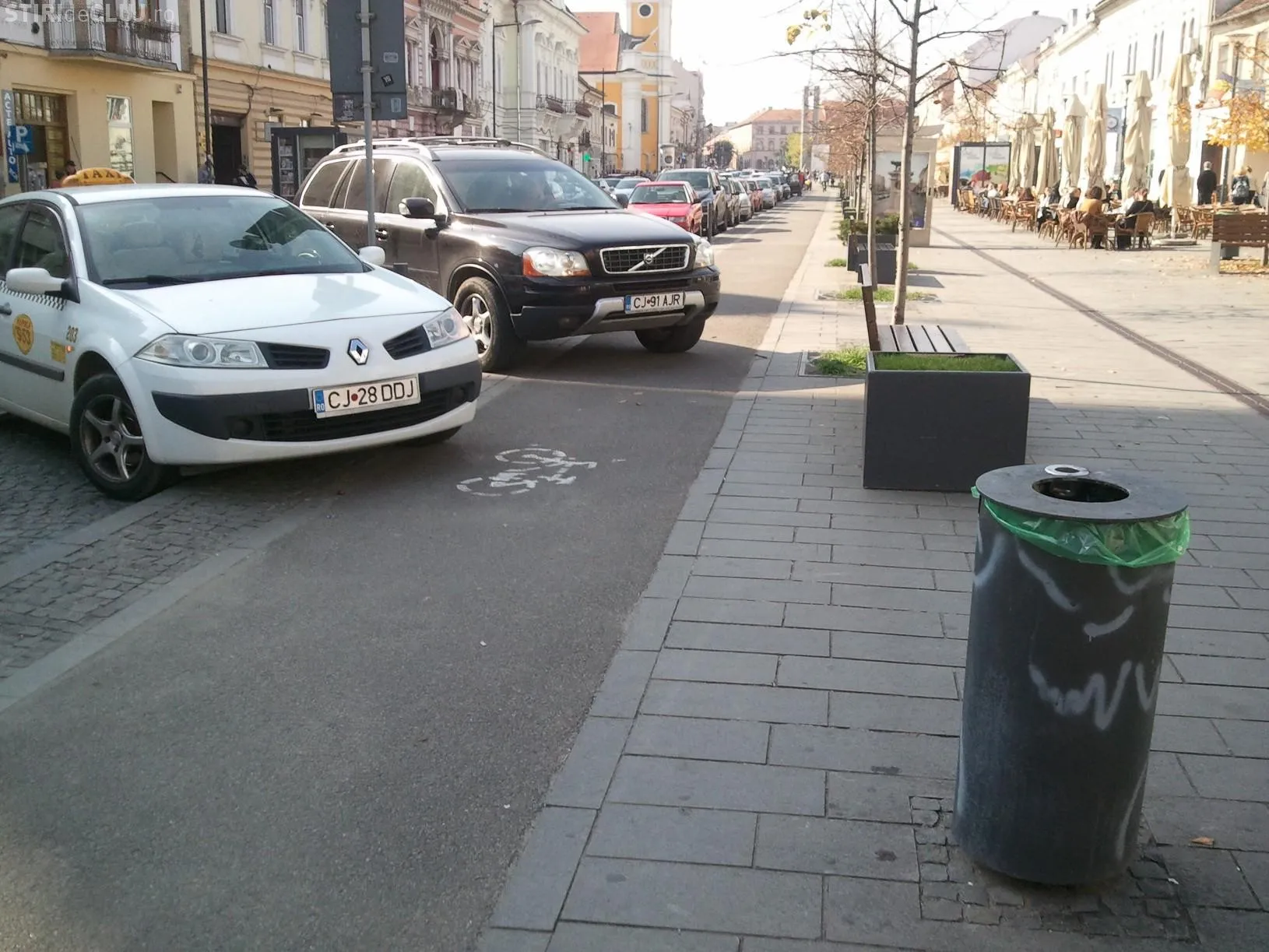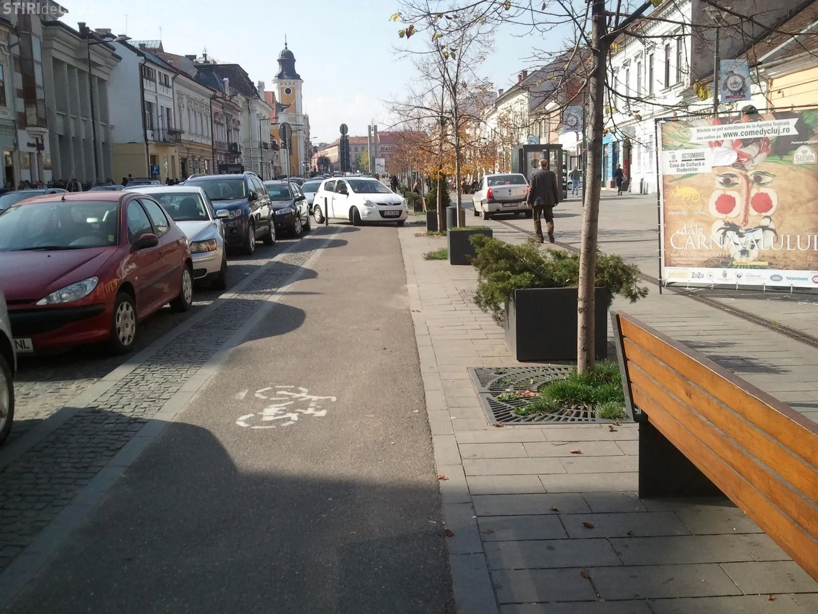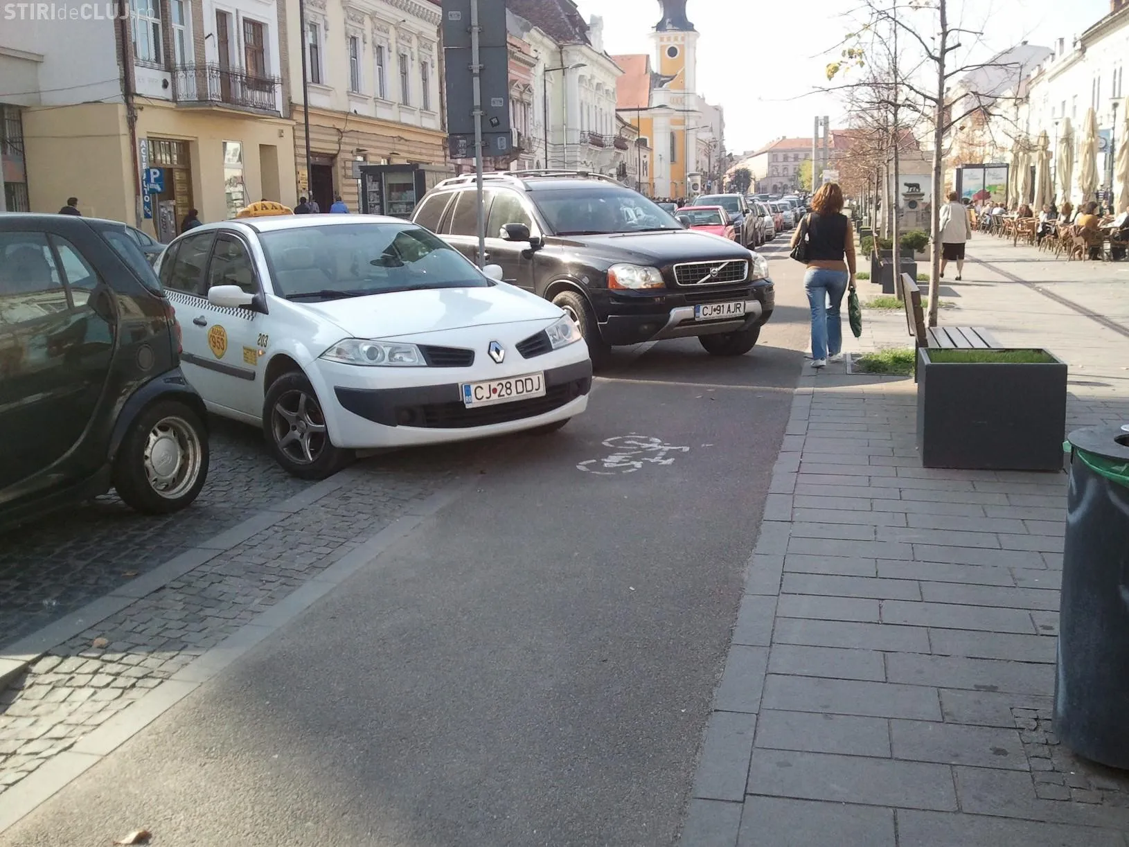 O clujeancă a suprins mai multe mașini parcate cu nesimțire pe pista de bicicliști exact în centrul orașului, pe Bulevardul Eroilor.