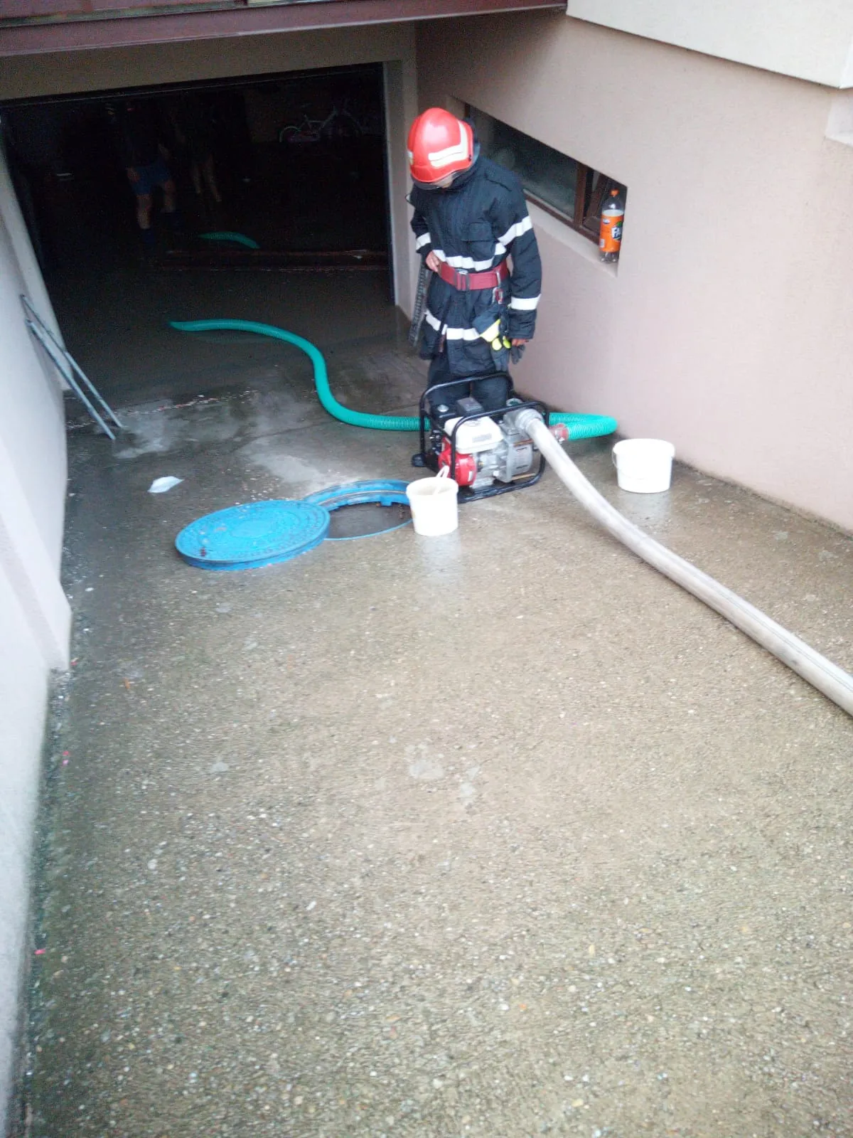Pompierii clujeni intervin la ambele locații pentru a scoate apa din subsol.