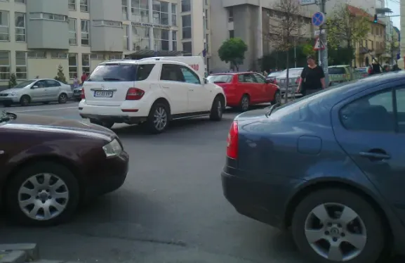Mai exact, chiar dacă pe pe partea dreaptă sunt puși stâlpi pe trotuar, deși atât pe partea dreaptă cât și pe cea stângă sunt indicatoare cu parcarea interzisă, mașinile continuă să parcheze, blocând circulația.