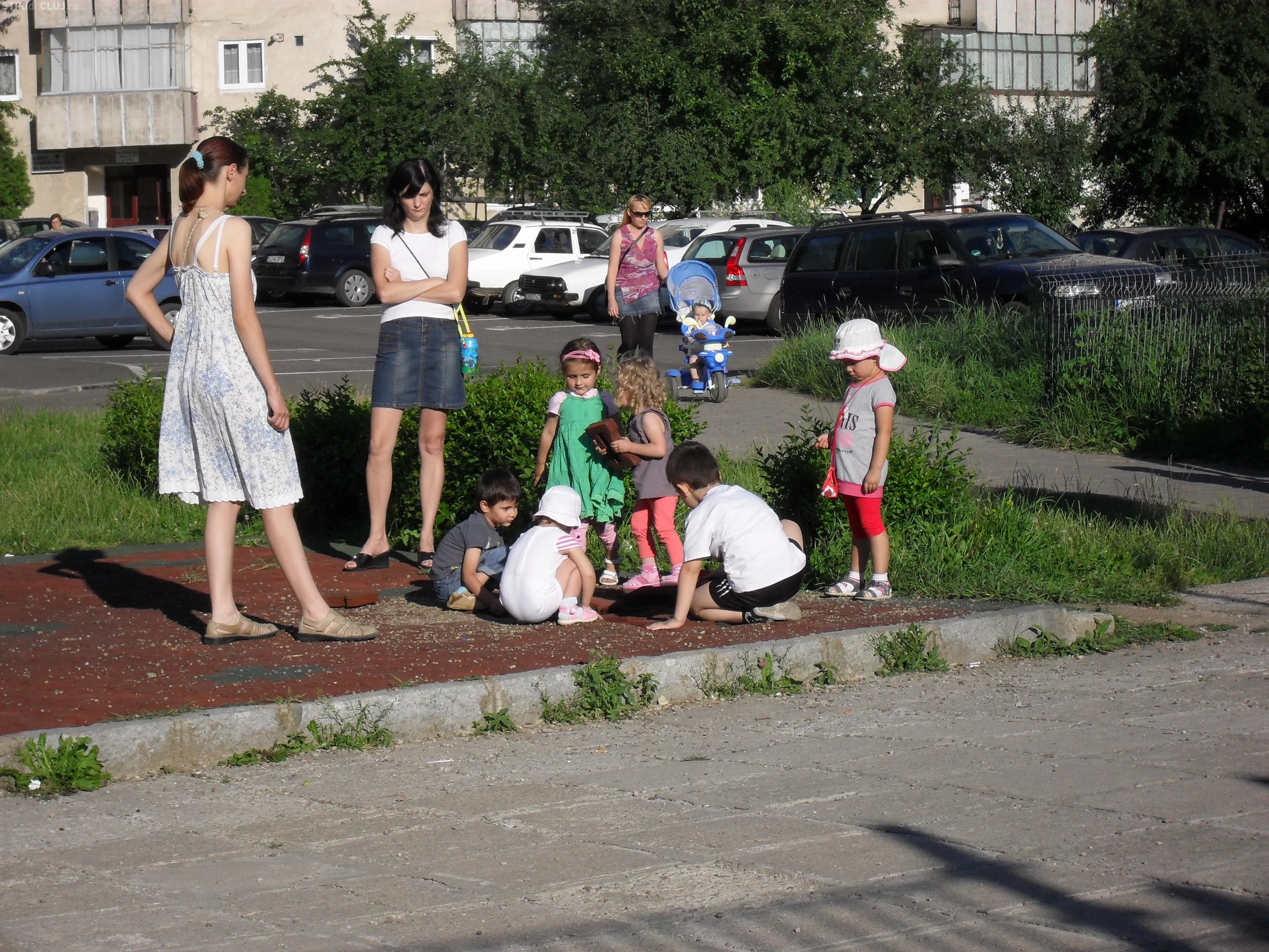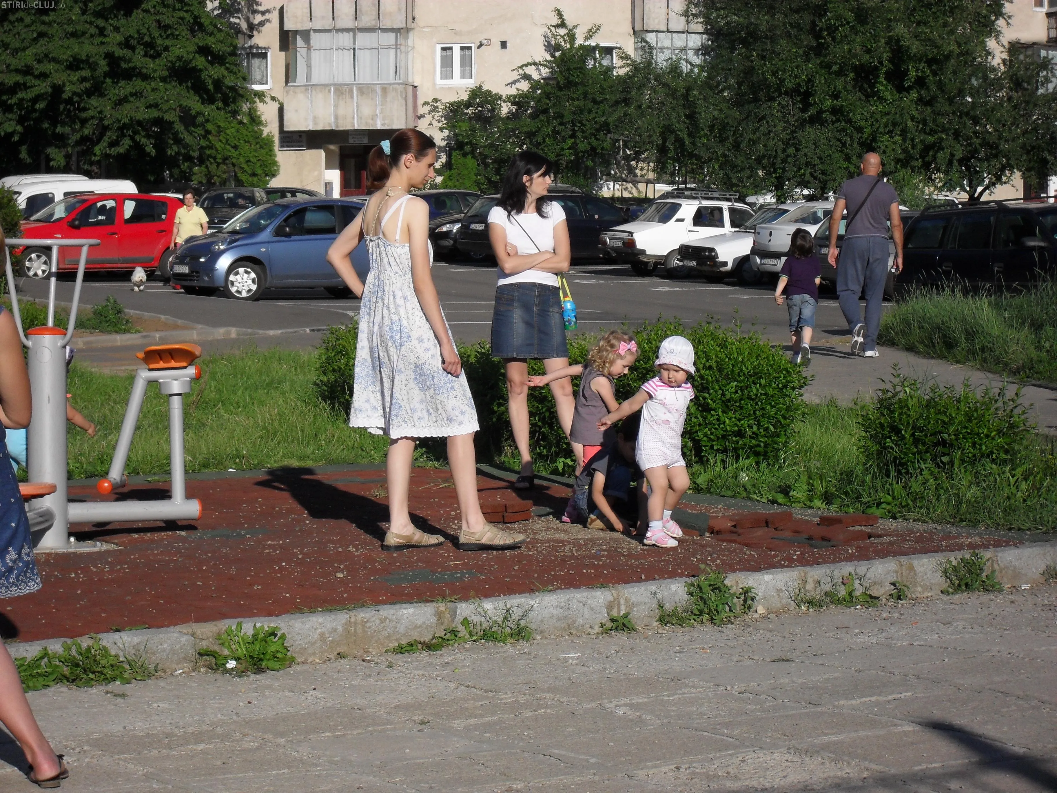 "Ceea ce vedeti, se intampla in parcul de pe Ion Mester, din Manastur, la 20 de metri de Primaria de cartier. Pacat ca s-au investit atatia bani pentru a ne face un parc frumos unde sa ne ducem copiii la joaca. Parintii acelor copii stateau si ii priveau linistiti cum scot pe rand dalele si ii mai si incurajau sa le duca mai incolo sa le aseze in stive. Pacat de educatia proasta pe care le-o dam copiilor inca de mici", ne-a scris un clujean.