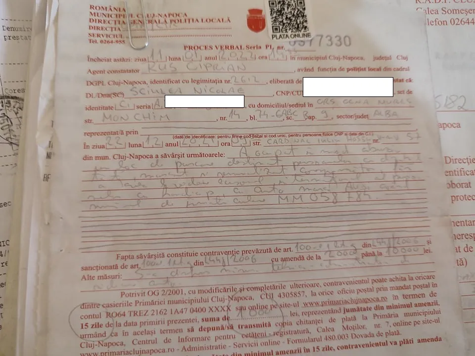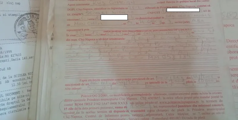 Am plătit până la urmă 500 de lei și după două săptămâni ne-am trezit și cu amendă de 2000 de lei acasă.