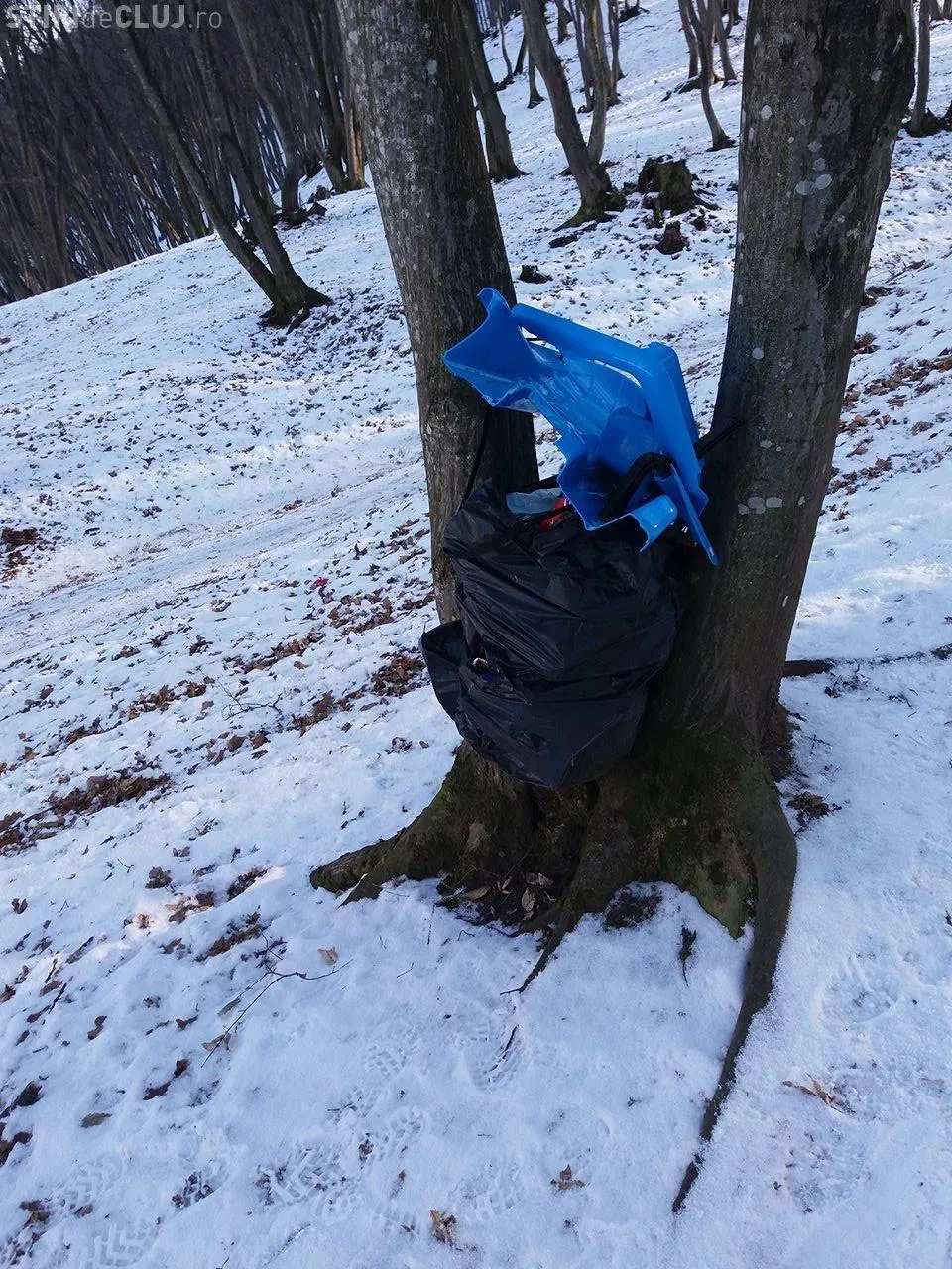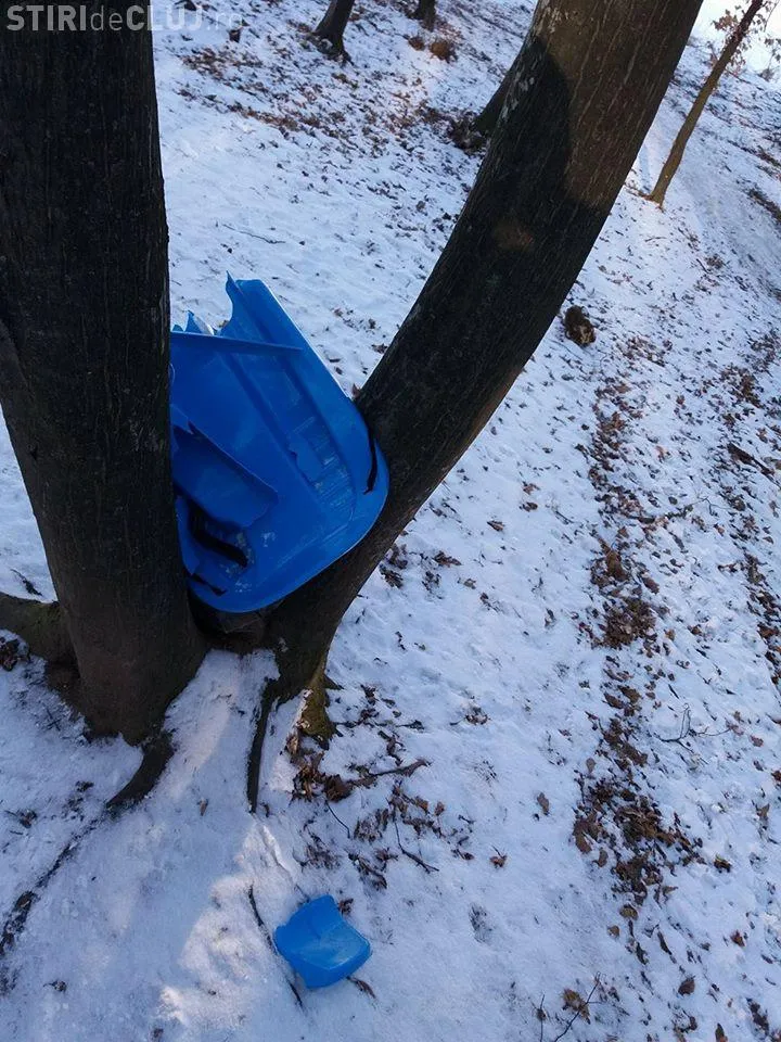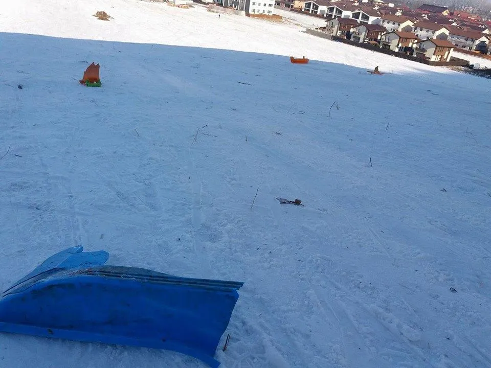 Distracția de duminică, 15 ianuarie, s-a lăsat cu foarte multe sănii distruse și rupte, dar bucățile din plastic au fost abandonate acolo.