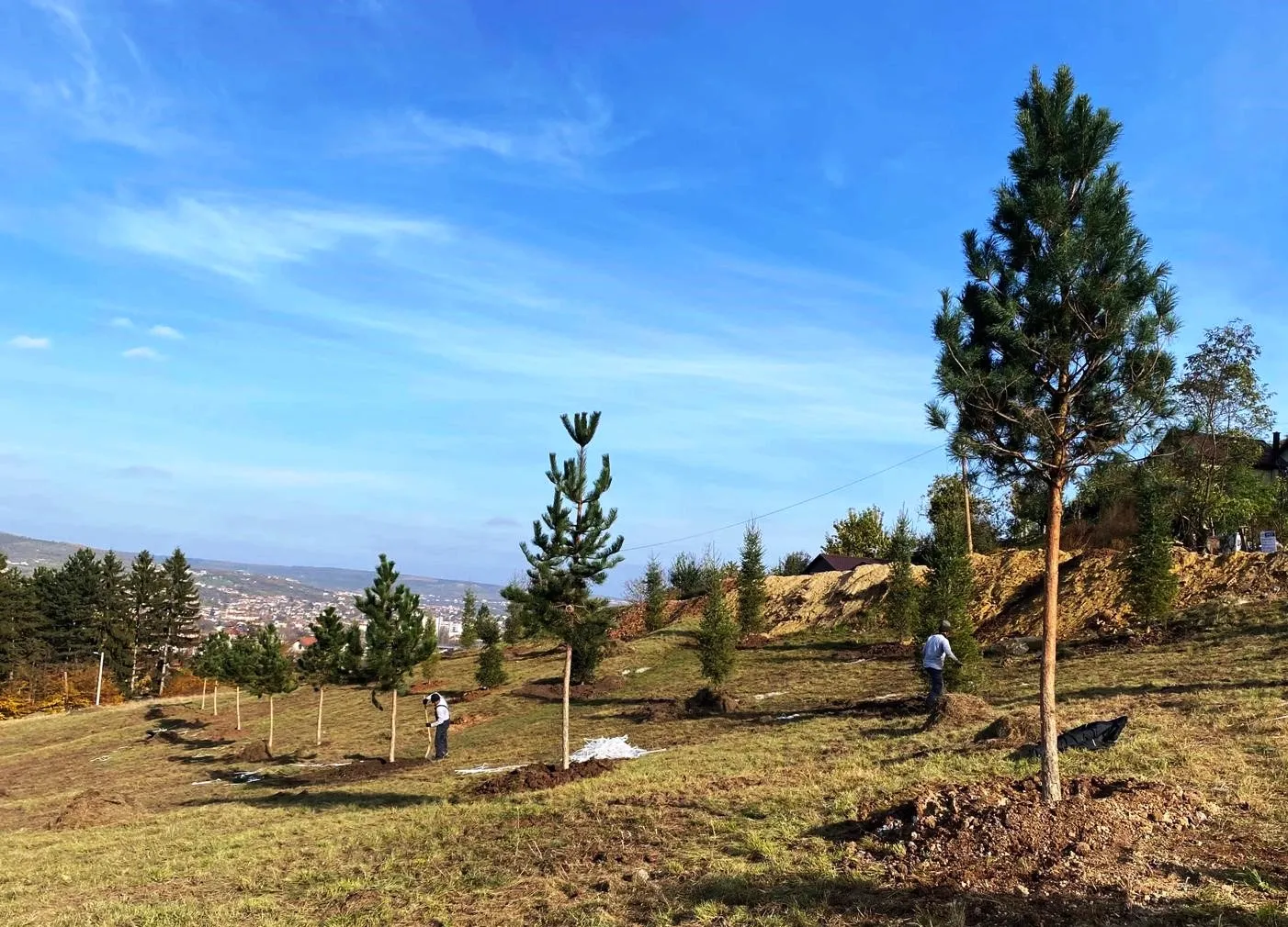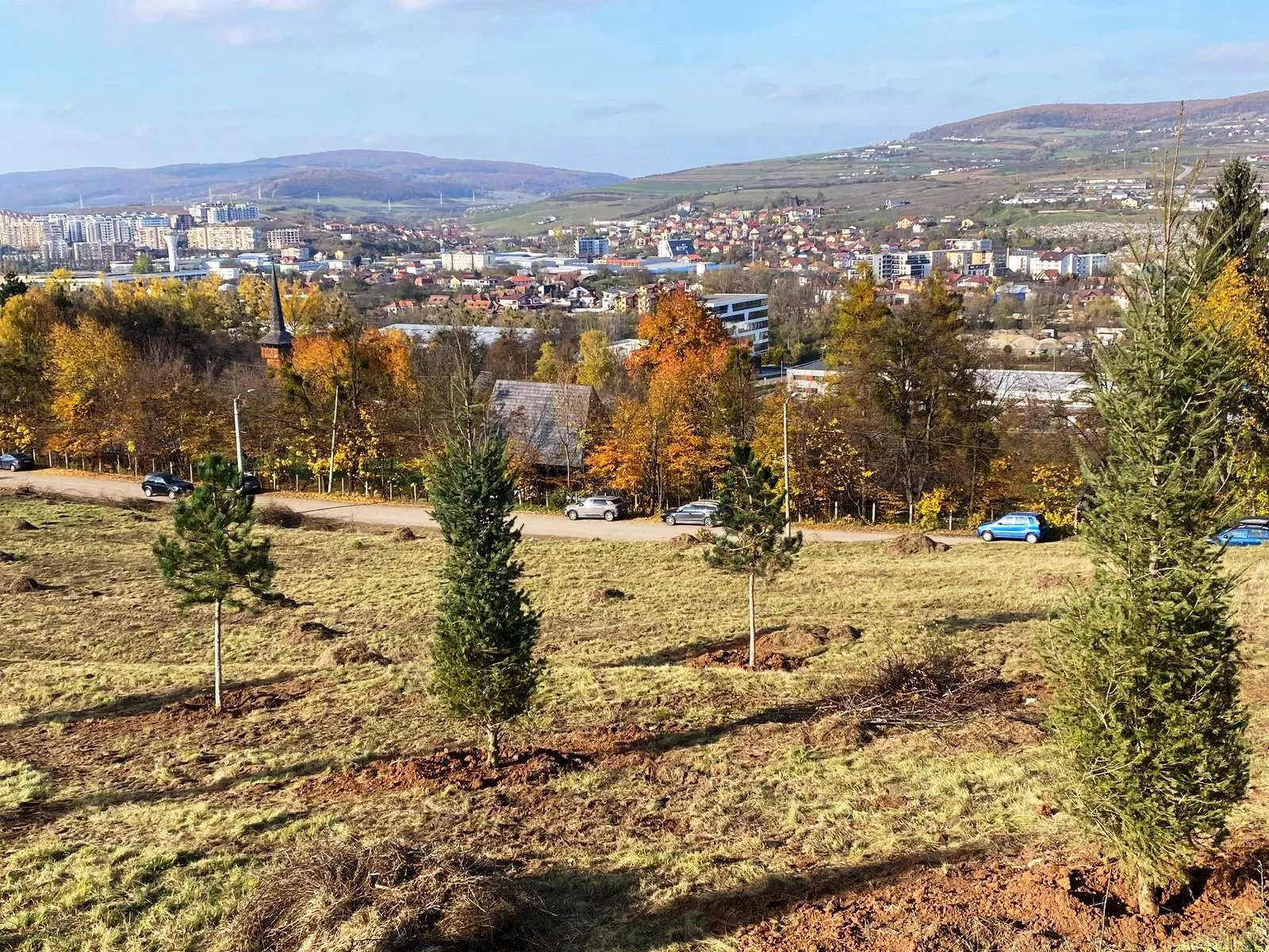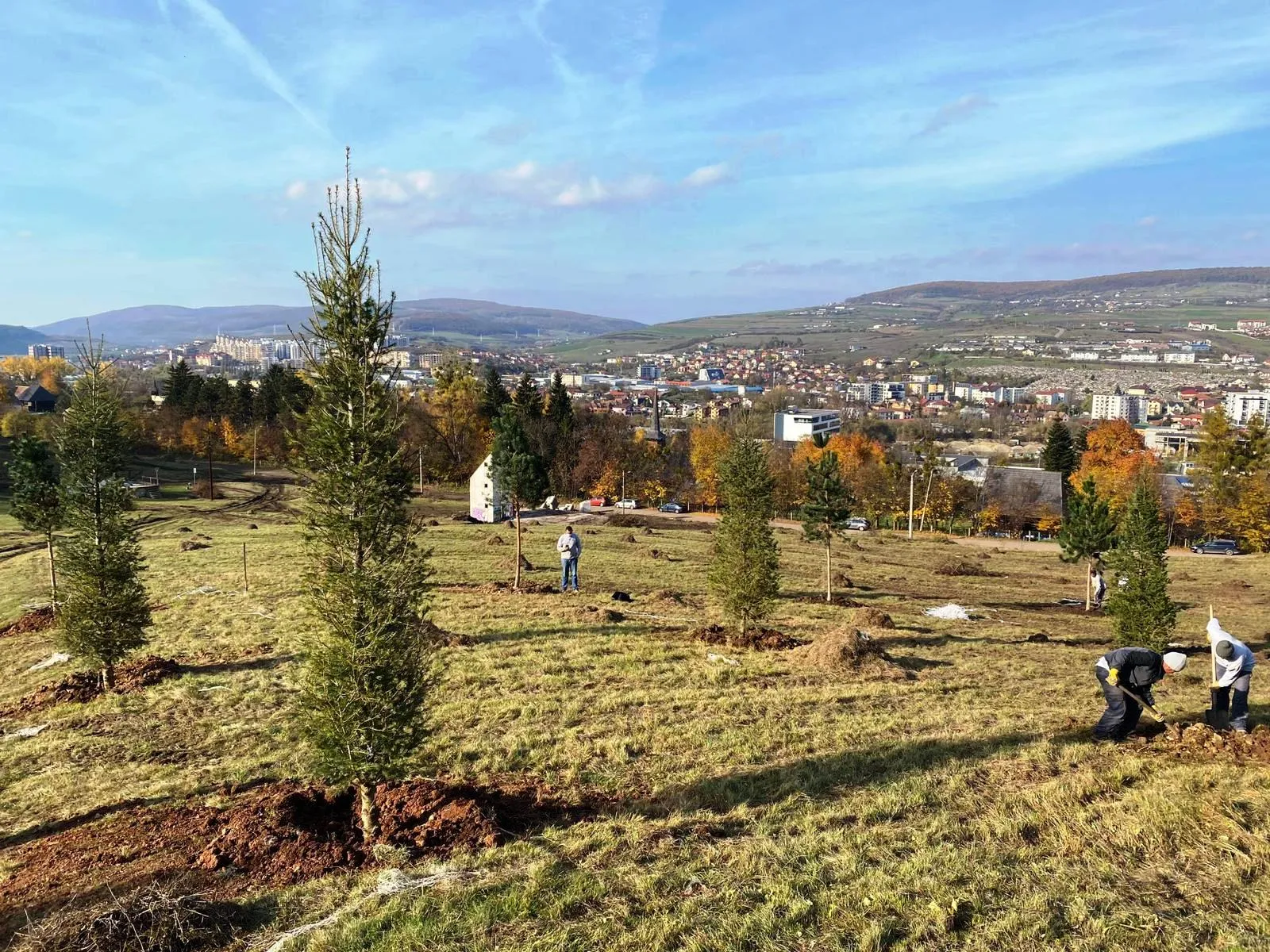Prima etapă din cadrul proiectului de extindere cu 30 de ha a Parcului Etnografic ”Romulus Vuia” din Hoia s-a încheiat în acest sfârșit de săptămână. A fost, astfel, amenajată peisagistic pajiștea de est, prin plantarea primilor 58 de copaci din speciile carpen, brad și pin.