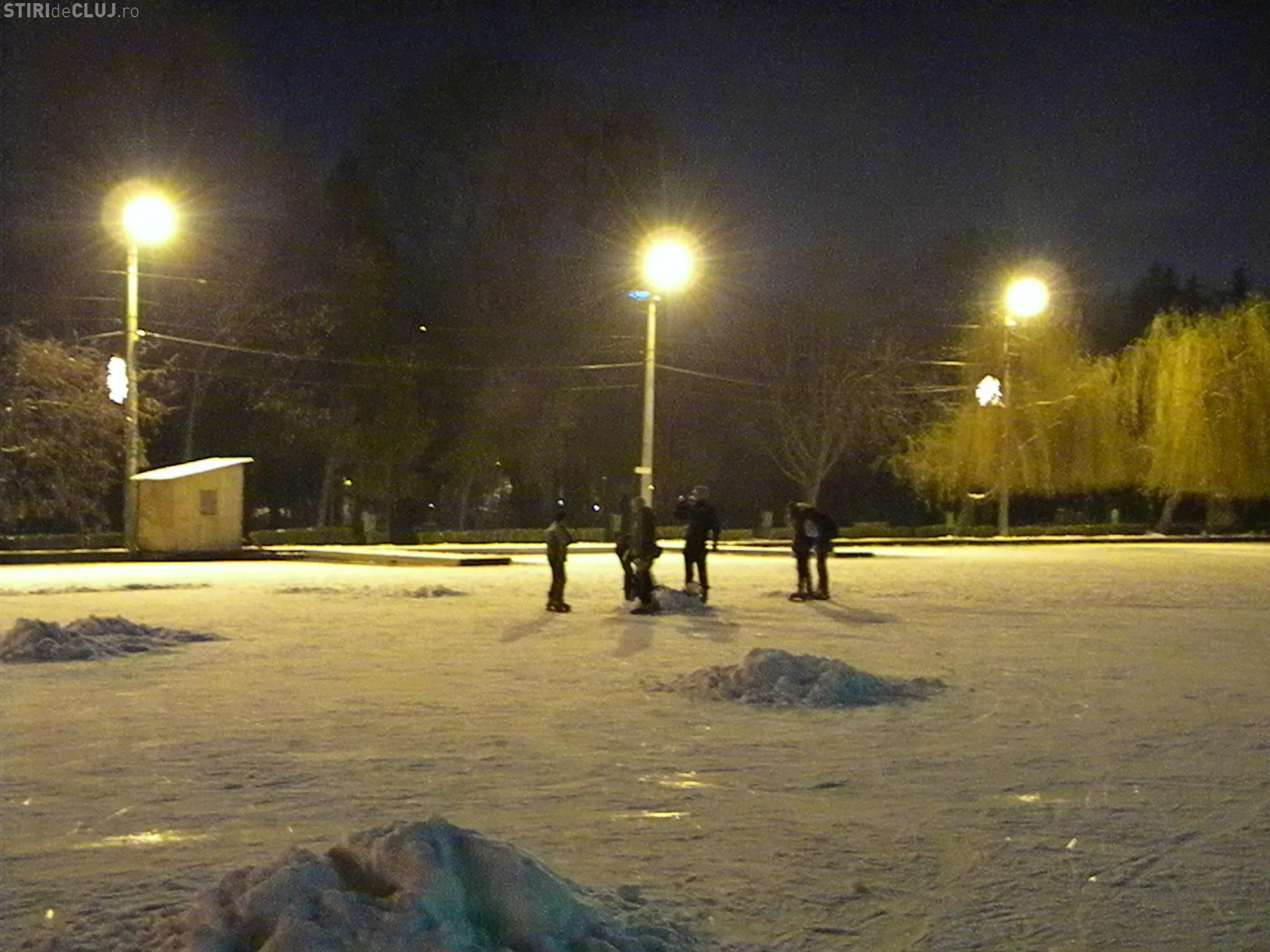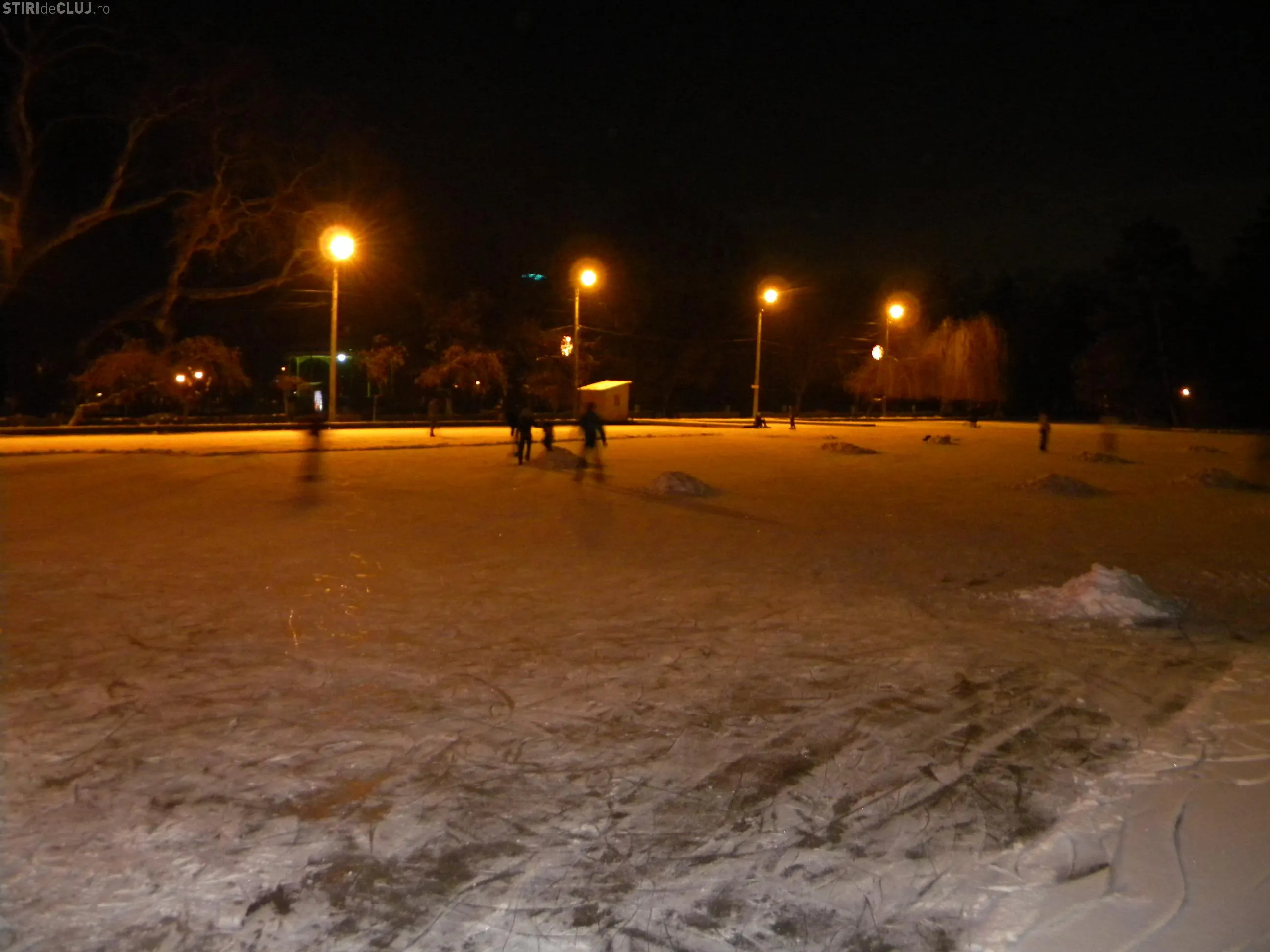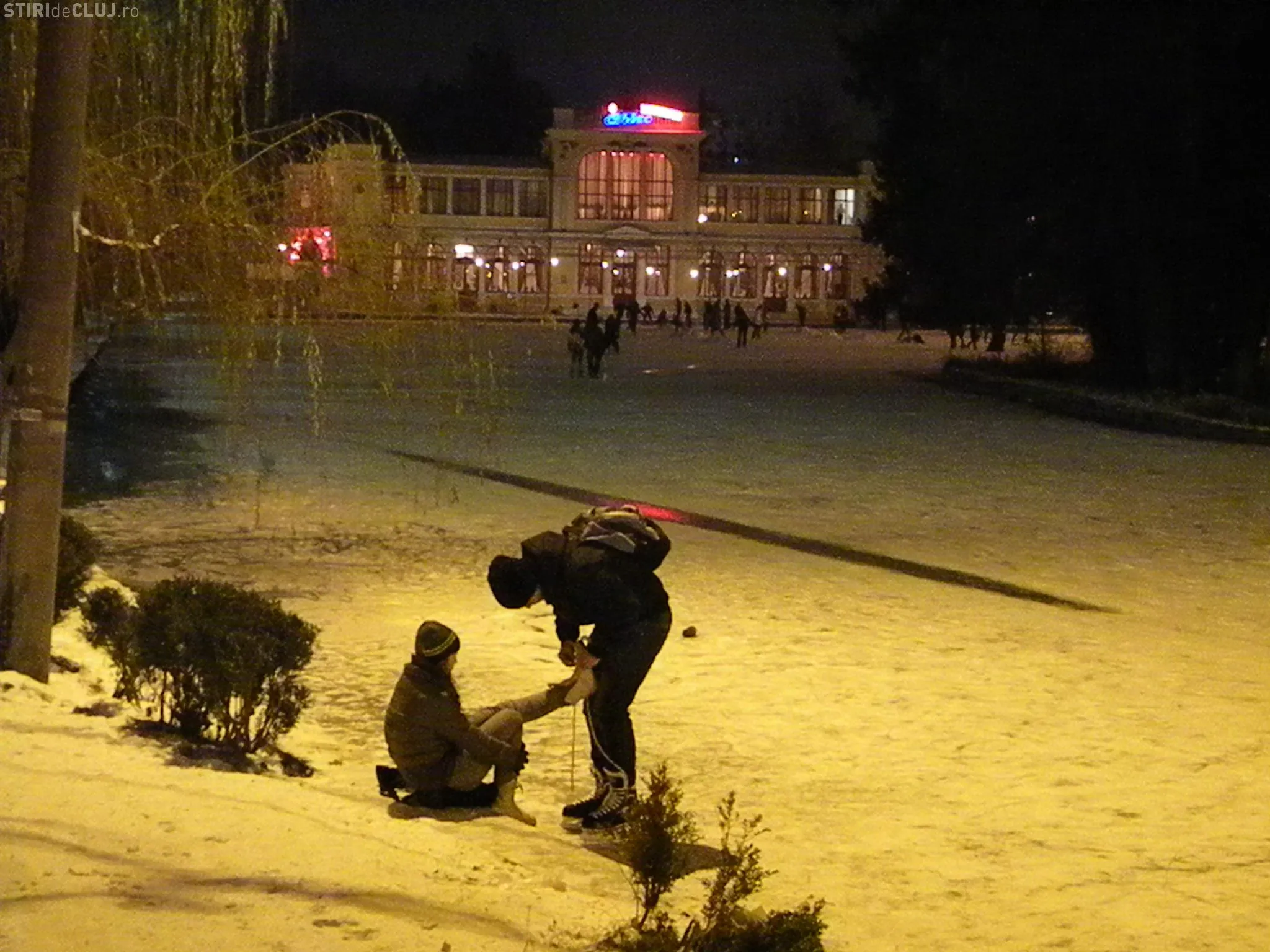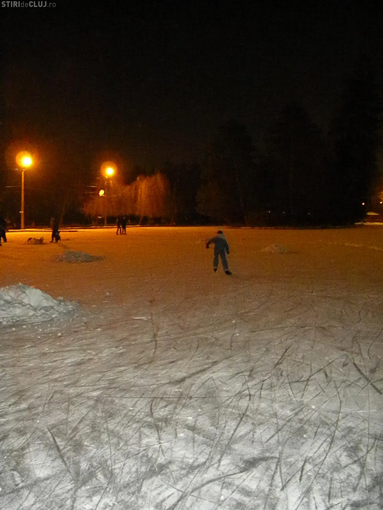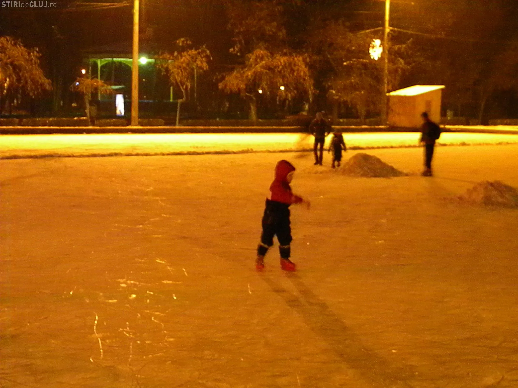 "Deschiderea" patinoarului natural din Parcul Central s-a facut in urma cu circa o saptamana, cand vremea s-a racit brusc si apa a inghetat.