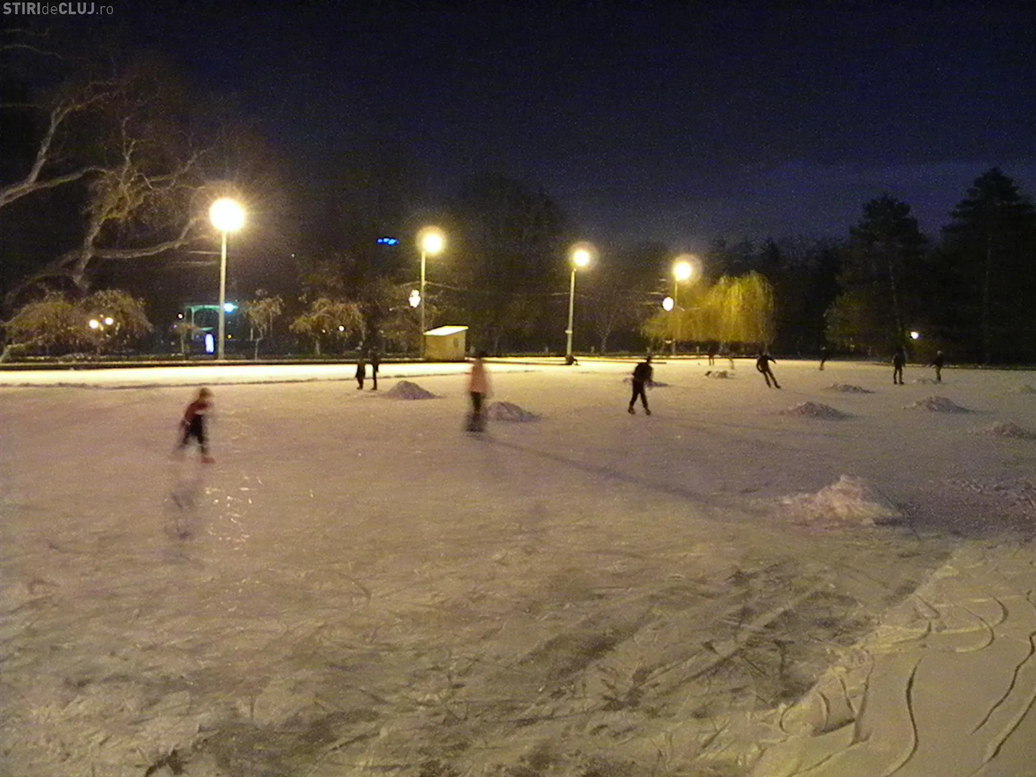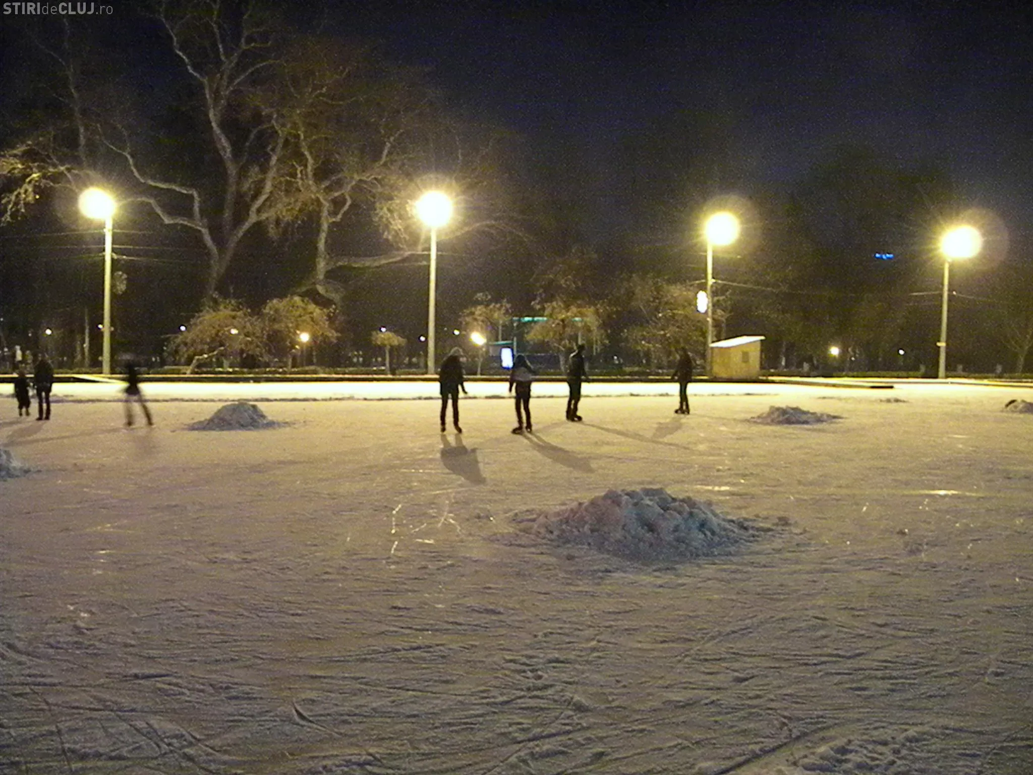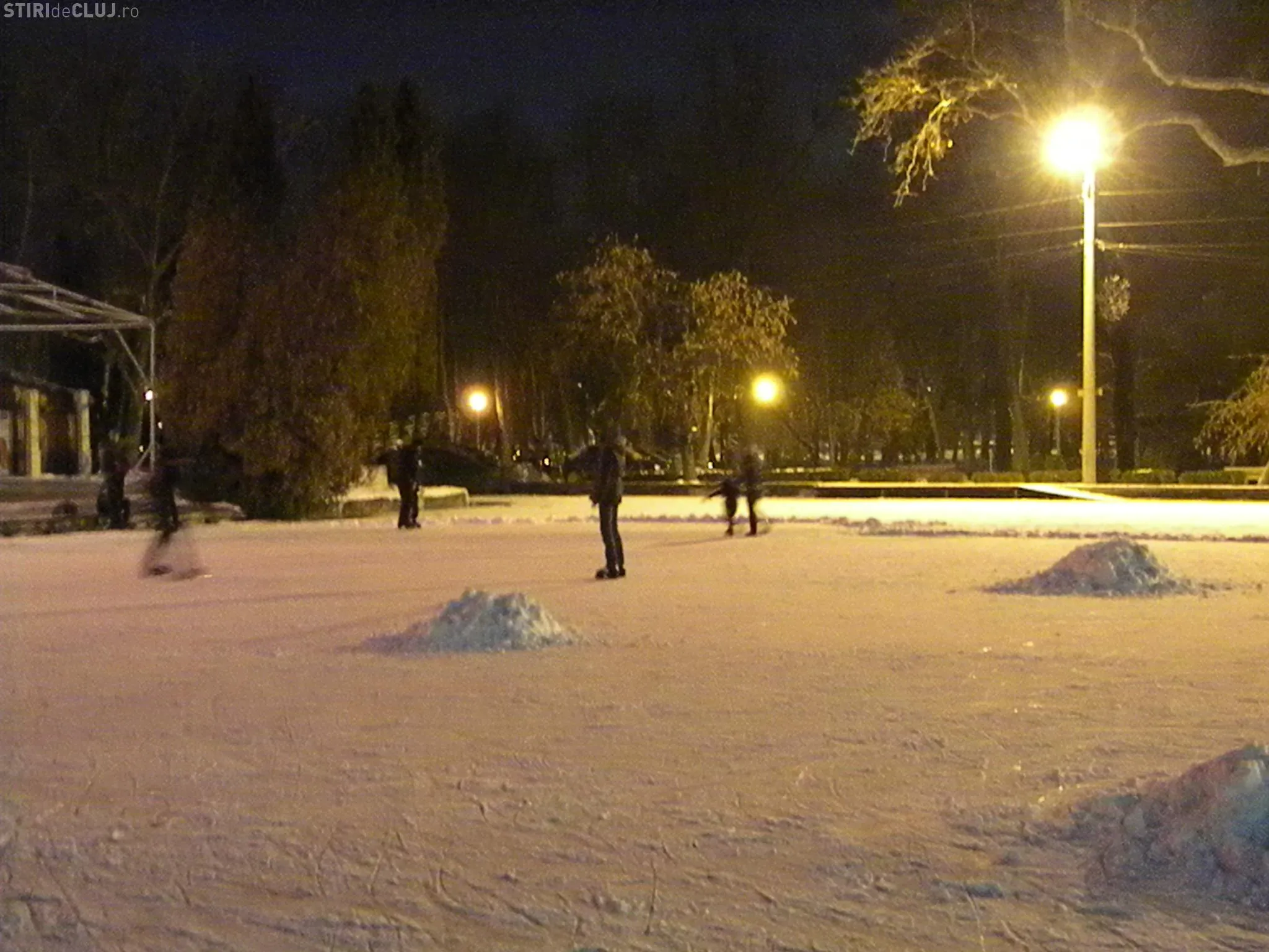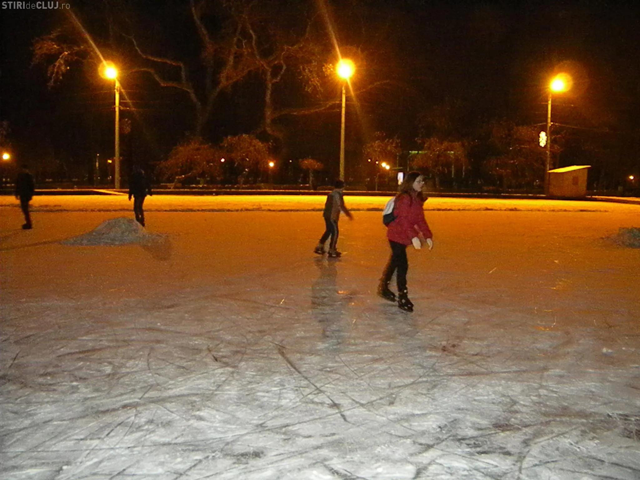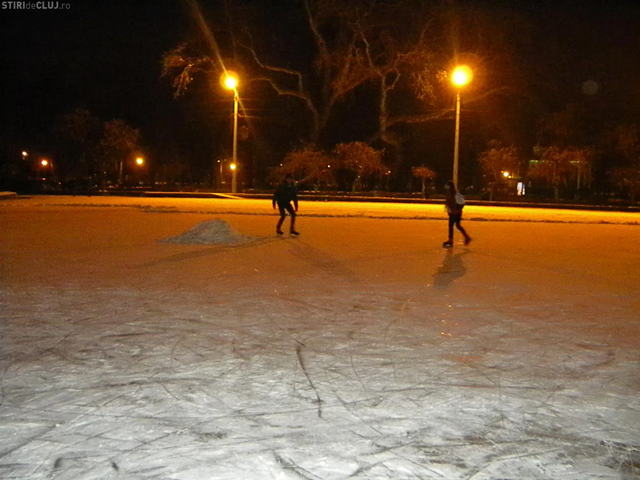 "Deschiderea" patinoarului natural din Parcul Central s-a facut in urma cu circa o saptamana, cand vremea s-a racit brusc si apa a inghetat.