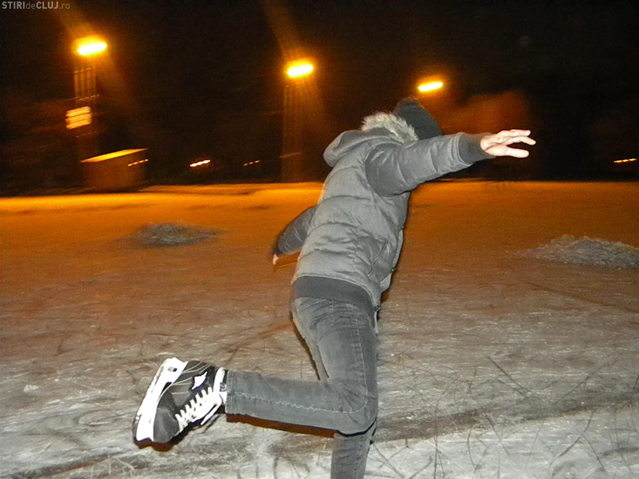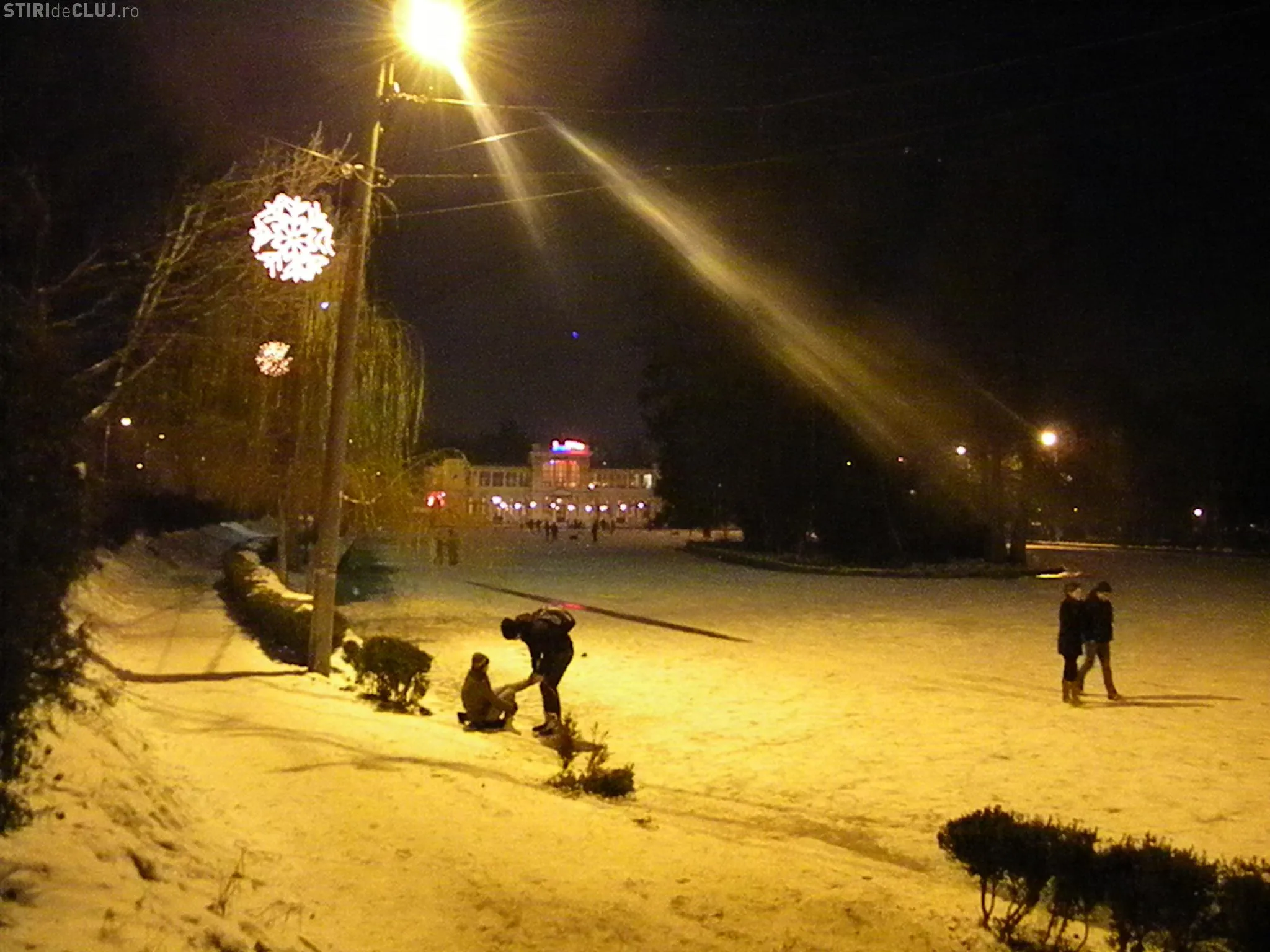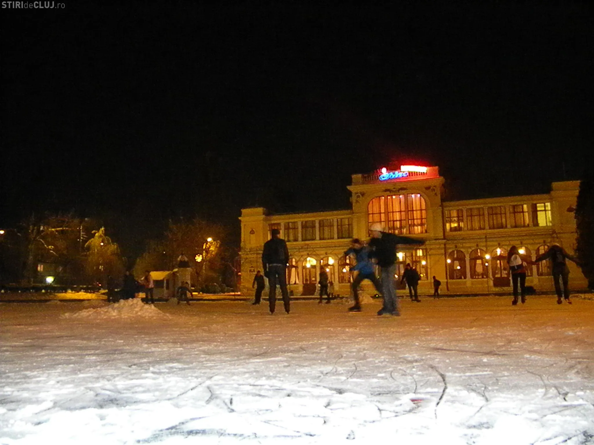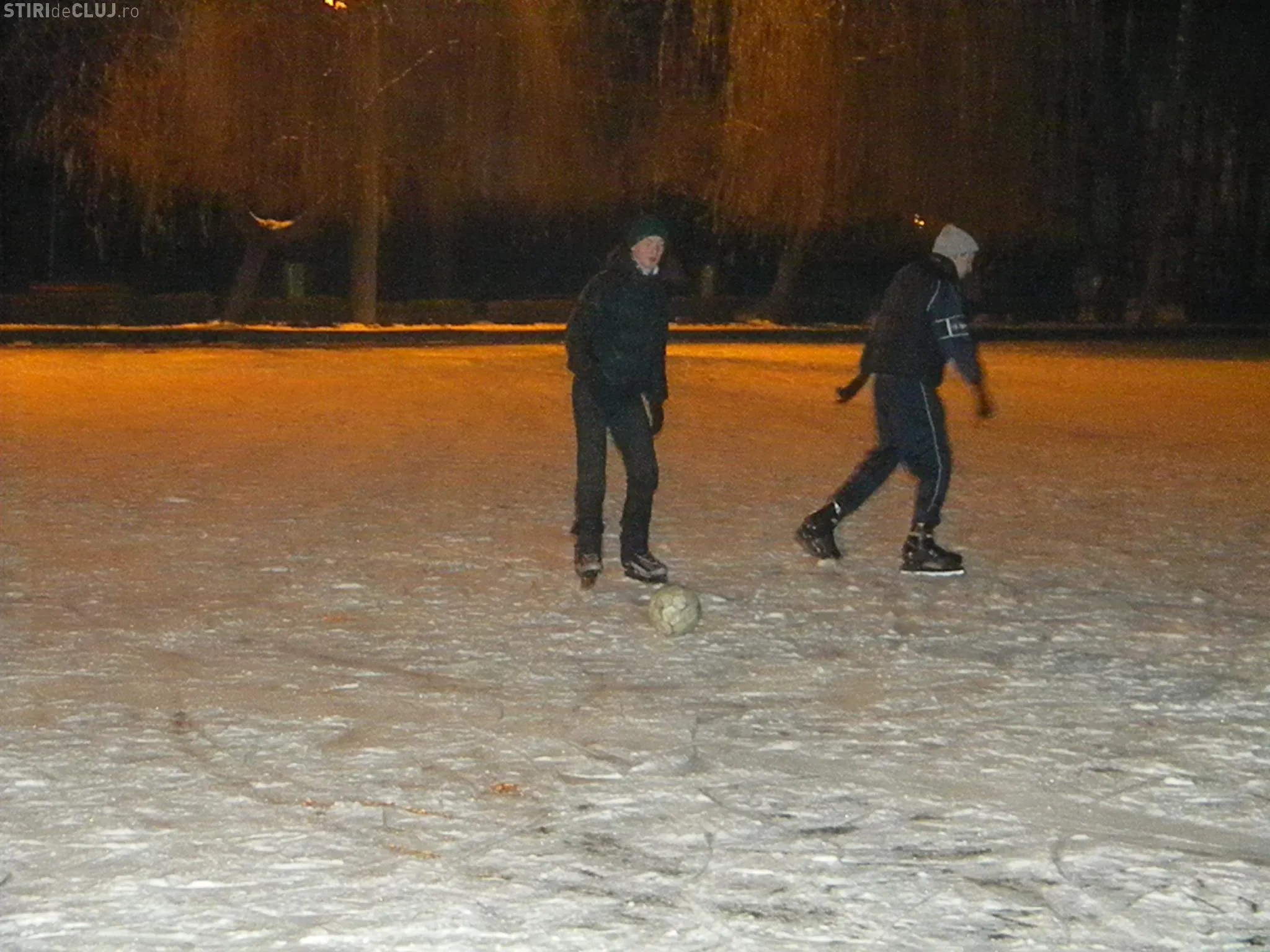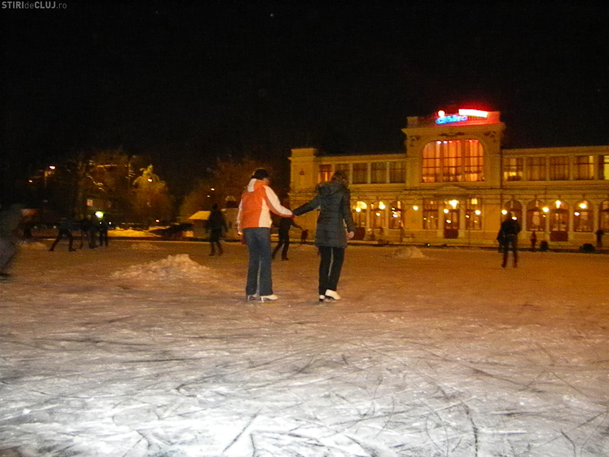 "Deschiderea" patinoarului natural din Parcul Central s-a facut in urma cu circa o saptamana, cand vremea s-a racit brusc si apa a inghetat.