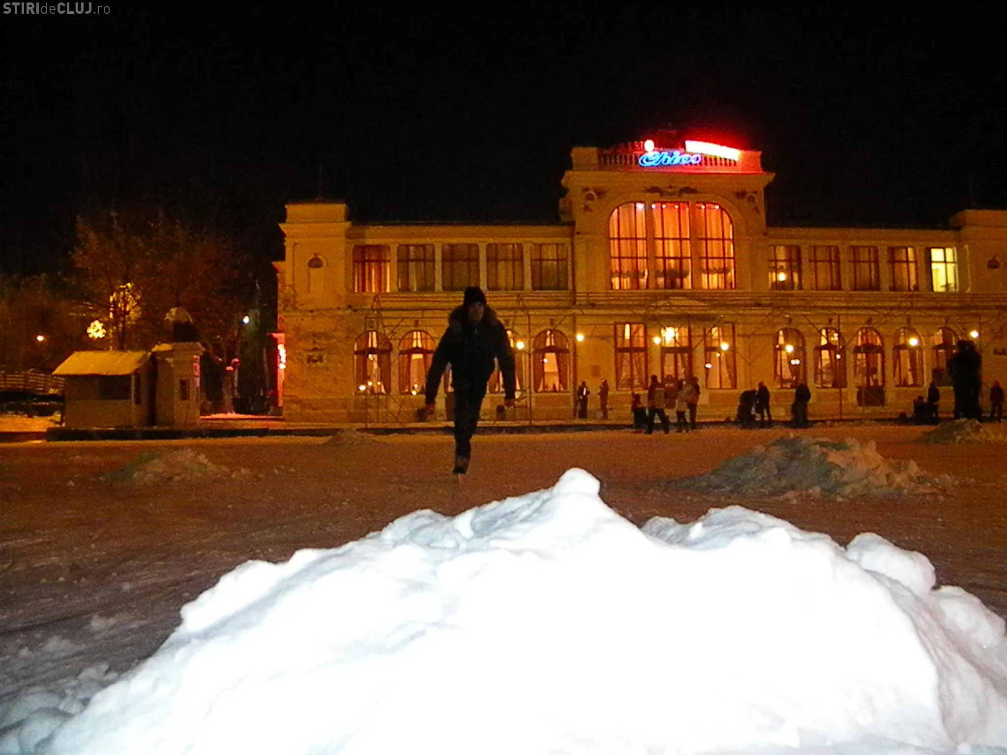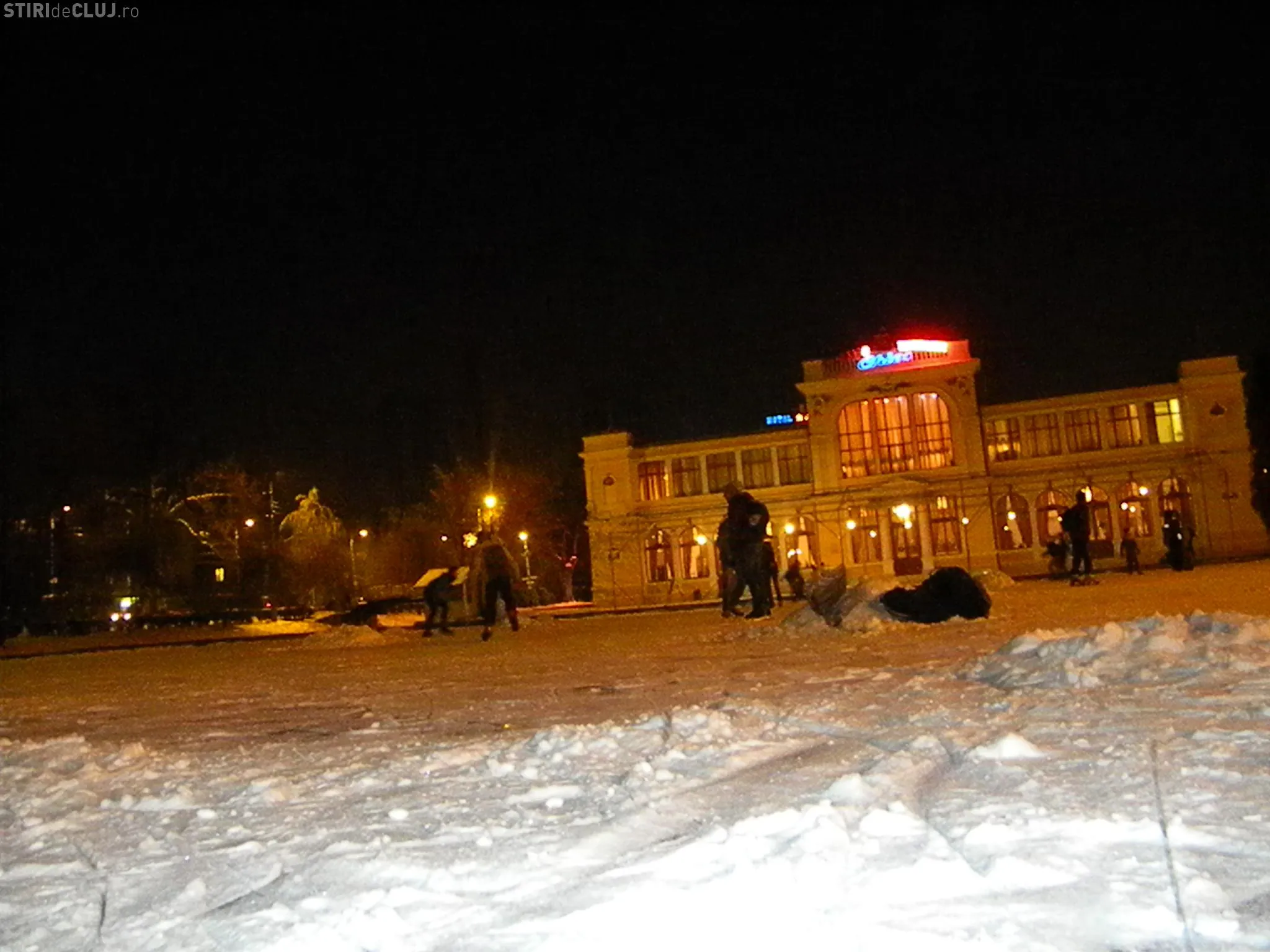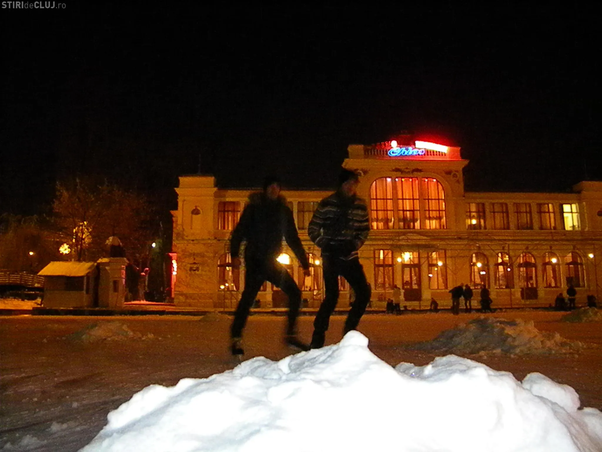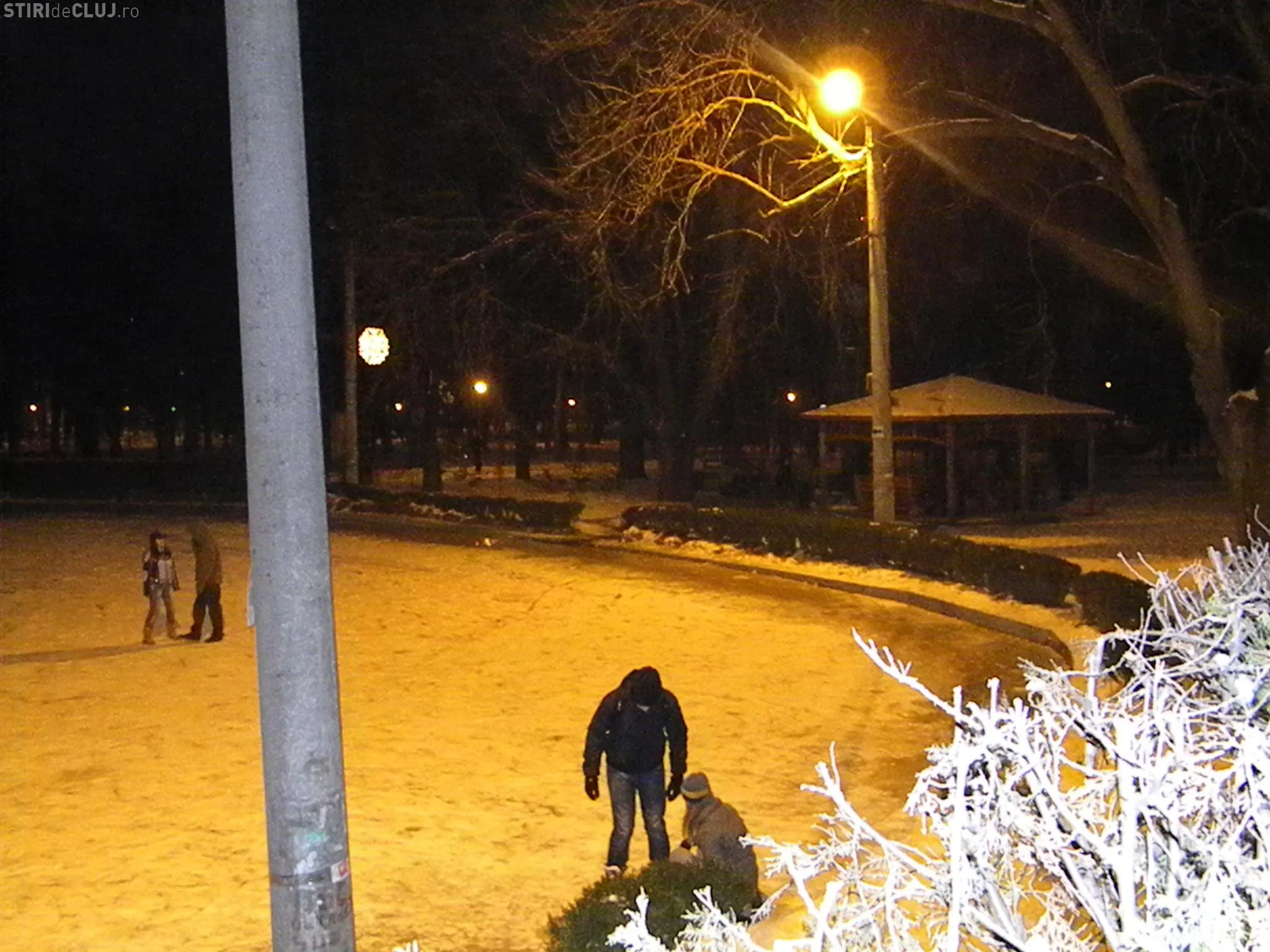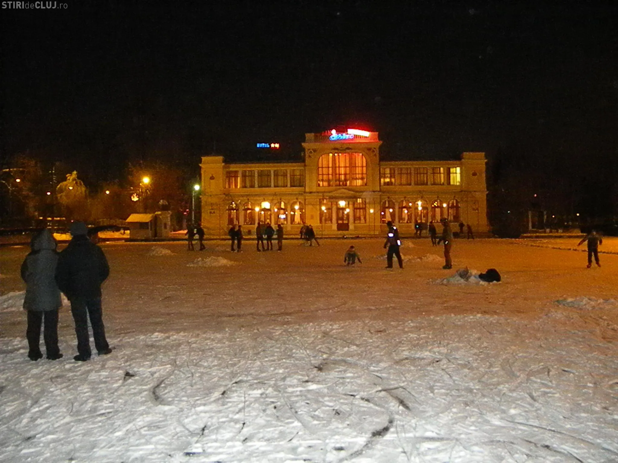"Deschiderea" patinoarului natural din Parcul Central s-a facut in urma cu circa o saptamana, cand vremea s-a racit brusc si apa a inghetat.