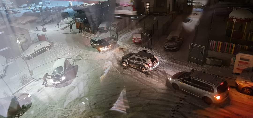 Patinoar pe strada Galaxiei, in Baciu. Șoferii se plang - VIDEO