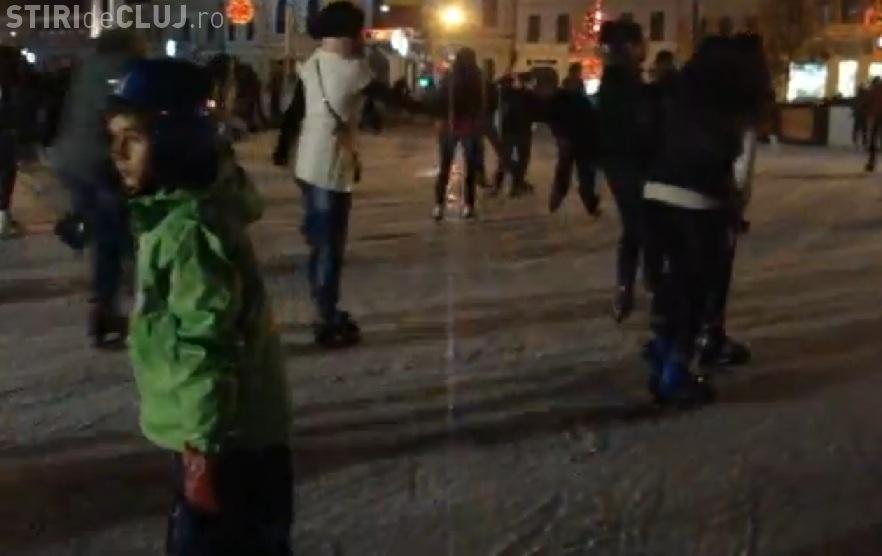 Clujenii au luat cu asalt patinoarul mobil din Piata Unirii, considerat a fi cel mai mare din tara.