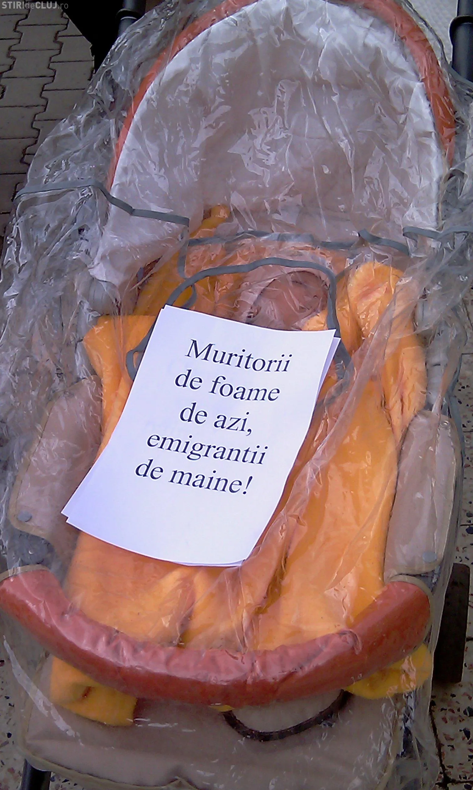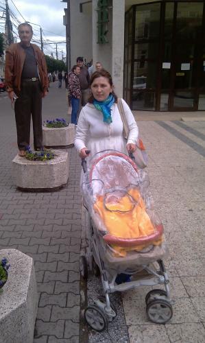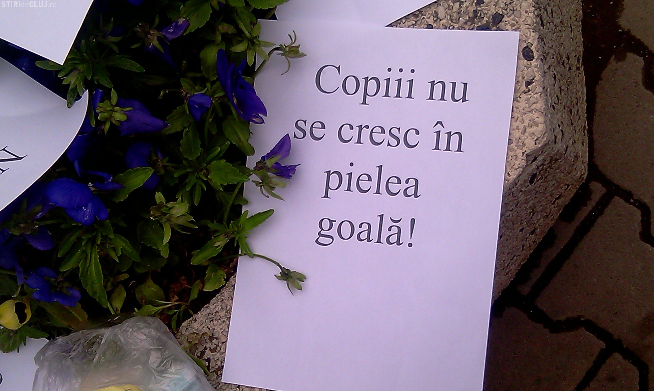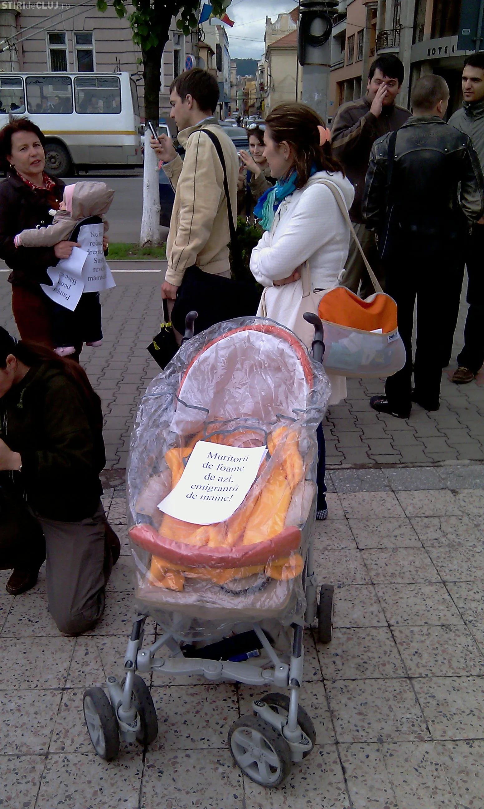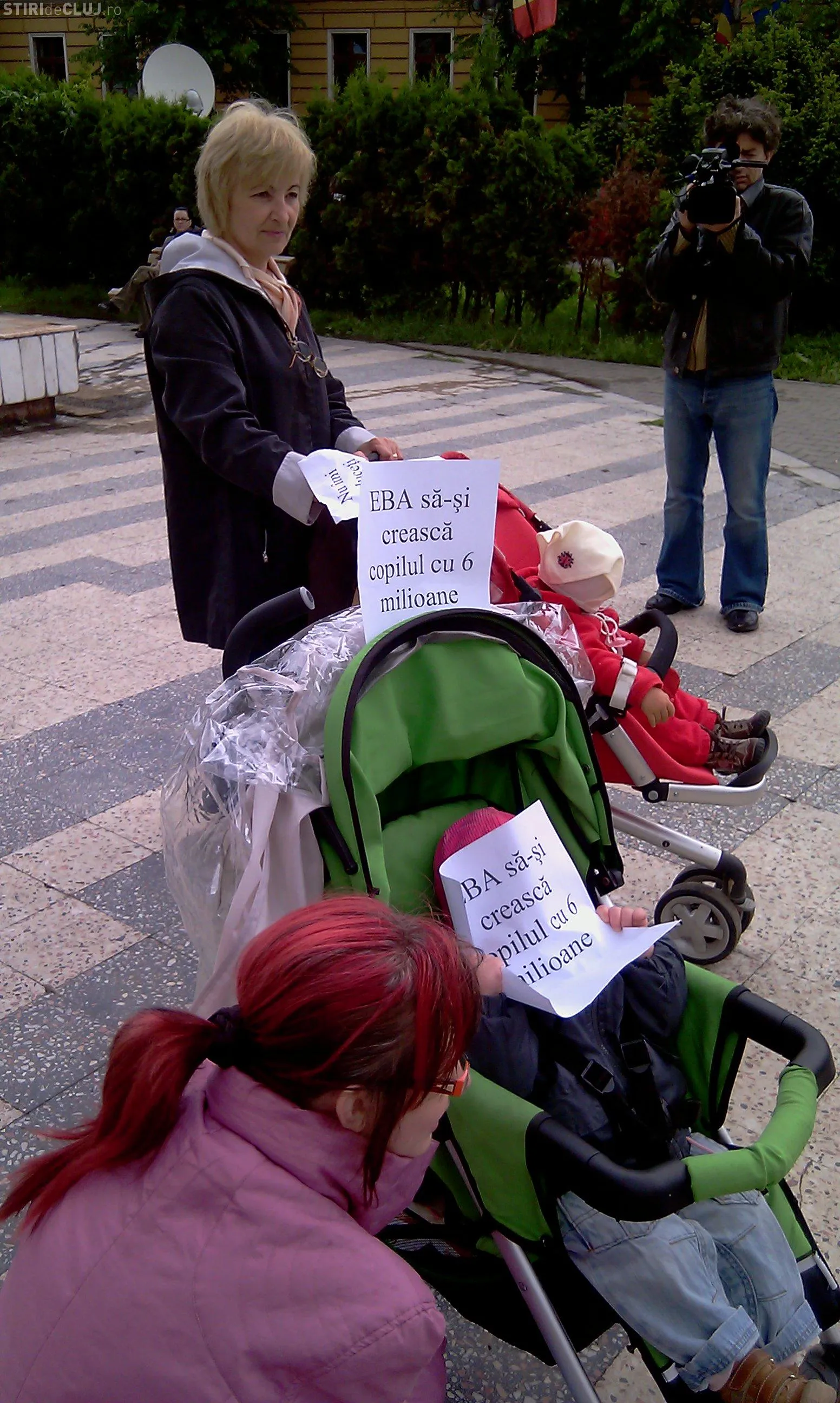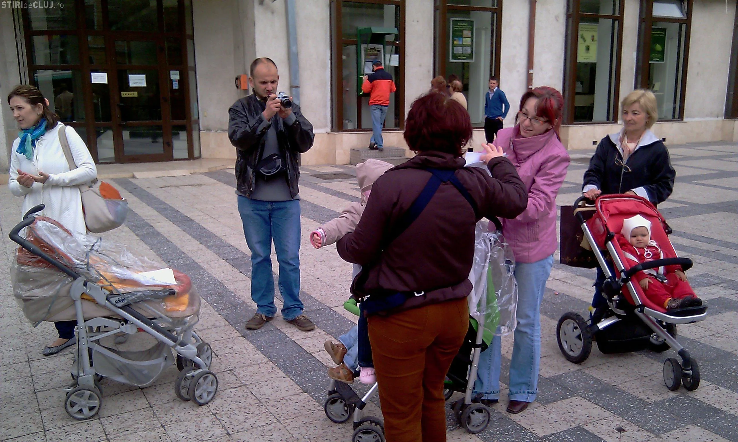 Doar patru mamici au protestat astazi in fata Prefecturii Cluj! Ele i-au inmanat subprefectului doi pampersi folositi - VIDEO si Galerie FOTO