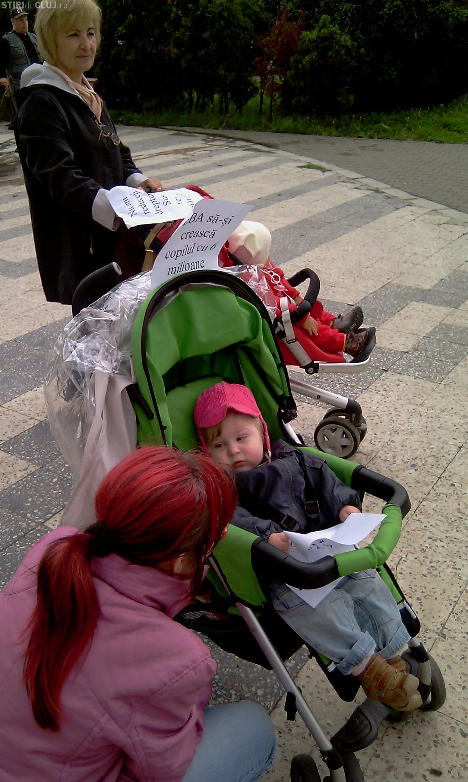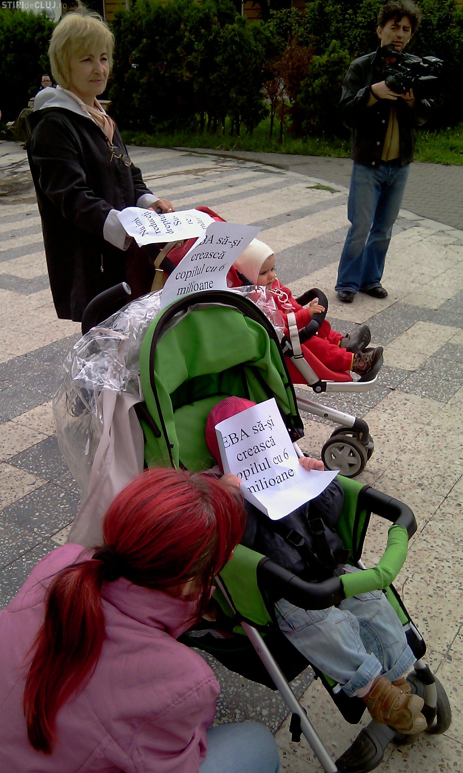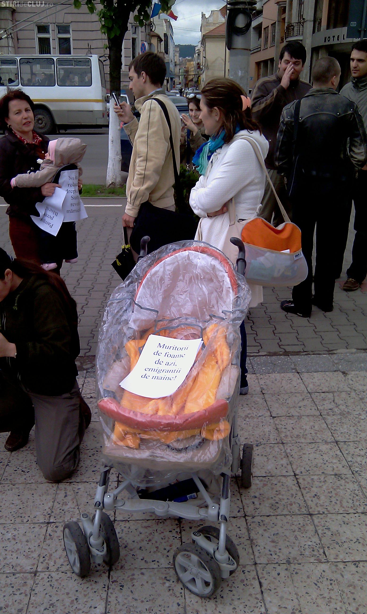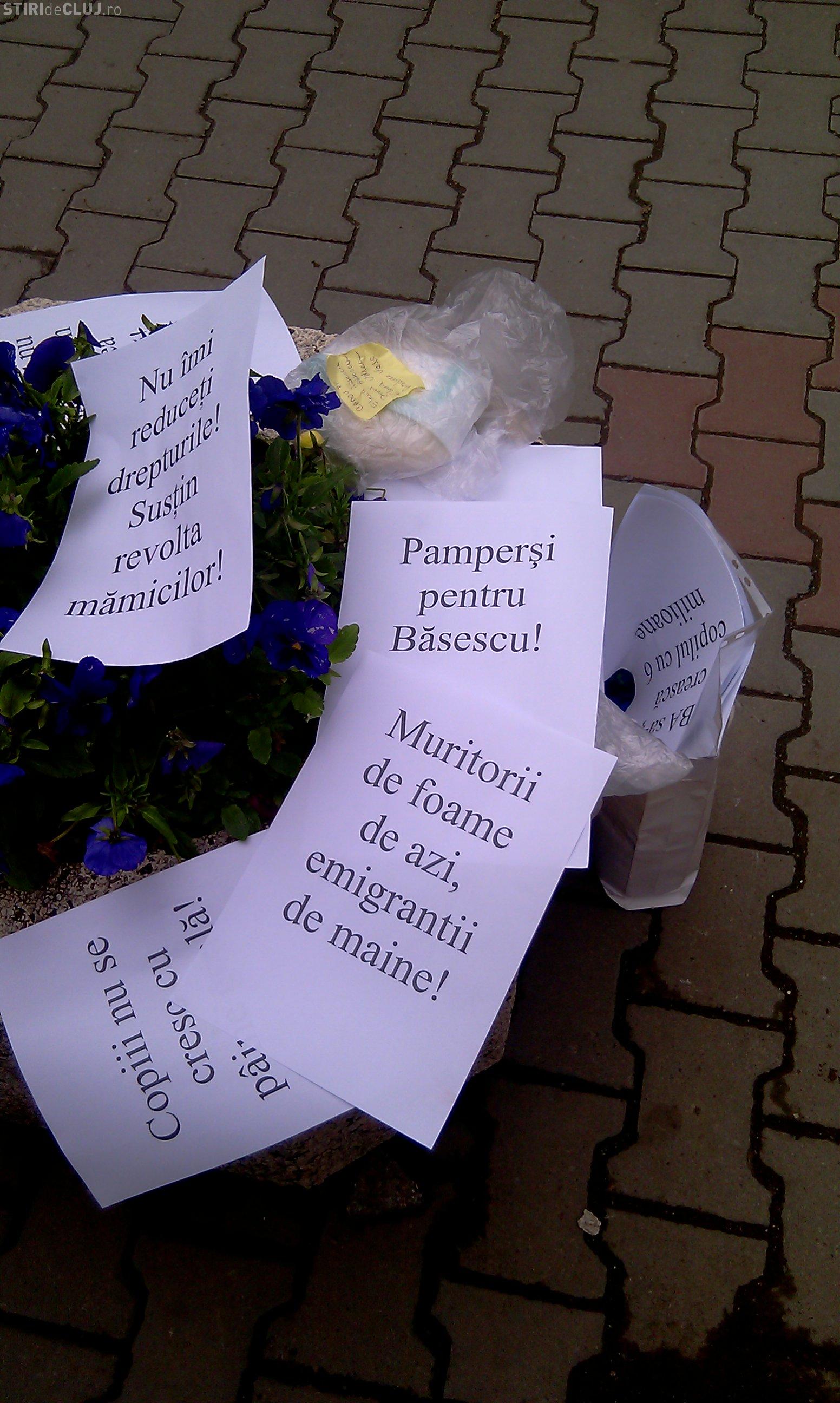 La Cluj, doar patru dintre ele au venit sa protesteze. "Inarmate" cu doi pampersi folositi pe care au vrut sa ii inamaneze prefectului, cele patru mamici au vrut sa transmita pana la Guvern nemultumirea lor.