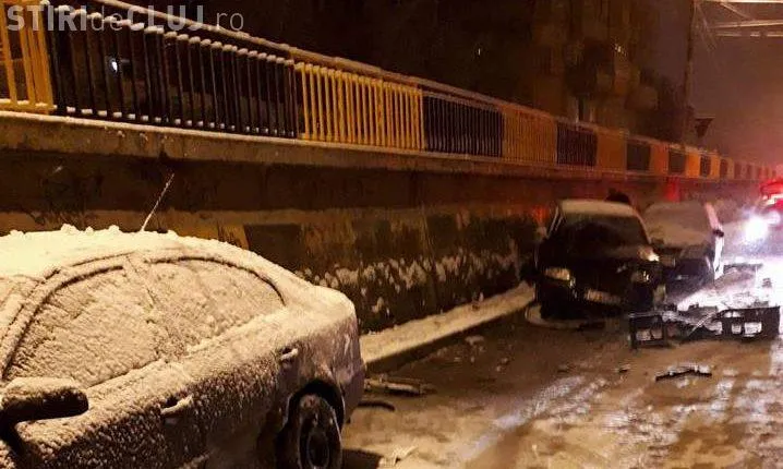 Patru mașini distruse la Cluj, după ce un BMW a derapat pe drum FOTO
