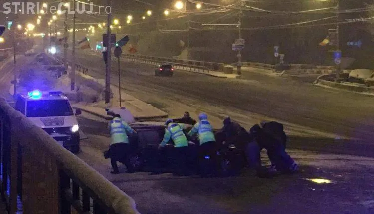 Conform primelor informații, un conducător auto nu ar fi adaptat viteza la condițiile de drum, iar la ieșirea de sub podul din cartierul Mărăști în strada Aurel Vlaicu a pierdut controlul direcției de deplasare, derapând pe carosabilul acoperit cu zăpadă.