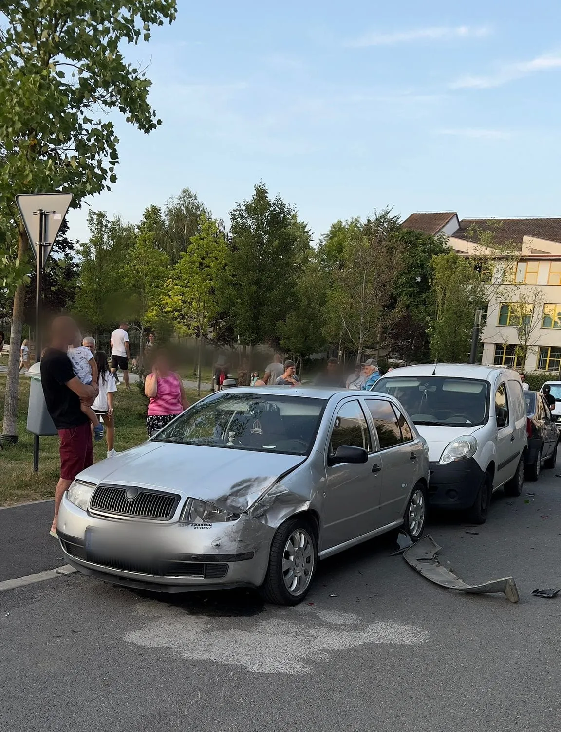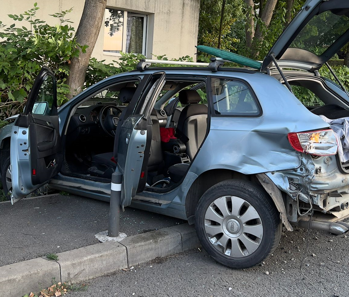 Patru mașini s-au făcut praf pe strada Oltului. Cauza: viteza și prea puțină gândire - FOTO