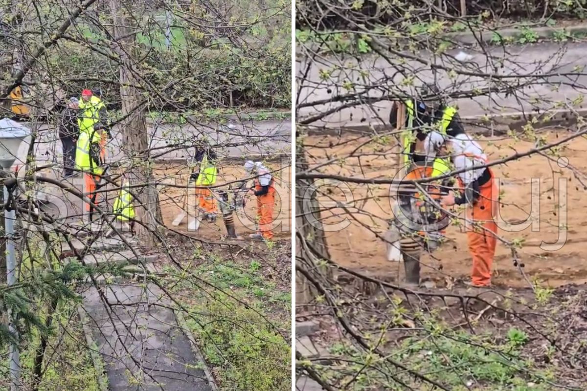 La Cluj, unul muncește și șapte stau! Aceasta este concluzia tristă trasă de un cititor Știri de Cluj, care a avut ocazia să „admire” timp de trei ore modul în care lucrează muncitorii responsabili de amenajarea unor ghene de gunoi subterane pe strada Constantin Brâncuși din Cluj-Napoca.