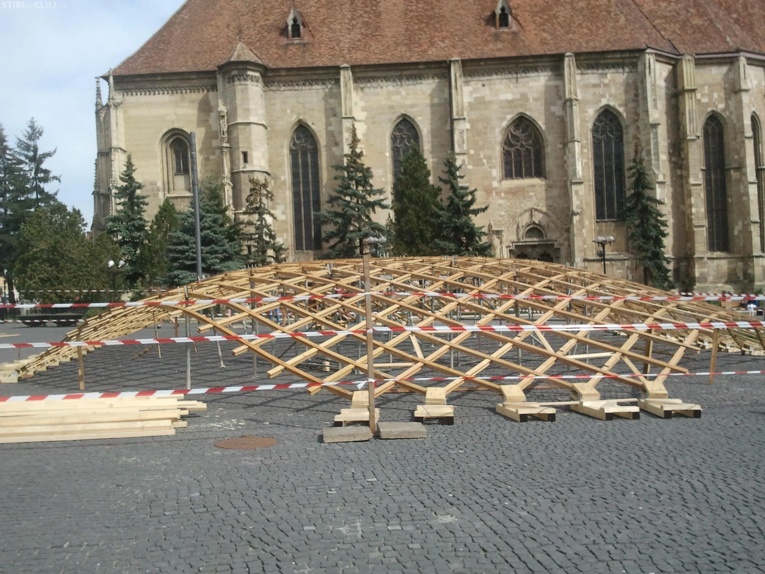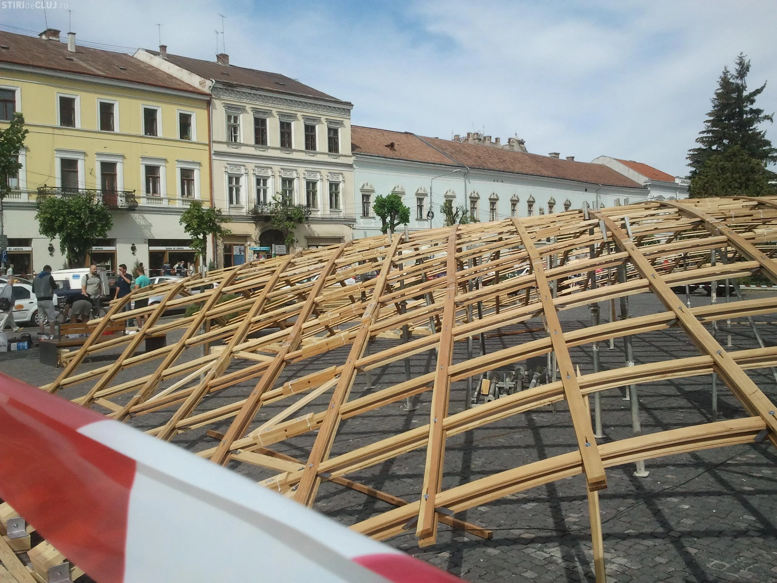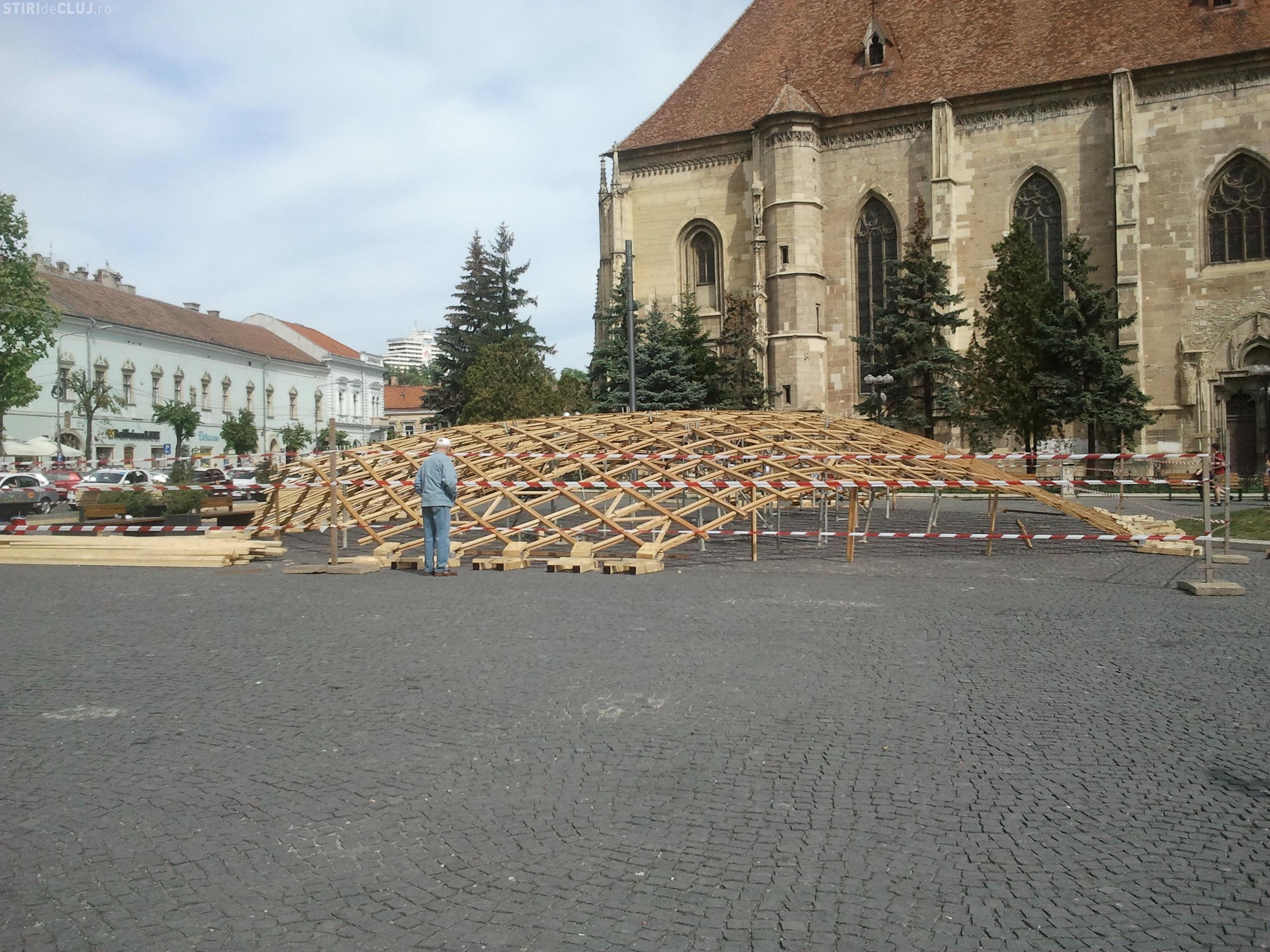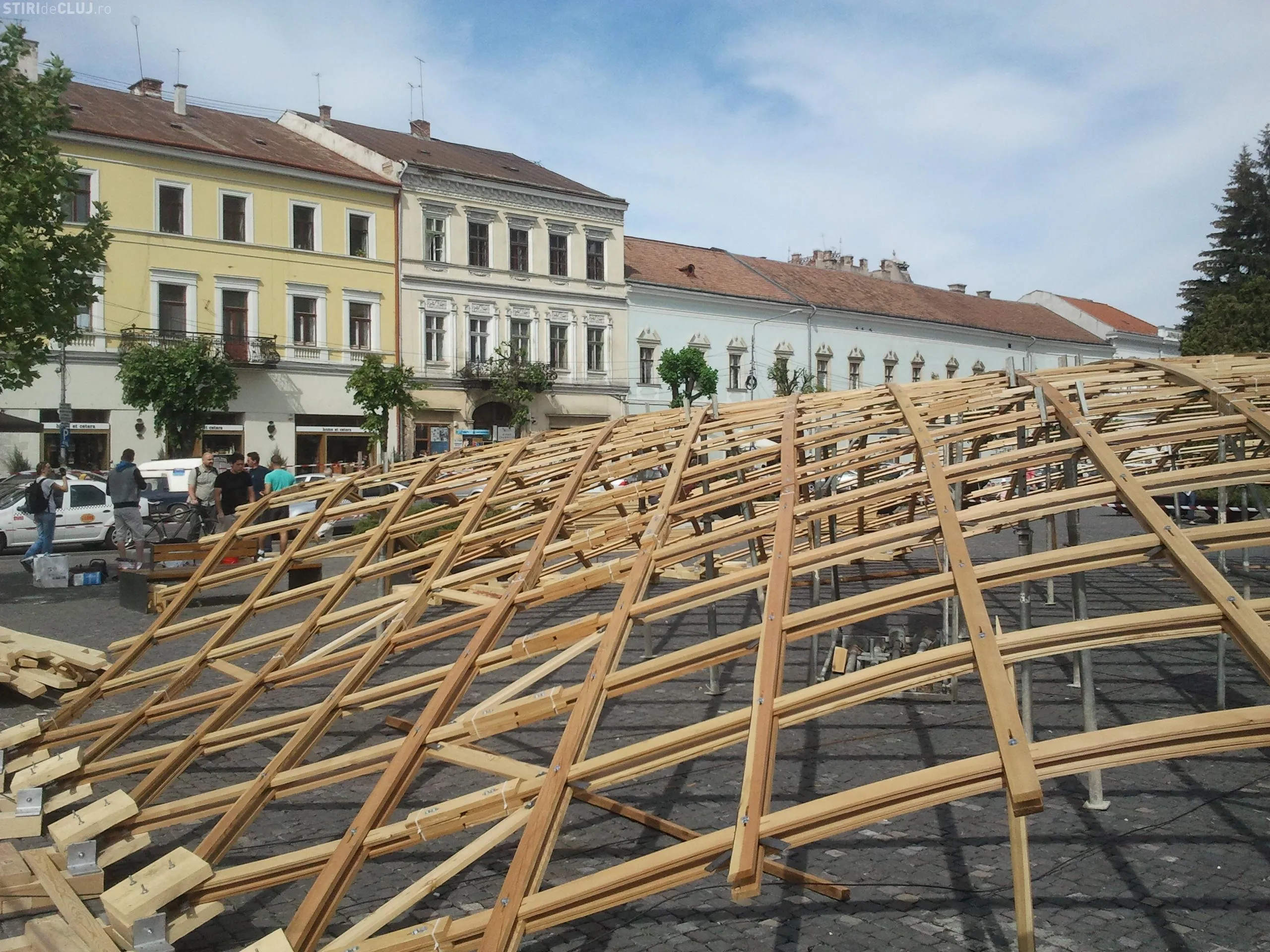 Pavilionul uriaș din Piața Unirii este ridicat pe jumătate. Va costa 15.000 de euro - FOTO