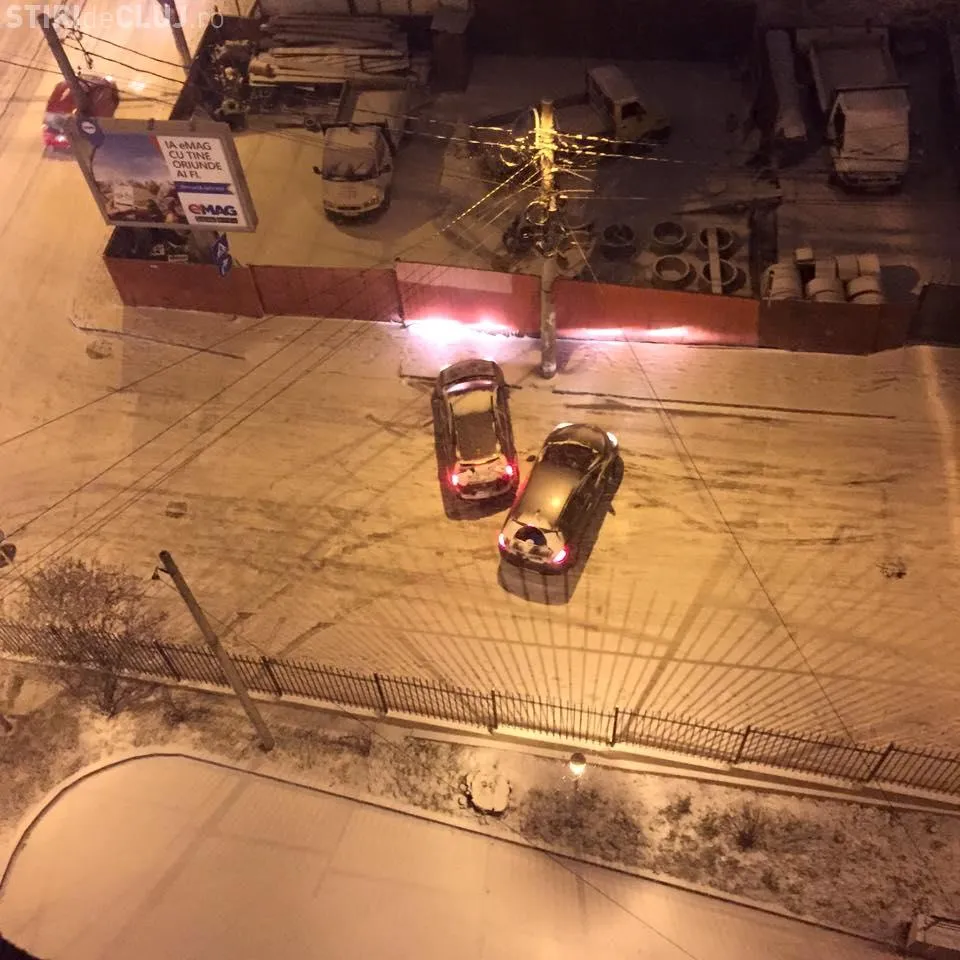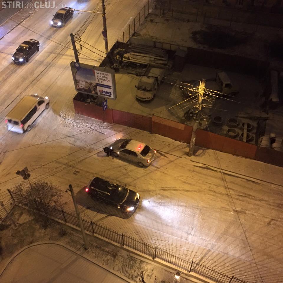 ”Pentru clujeni, sfat: evitați strada/panta lângă căminul Economica 2, ce merge către Dunării, in 2 minute am văzut 3 tamponări. Iarăși am fost surprinși de zăpadă și de iarnă..”, a scris pe Facebook un clujean.
