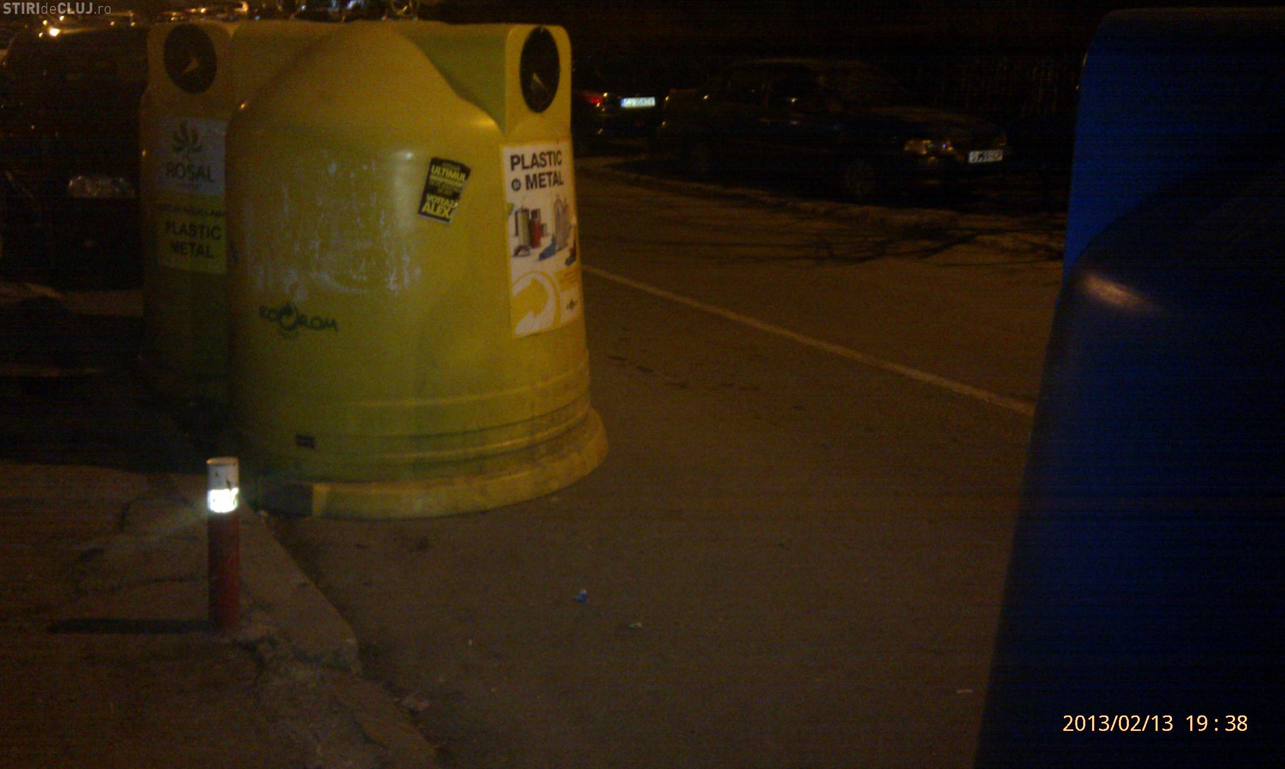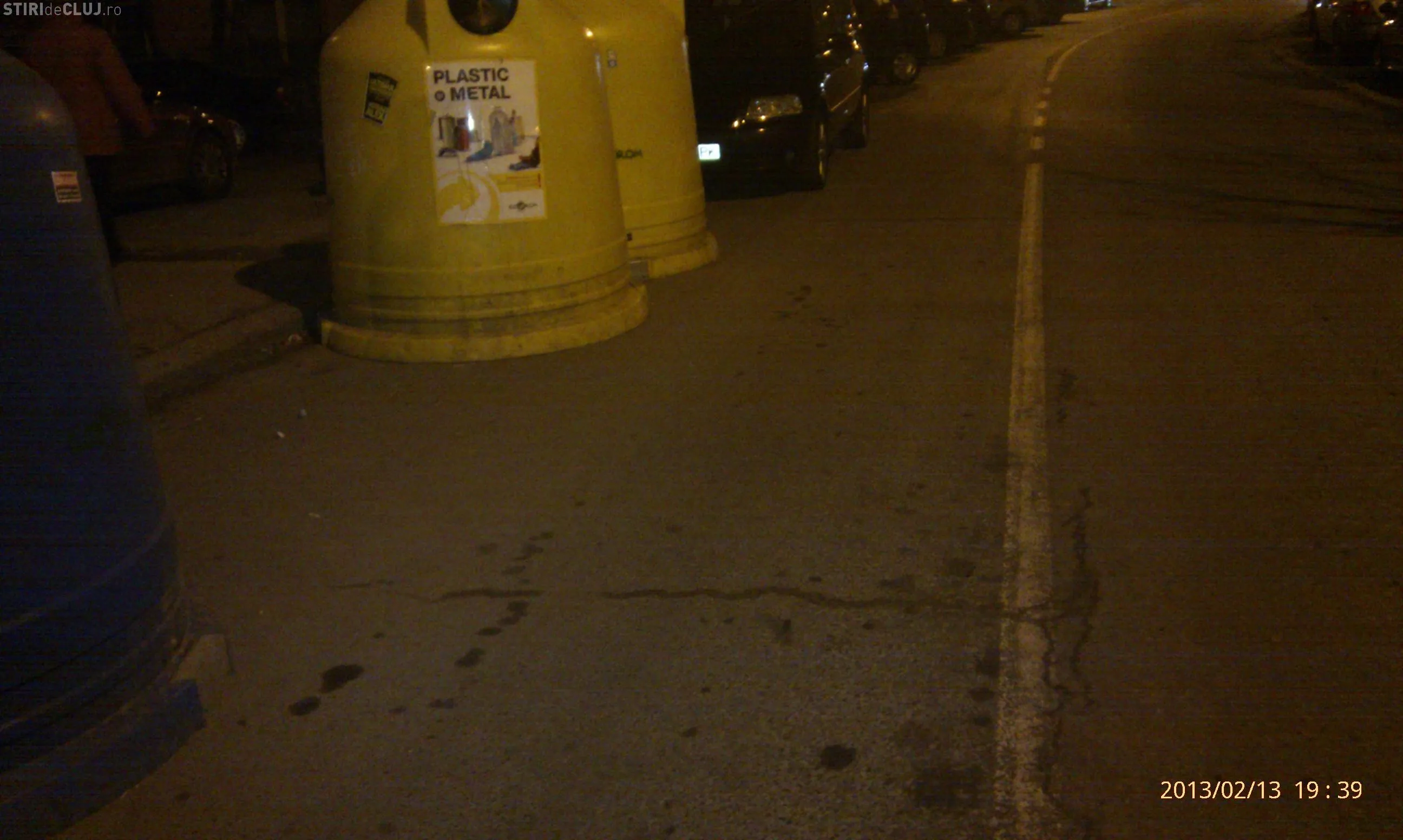 Un clujean reclamă faptul că Rosal și-a montat trei pubele pentru deșeuri ecologice în stradă și blochează o bandă de circulație, precum și vizibilitatea către trecerea de pietoni aflată la câțiva metri.