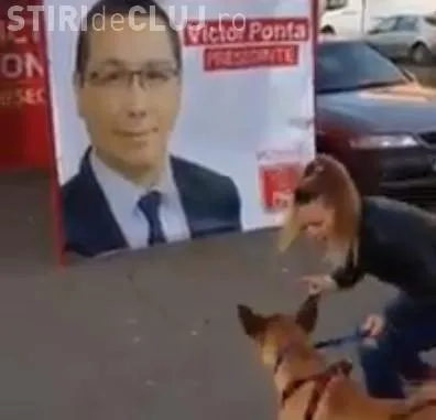 Un câine și-a surprins stăpâna în timpul unei plimbări prin cartierul Zorilor, după ce a început să latre la un afiș cu Victor Ponta.