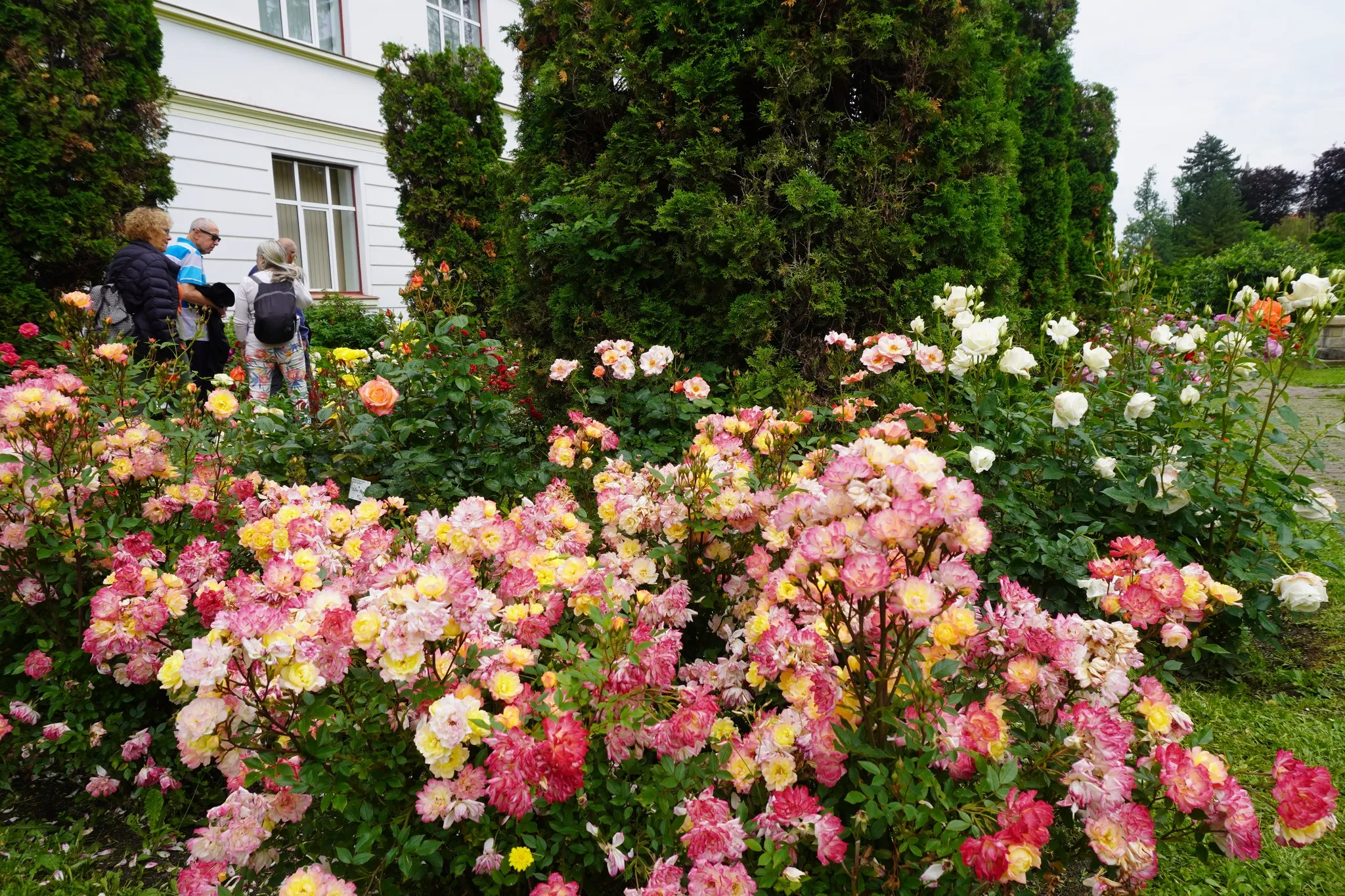 „În fața Institutului Botanic se întinde frumosul Rosarium, unde trandafirii își dezvăluie acum toată splendoarea! Aici puteți admira o varietate impresionantă de soiuri din clasele Thea-hibrid, Floribunda, Polyantha, urcători, acoperitori, miniaturi și englezești.
