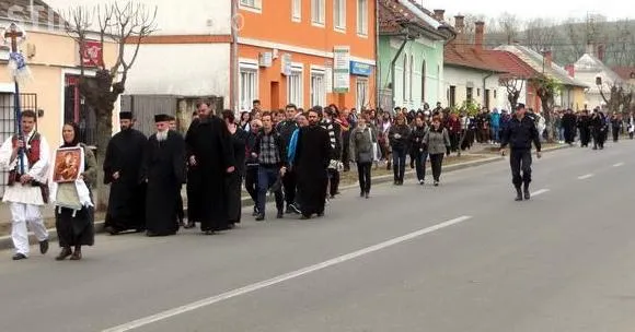 Pelerinii au parcurs drumul de 17 kilometri cu toate că vremea a fost aspră.