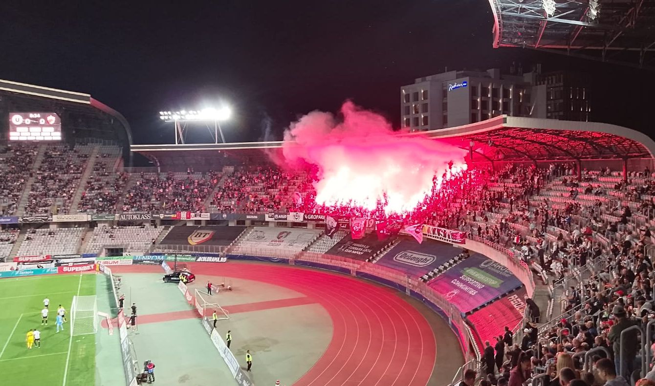 Universitatea Cluj s-a întors acasă după 5 săptămâni de exil, iar acum fanii au luat cu asalt Cluj Arena pentru a-și încuraja echipa favorită. Peste 10.000 de fani la debutul partidei, la ora 21:30, dintre care aproximativ 1.500 în peluza oaspete, acolo unde stau „câinii roșii”.