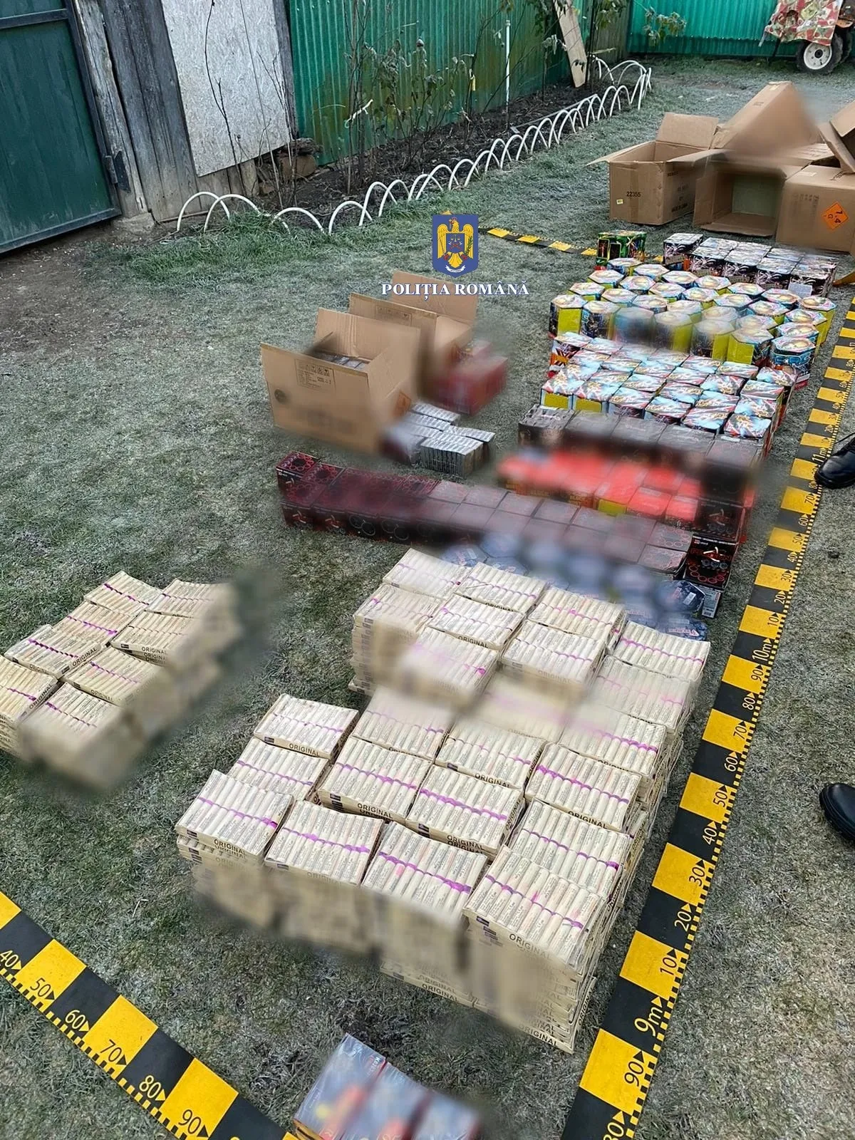 În cadrul percheziției a fost identificată și indisponibilizată cantitatea de aproximativ 400 de kg de articole pirotehnice, pe care bărbatul le-ar fi oferit spre vânzare în mediul online.