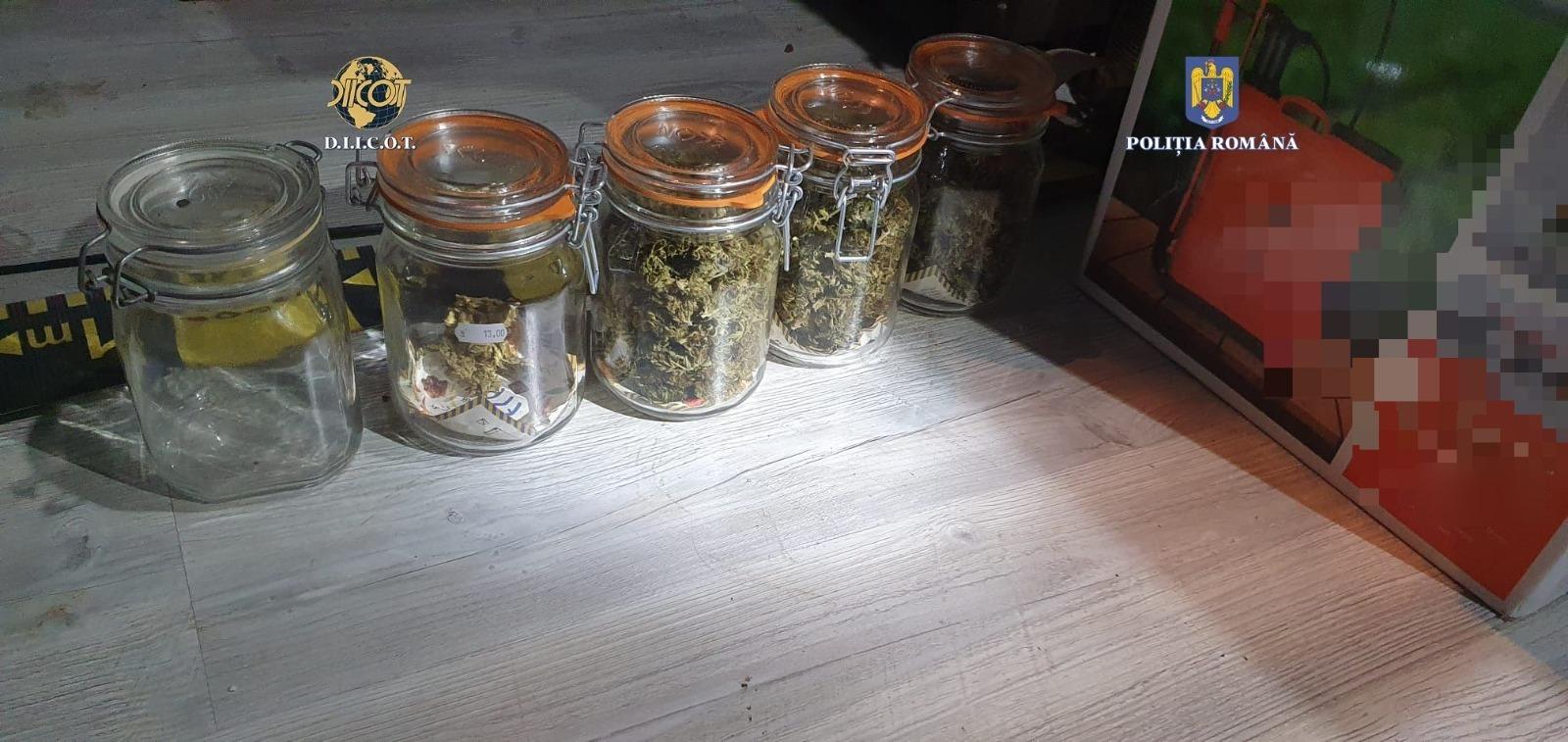 În urma perchezițiilor efectuate, au fost descoperite peste 220 de grame de canabis, precum și alte mijloace de probă.