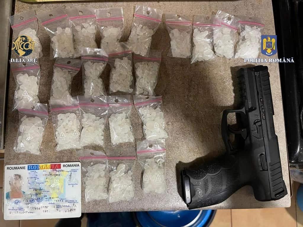 Măsurile au fost luate după ce, în aceeaşi zi, aceştia au fost prinşi în flagrant, în timp ce deţineau, în autoturism, cantitatea de peste 3 kilograme substanţă cu efect psihoactiv (2MMC) destinată comercializării către consumatori de pe raza judeţului Maramureş. Tot în vehicul a fost găsită o cutie din carton conţinând aproximativ 1000 de pliculeţe de tip zip-lock fără conţinut.
