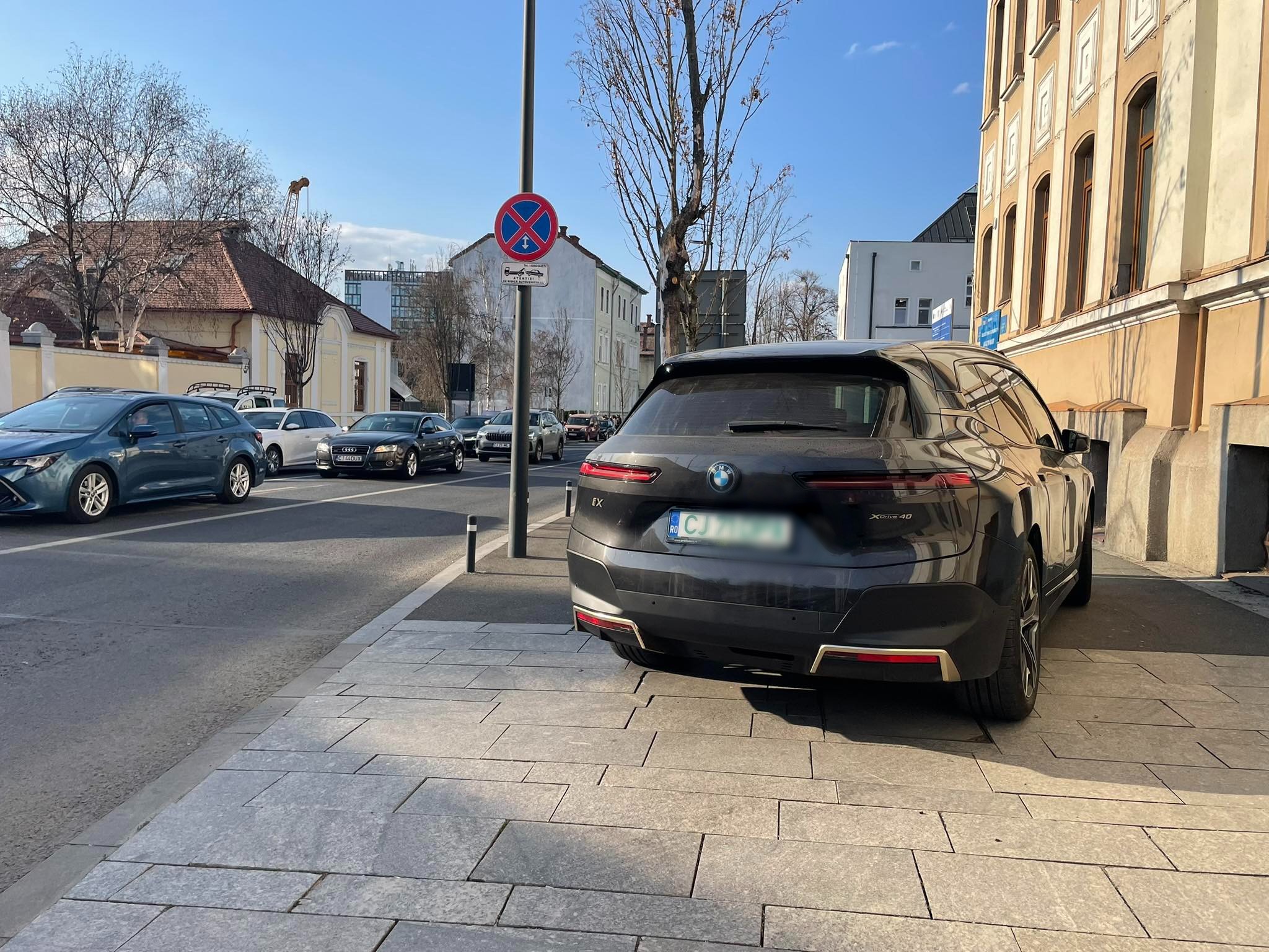 Performanță de nota 10 la nesimțire! Un clujean cu BMW a blocat trotuarul și a lăsat pietonii să se descurce pe șosea