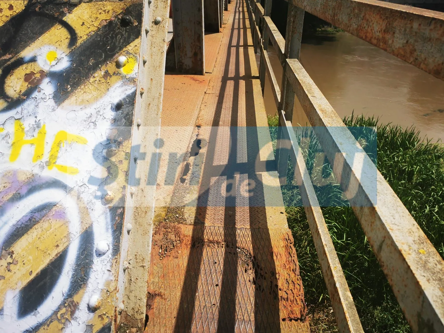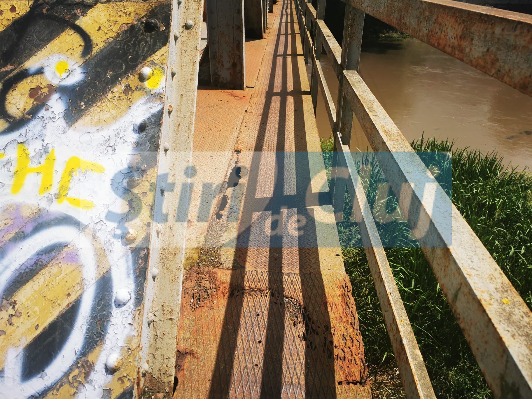 Podul de fier din comuna Apahida a devenit un real pericol pentru cei care îl tranzitează. Zona destinată pietonilor este uzată, ruginită și ar putea genera accidentări grave.