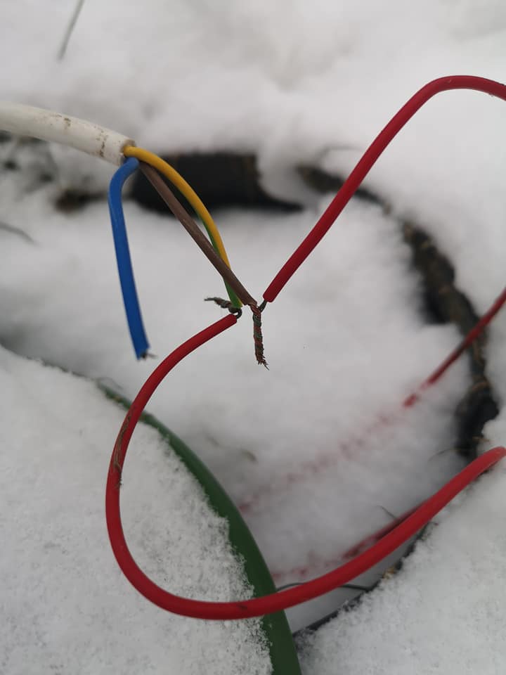Mai multe cabluri fără izolație prezintă un pericol real de electrocutare lângă Parkingul Primăverii nr. 8.
