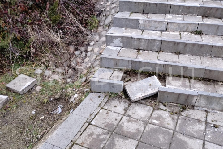 Mai exact, mai multe bucăți de piatră s-ar fi desprins din structura scărilor, iar suprafața denivelată îngreunează deplasarea.