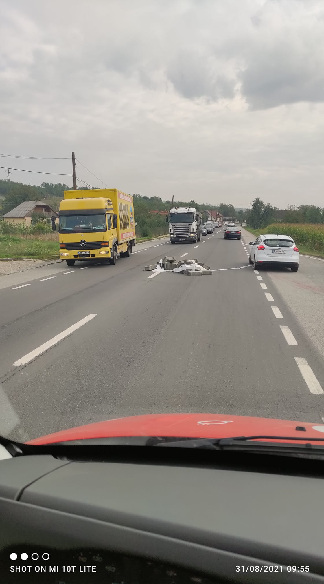 Un șofer neatent a pierdut pe drumul național 1C, în Livada, înainte de Gherla, un palet cu dale. Obstacolul încurcă grav circulația și pune în pericol viața șoferilor.