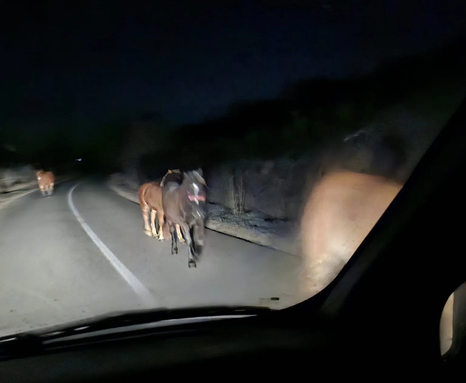 „Acești cai sunt în permanență pe șosea, noapte și zi sunt liberi. Dimineața, la ora 6:00, în ceață, sunt pe mijlocul drumului. Județ Cluj, între loc. Săcălaia și Bonț.”, a semnalat clujeanul într-o postare pe rețelele de socializare.