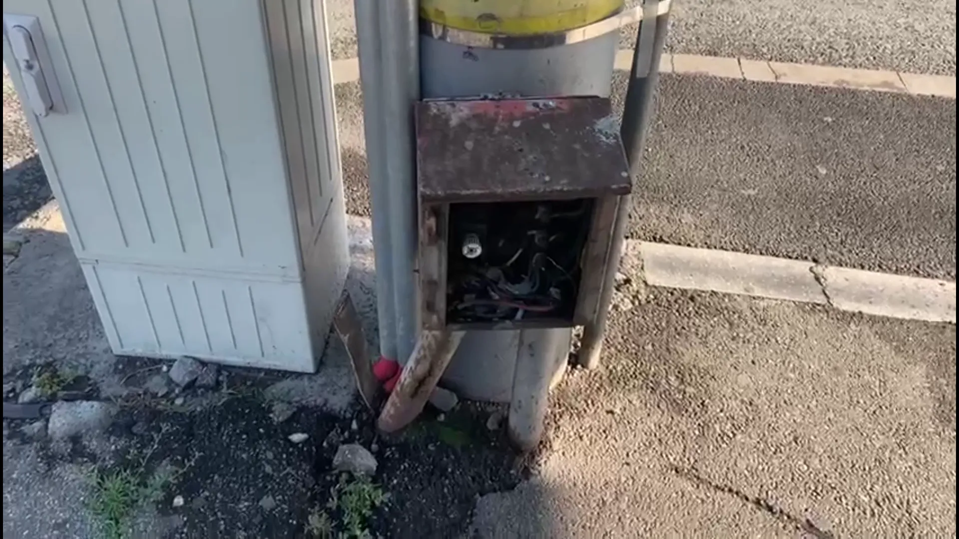 Ușa de la cutia electrica a fost ruptă de cineva, iar acum cablurile sunt accesibile oricui.