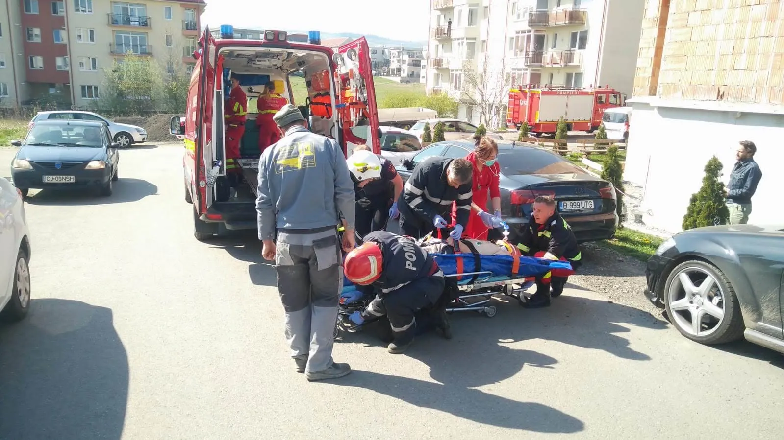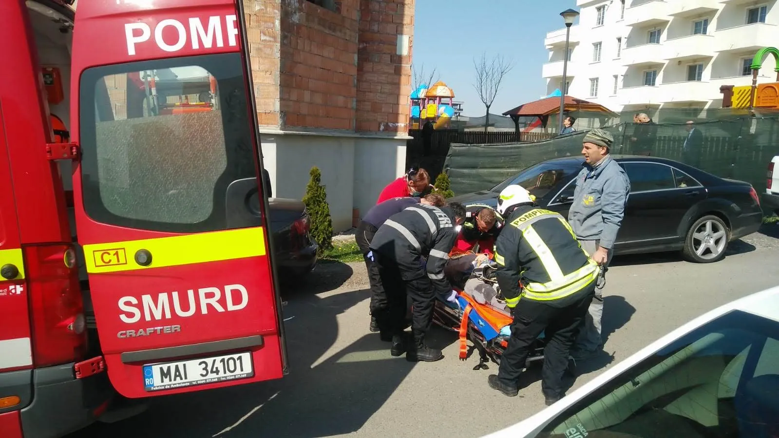 ”Un bărbat a primit asistență medicală de urgență. A suferit traumatisme severe in urma caderii de la înălțime (biserica aflata in construcție) și a fost transportat la spital”, anunță ISU Cluj.