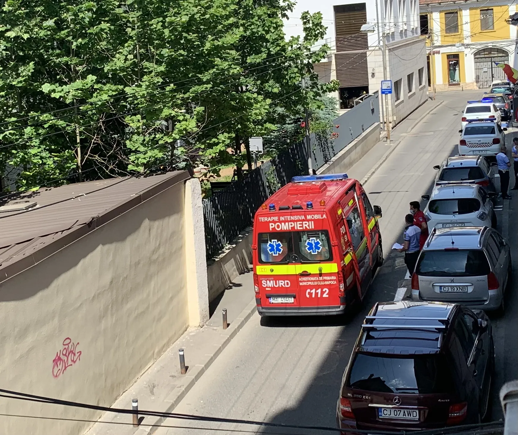 Persoană cu convulsii, blocată într-o mașină în centrul Clujului - FOTO