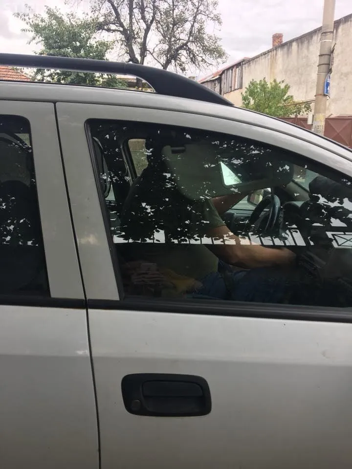 (S-a urcat în mașină și-a plecat înainte să-i pozez fața. Dar i-am prins numărul.)”