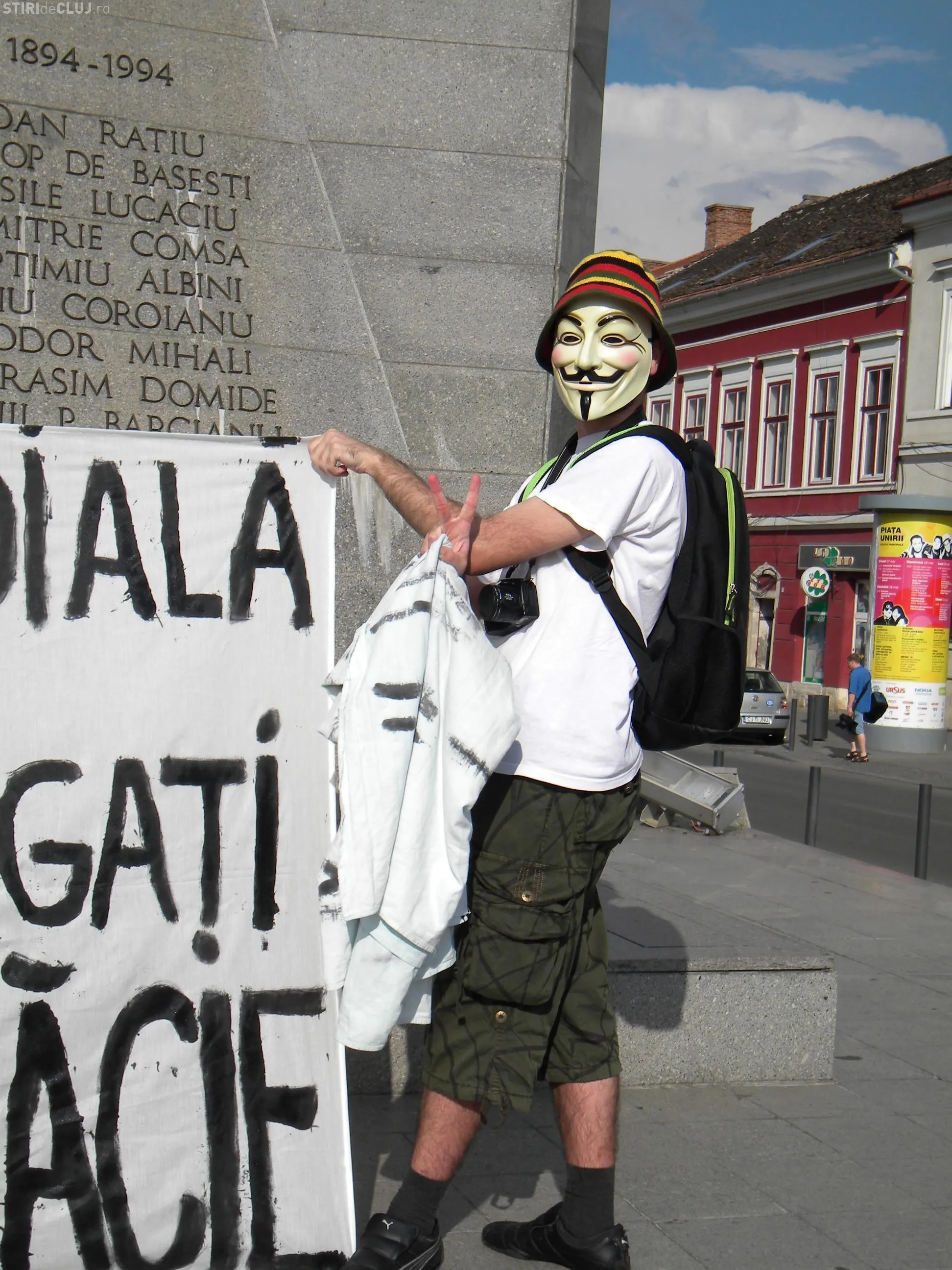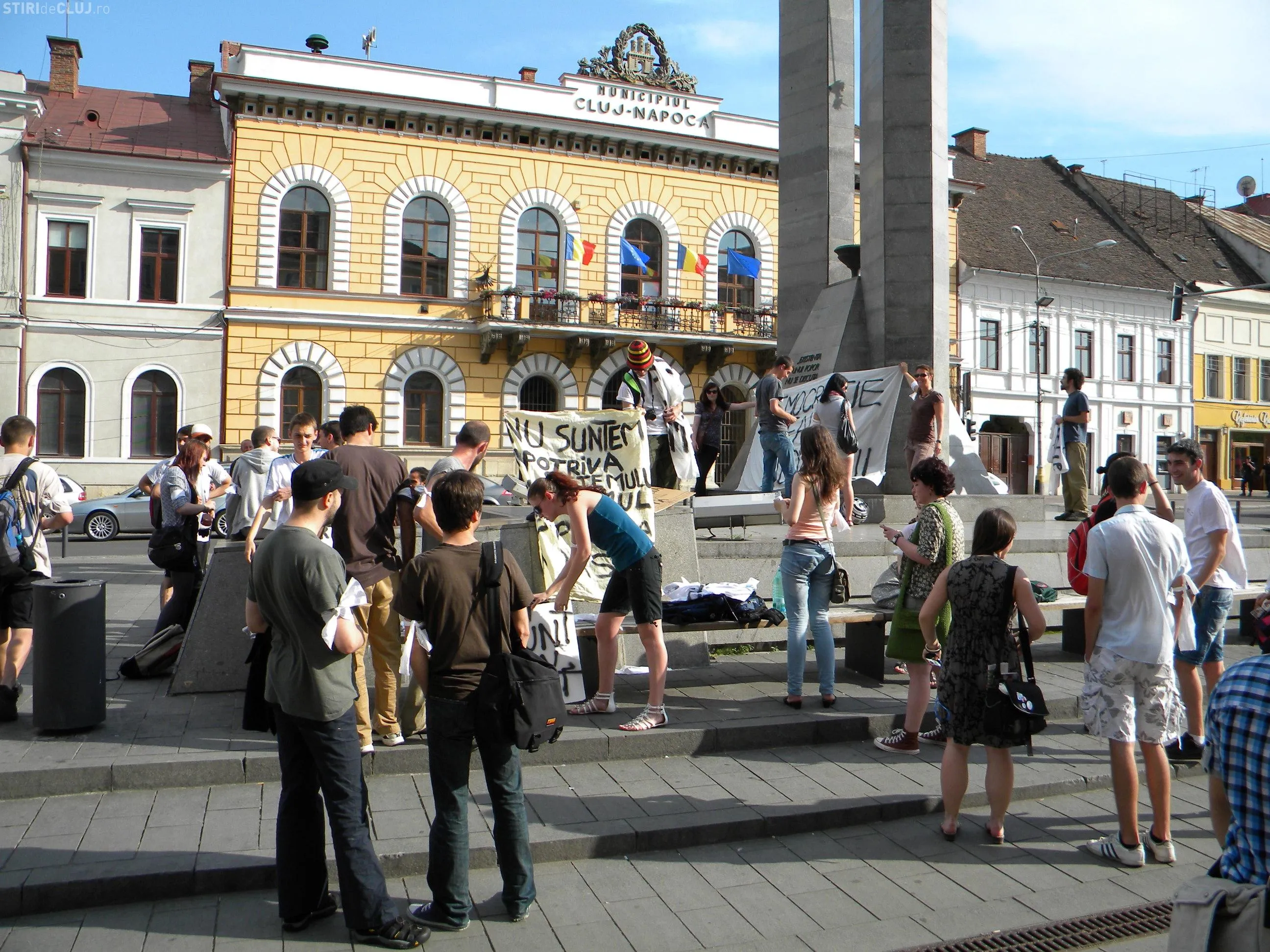 Prin aceasta actiune, tinerii din Cluj au dorit sa arate ca sunt alaturi de protestatarii din 130 de orase ale Europei care au iesit in strada in 5 iunie, sub egida "European Revolution".