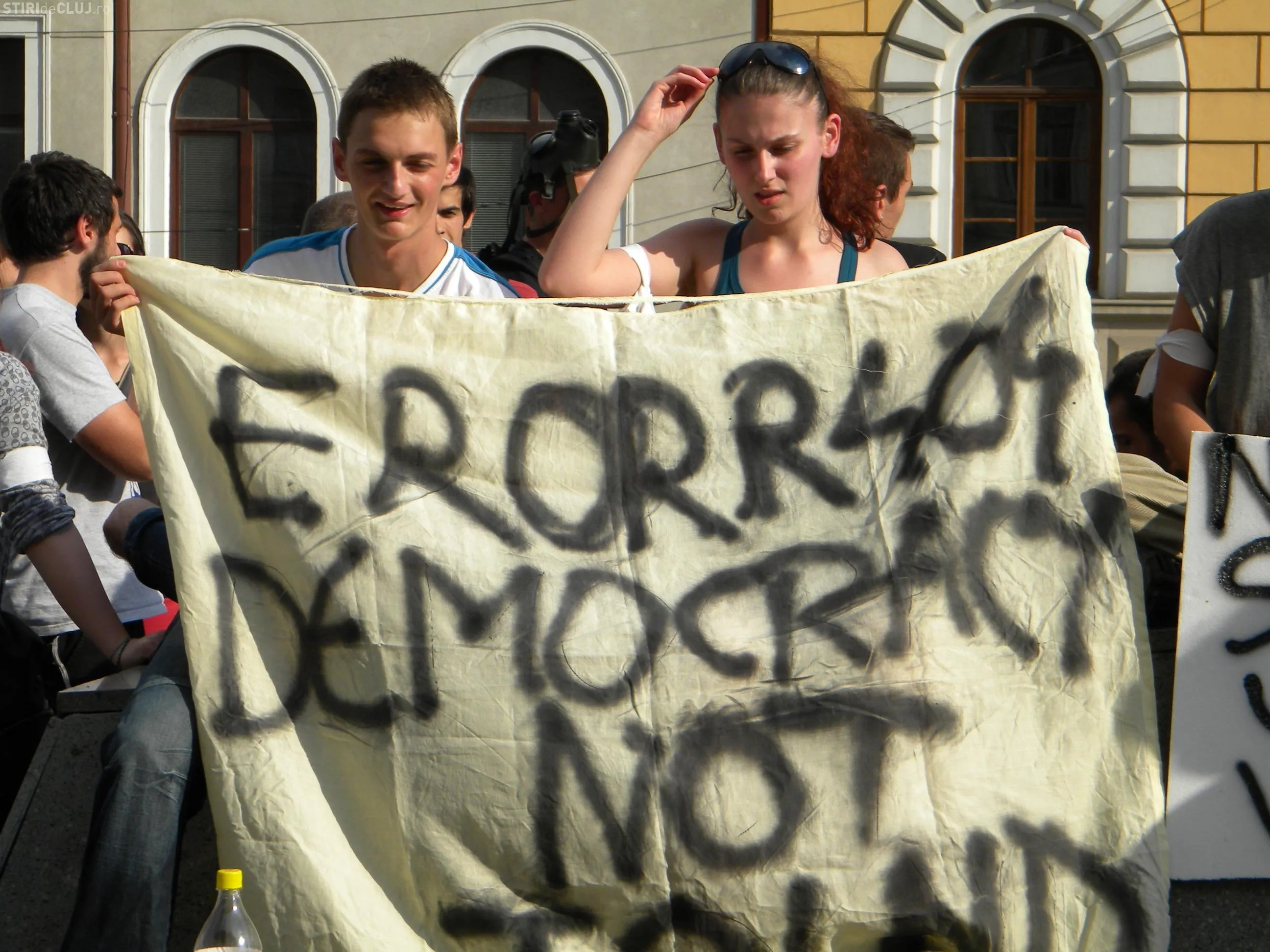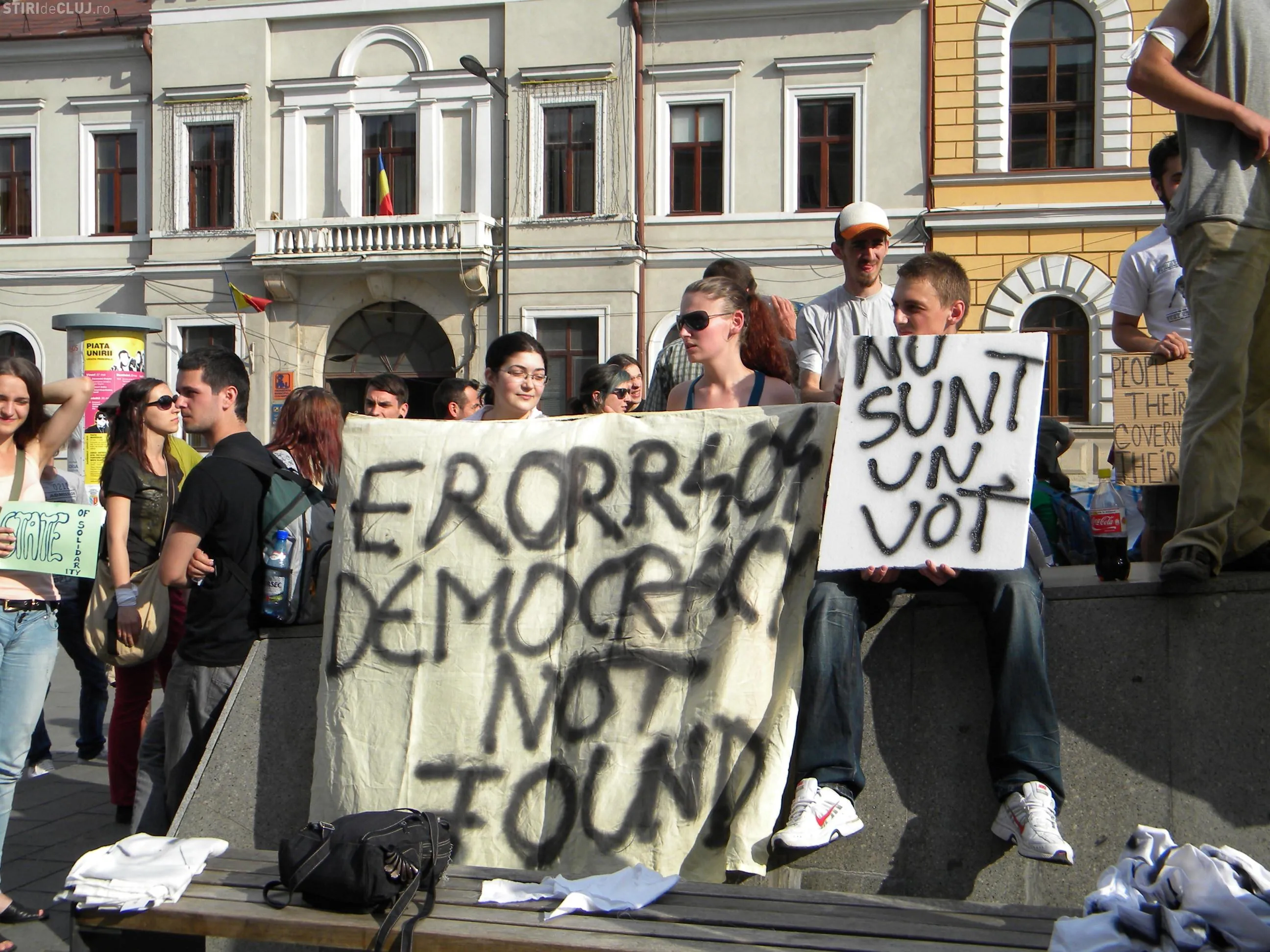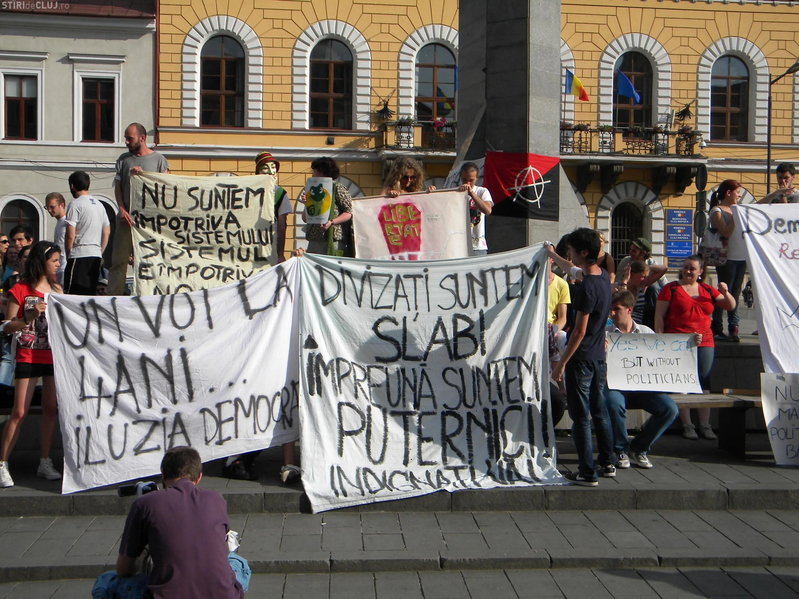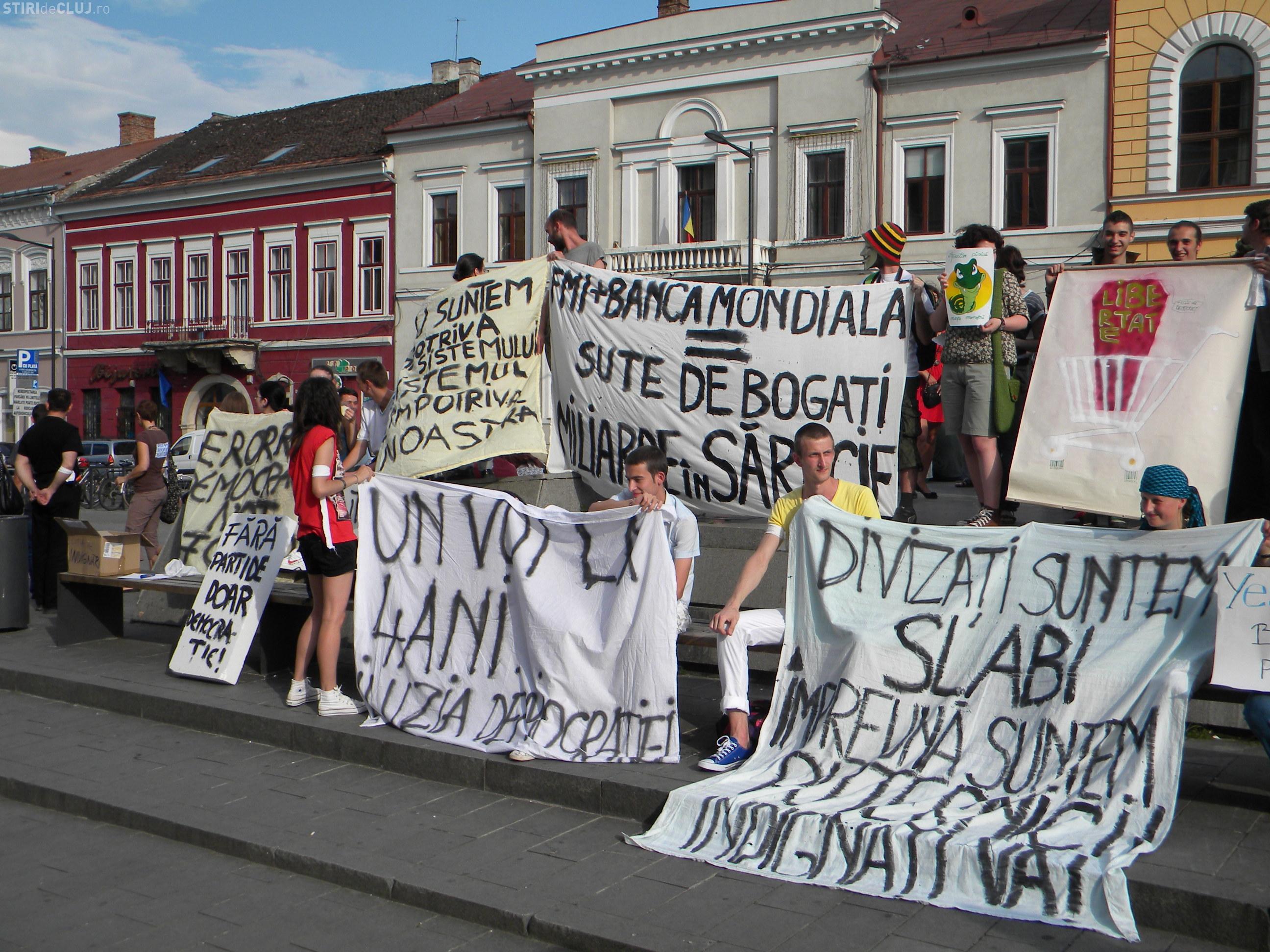 Peste 100 de tineri au protestat la Cluj impotriva FMI si a lipsei democratiei FOTO si VIDEO