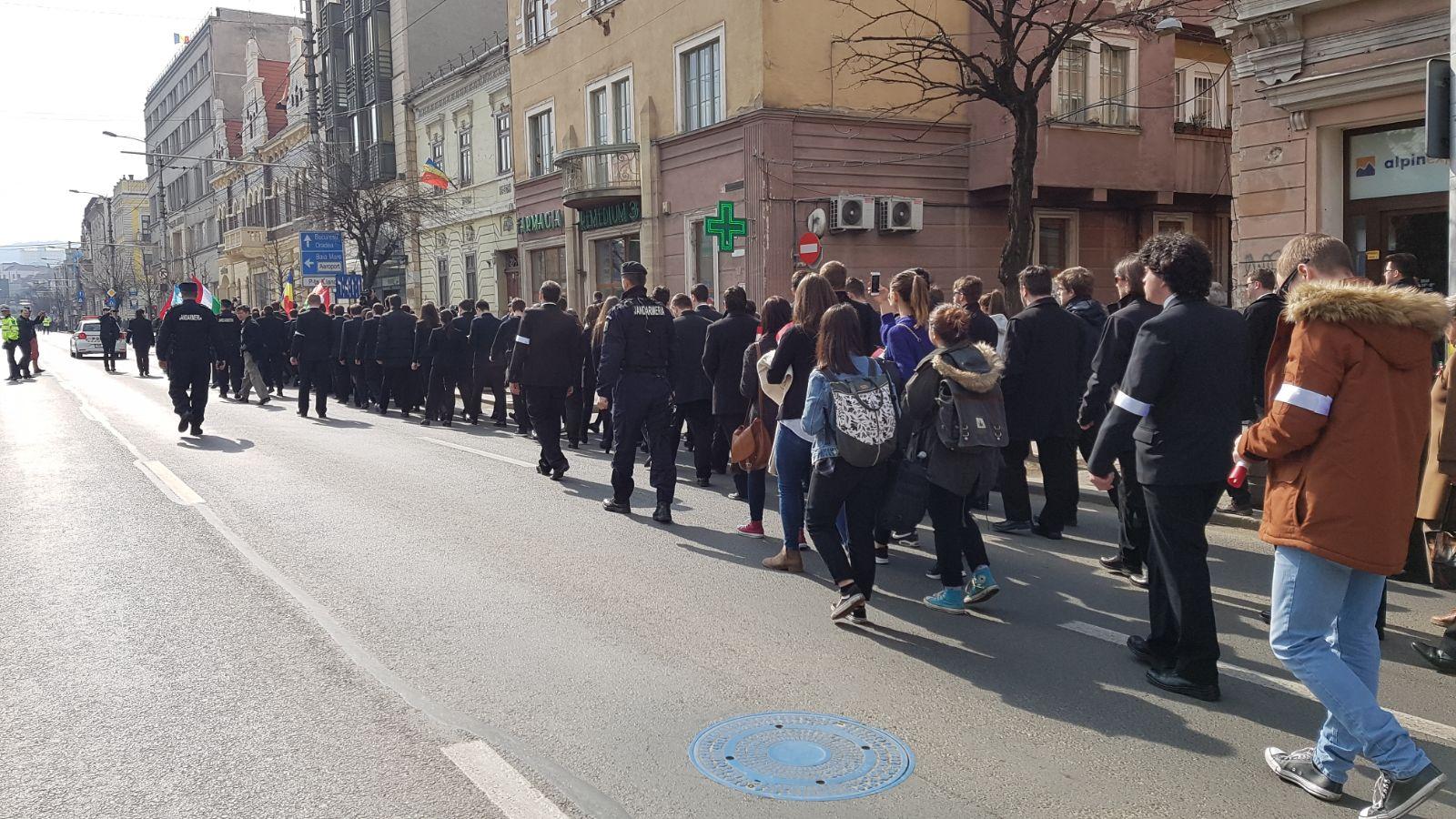 Aceștia au pornit într-un marș, în centrul orașului, pornind de la Institutul Teologic Protestant, până la biserica Sf. Mihail, unde va avea loc o slujbă religioasă.