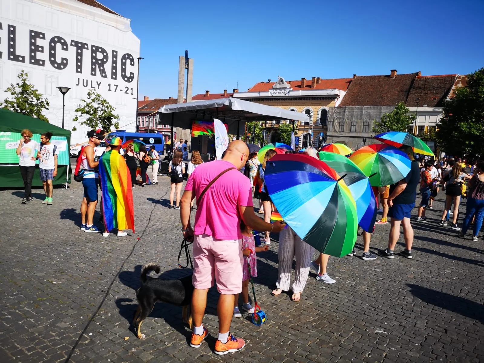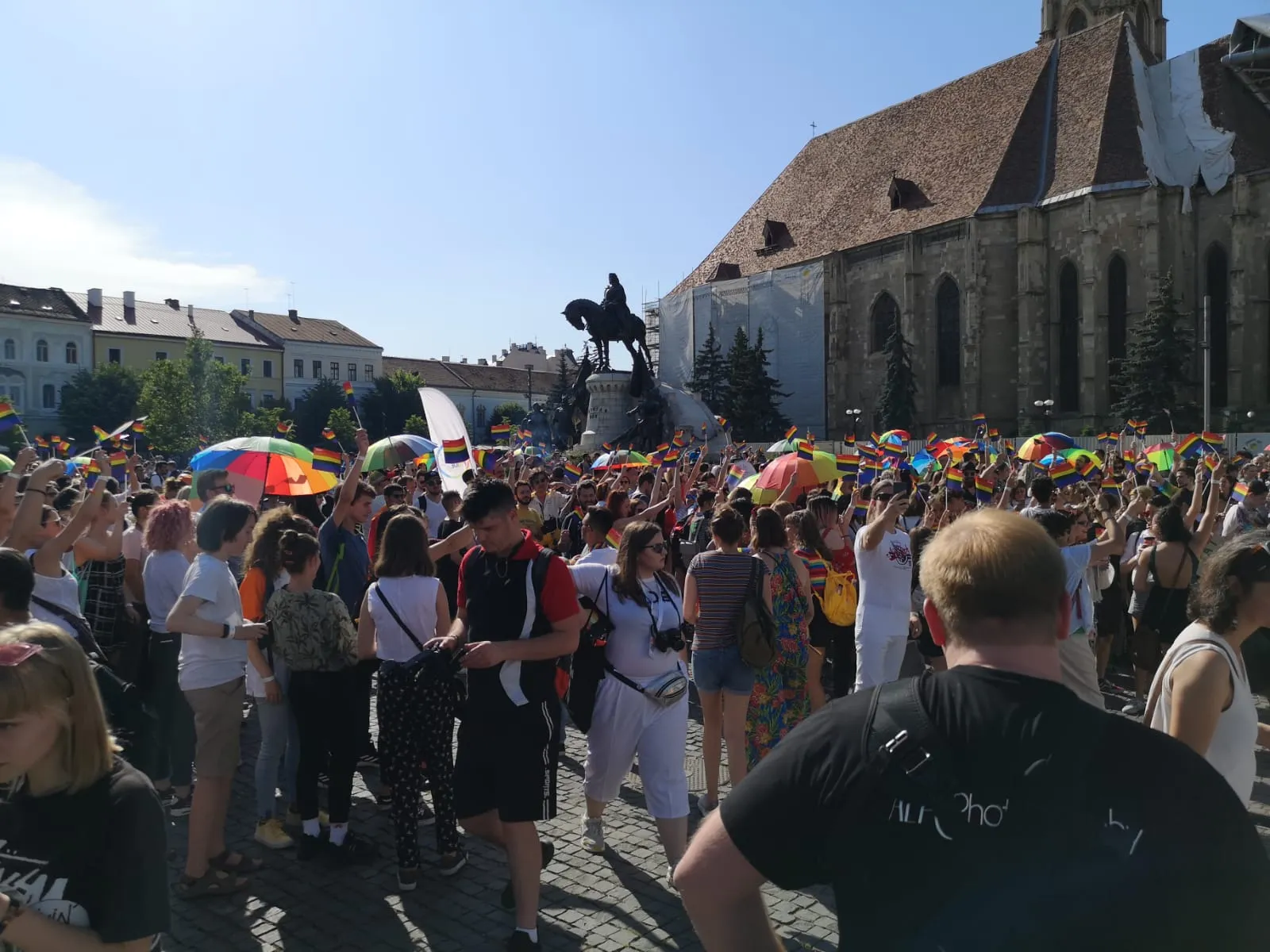 Suntem aici să revendicăm drepturile comunității LGBT din România. Oameni care nu ne cunosc ne întrebă de ce ieșim în stradă la Cluj. Pentru că avem dreptul! Ca orice clujean, avem și noi dreptul la întruniri publice. Suntem aici să le spunem celor care vor să asculte că România este locul în care trăiesc și familiile noastre, și prietenii noștri. Când oamenii ne spun să plecăm din țară, ne întrebăm: tu ți-ai dori să pleci de lângă persoanele dragi? Eu îmi doresc să rămân lângă ei. Suntem medici, profesori, avocați, casieri la supermarket, voluntari, electricieni, sportivi, actori sau ingineri, studenți ori elevi. Suntem aici. Suntem aici pentru că ne dorim să ne cunoașteți pe noi așa cum suntem, și nu cum ne prezintă alții. Pentru că oricât de multă ură va fi îndreptată către comunitatea LGBT din România, știm că românii se vor sătura de știrile false și de instigările împotriva tuturor celor care sunt diferiți. Și toate acestea în numele unei religii care de fapt te îndeamnă la respect, nu la excluziune. Atunci când iubești, nu poți să greșești. Suntem aici pentru că nu vrem ca alții să mai decidă modul în care persoanele LGBT trebuie să își trăiască viața de familie. Suntem aici pentru a da vizibilitate comunității LGBT din România. Fără stereotipuri și fără ură. Suntem aici pentru voi.