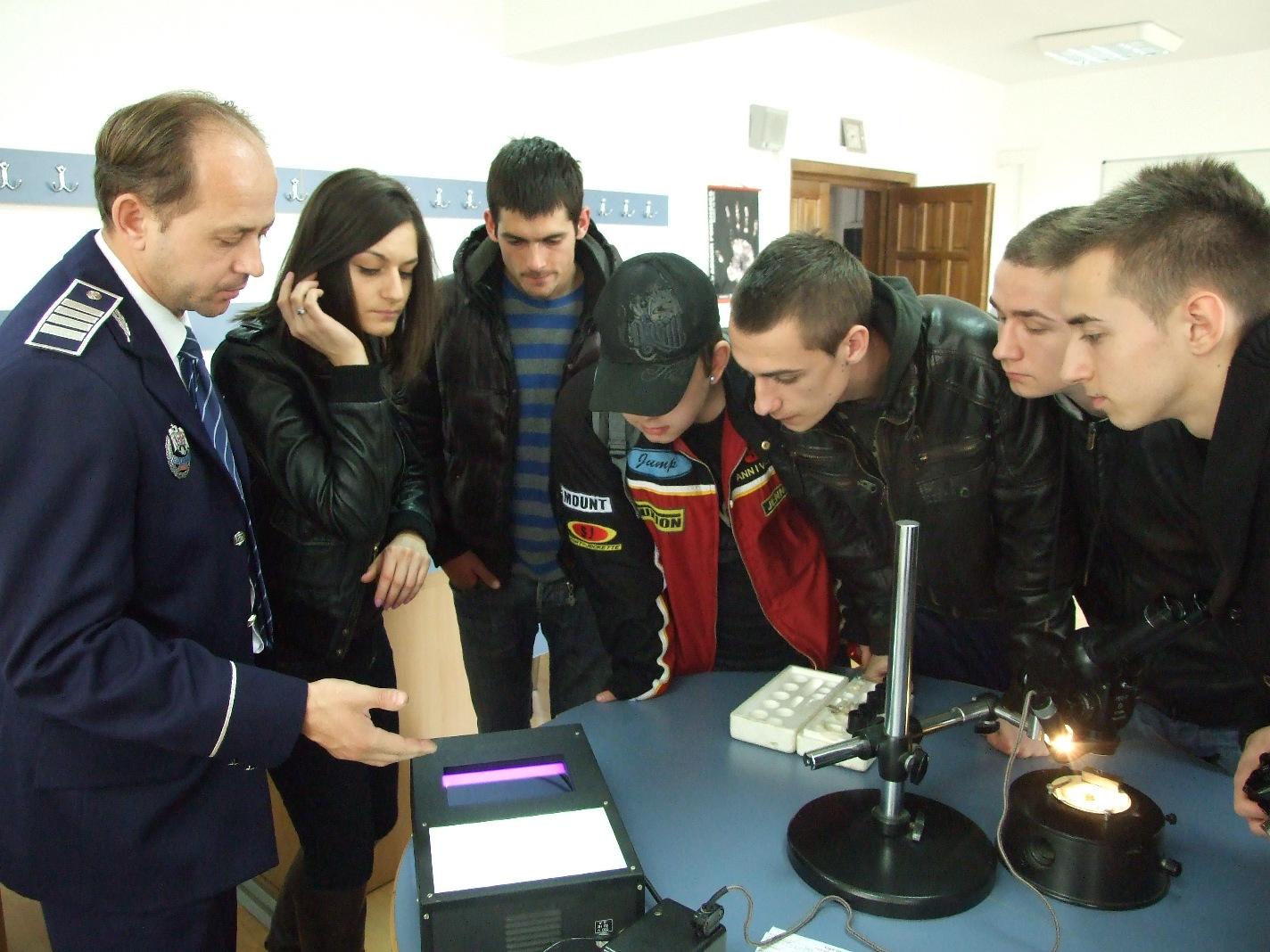 Peste 600 de elevi au vizitat miercuri Scoala de Agenti de Politie "Septimiu Muresan" Cluj, in cadrul "Zilelor Portilor Deschise", organizata cu ocazia Zilei Politiei Romane.