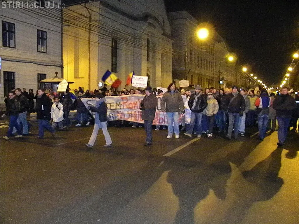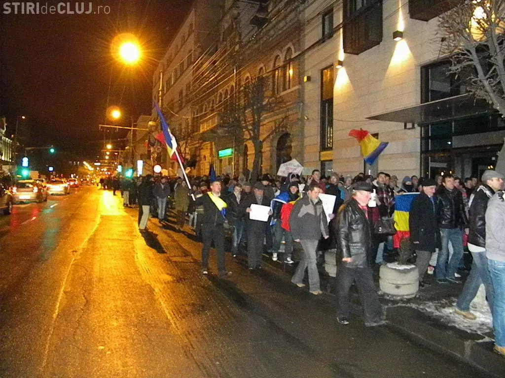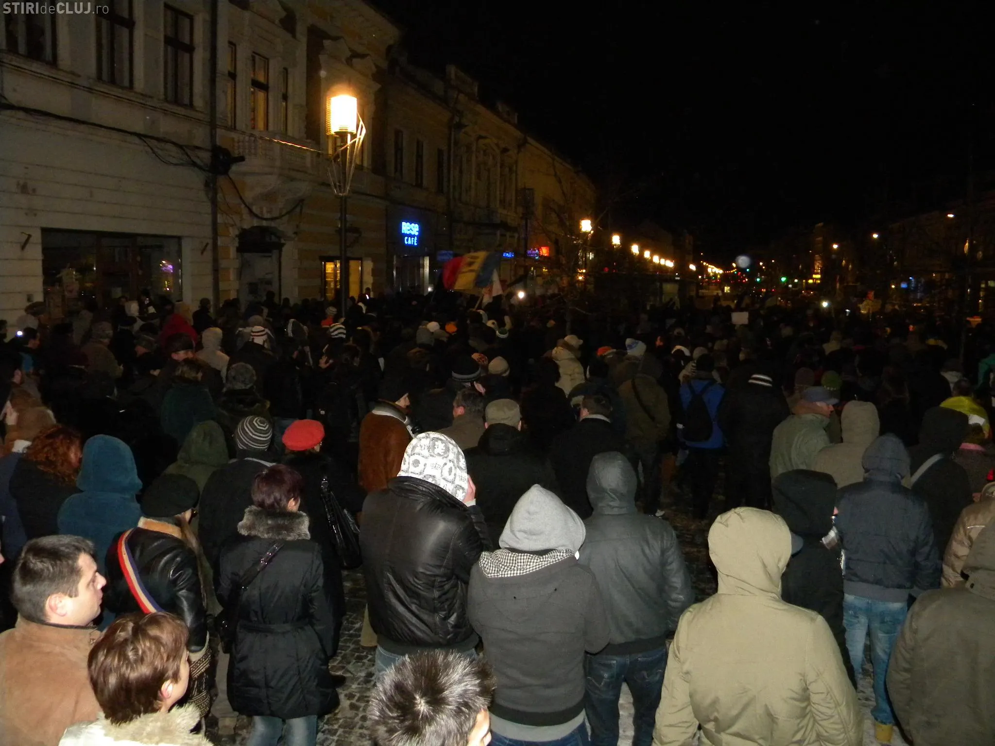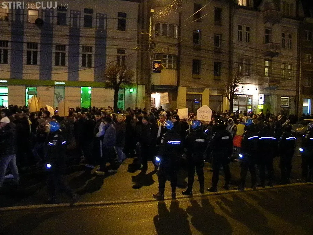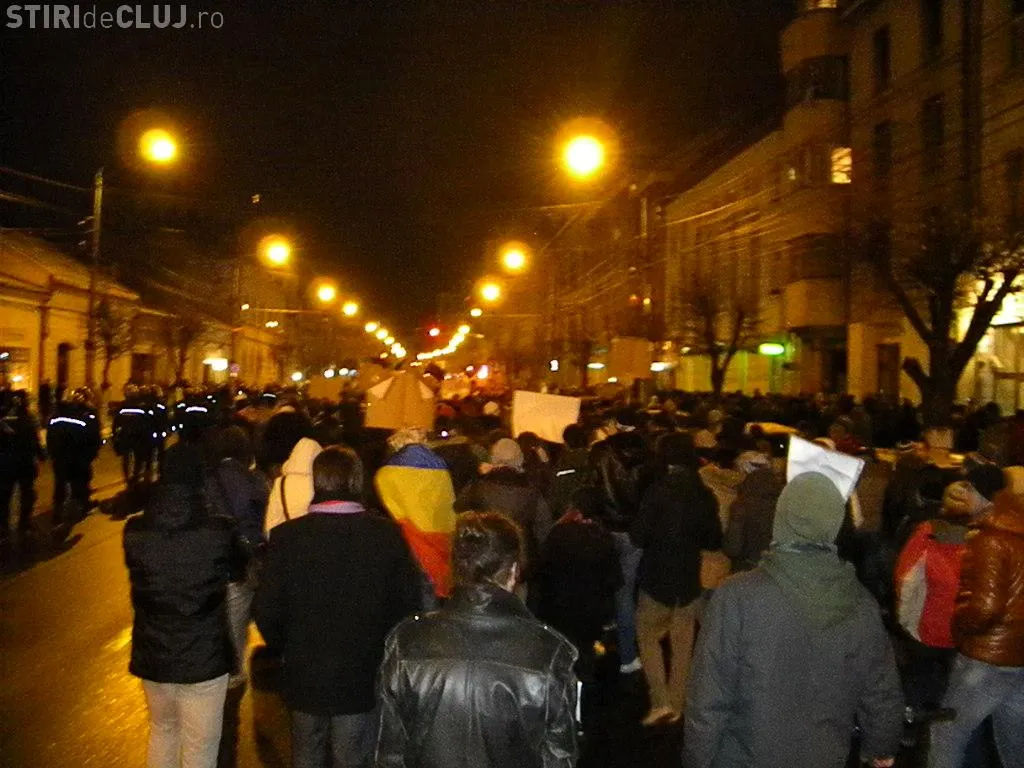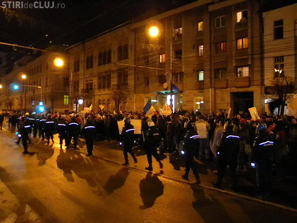 Protestatarii s-au strans initial in Piata Unirii, in jurul orei 19.00. Multimea a crescut de la 500 la peste 1000 de persoane si oamenii au pornit, la ora 20.00, intr-un mars pe Bulevardul Eroilor si s-au oprit la Prefectura Cluj.