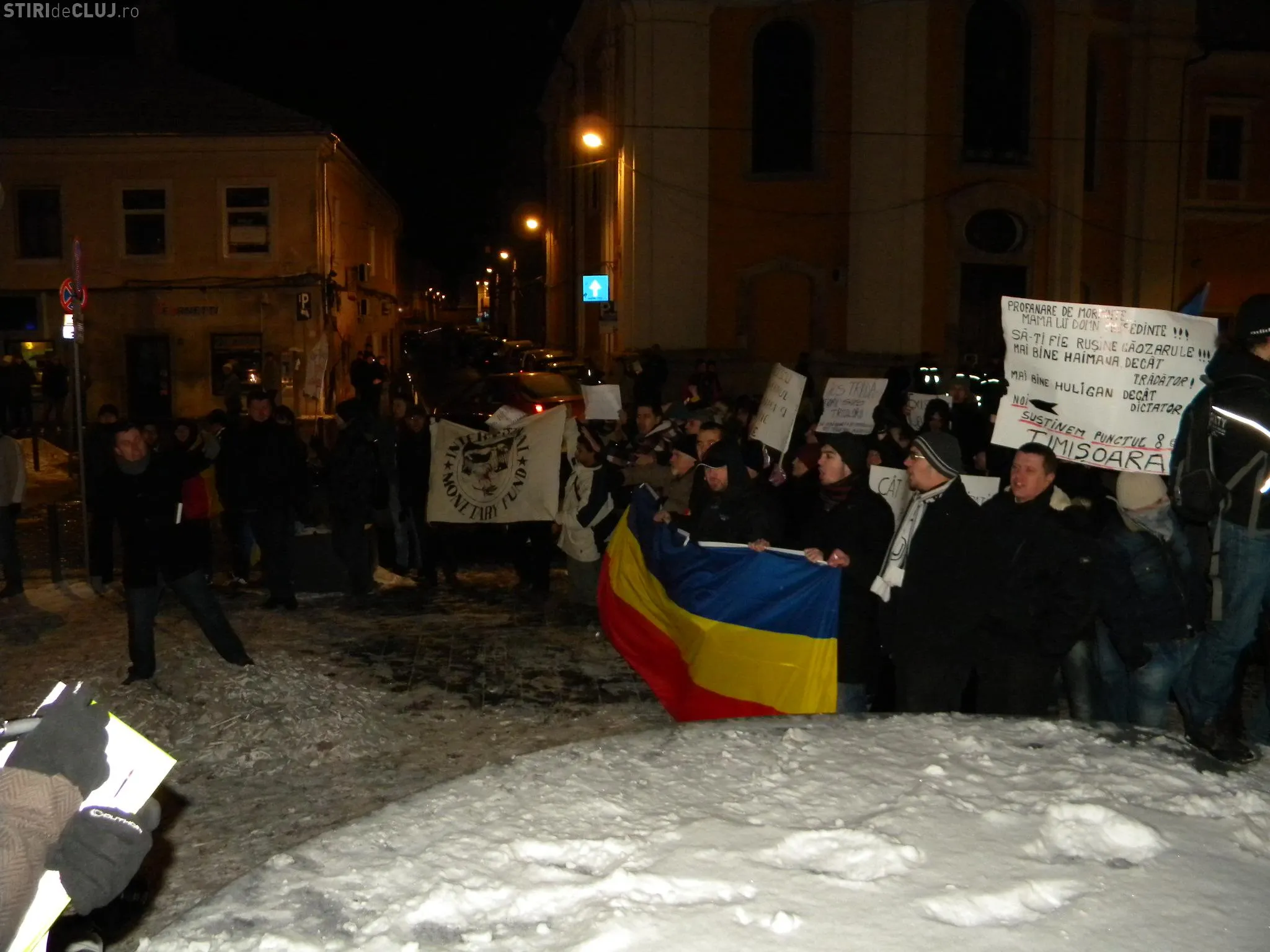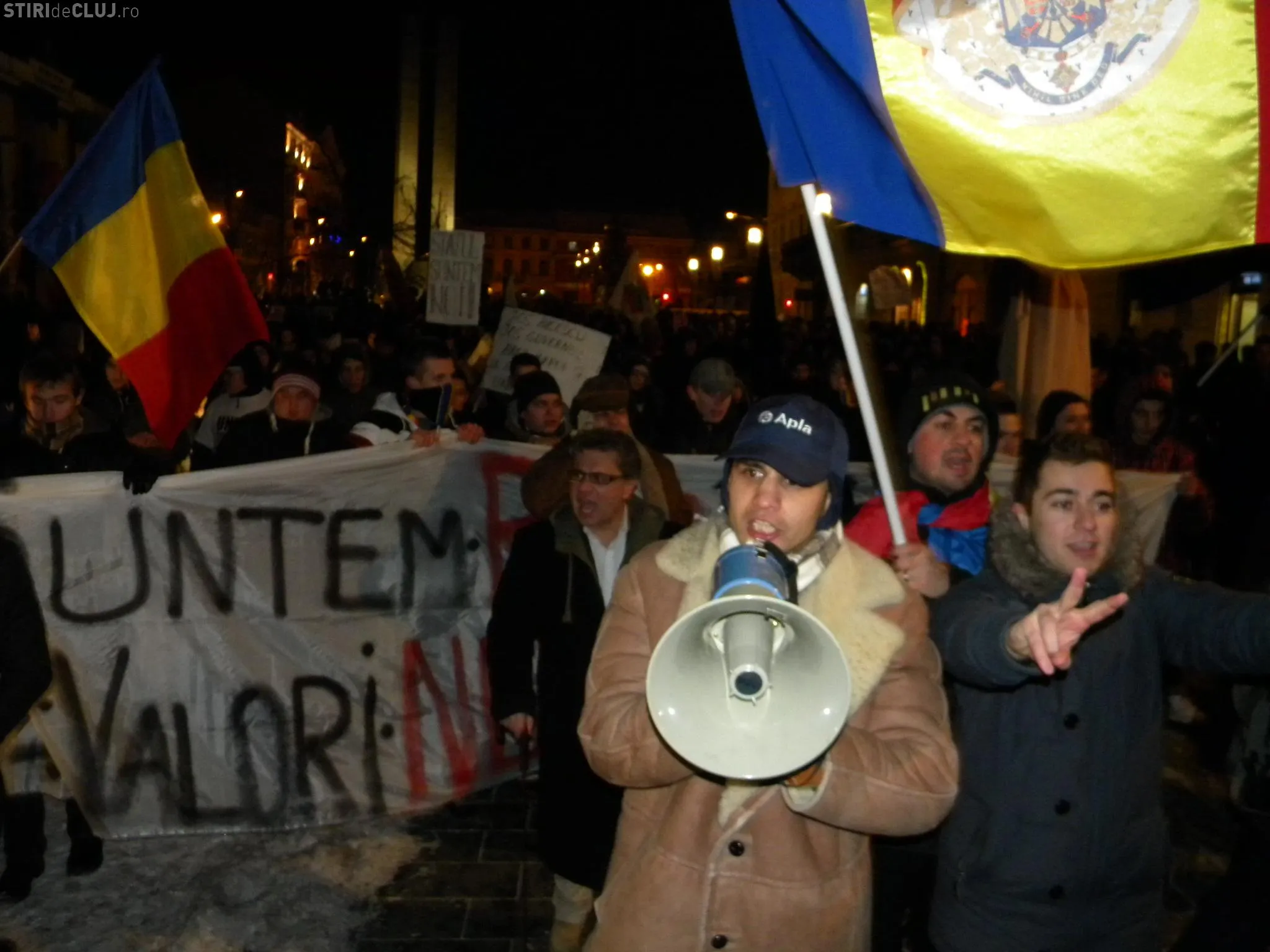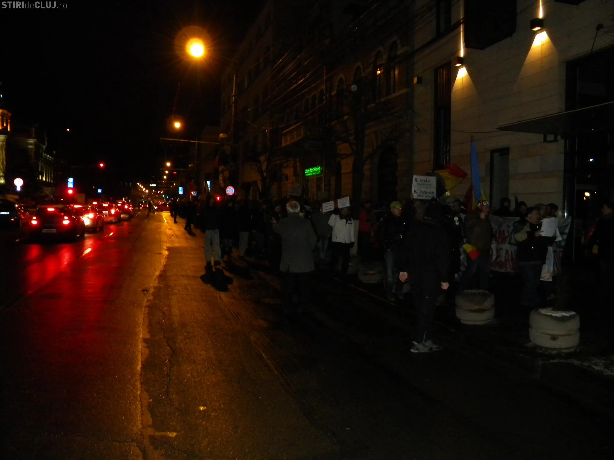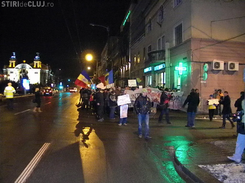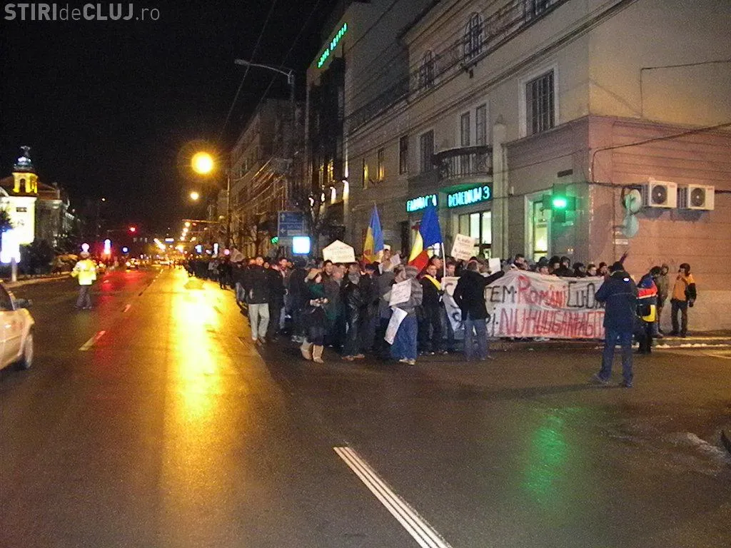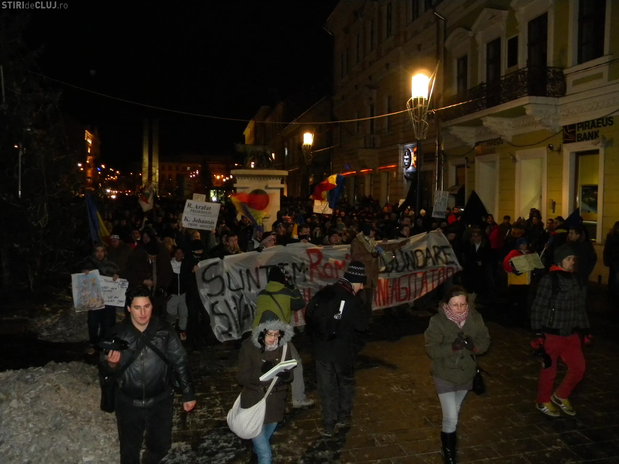 Protestatarii s-au strans initial in Piata Unirii, in jurul orei 19.00. Multimea a crescut de la 500 la peste 1000 de persoane si oamenii au pornit, la ora 20.00, intr-un mars pe Bulevardul Eroilor si s-au oprit la Prefectura Cluj.