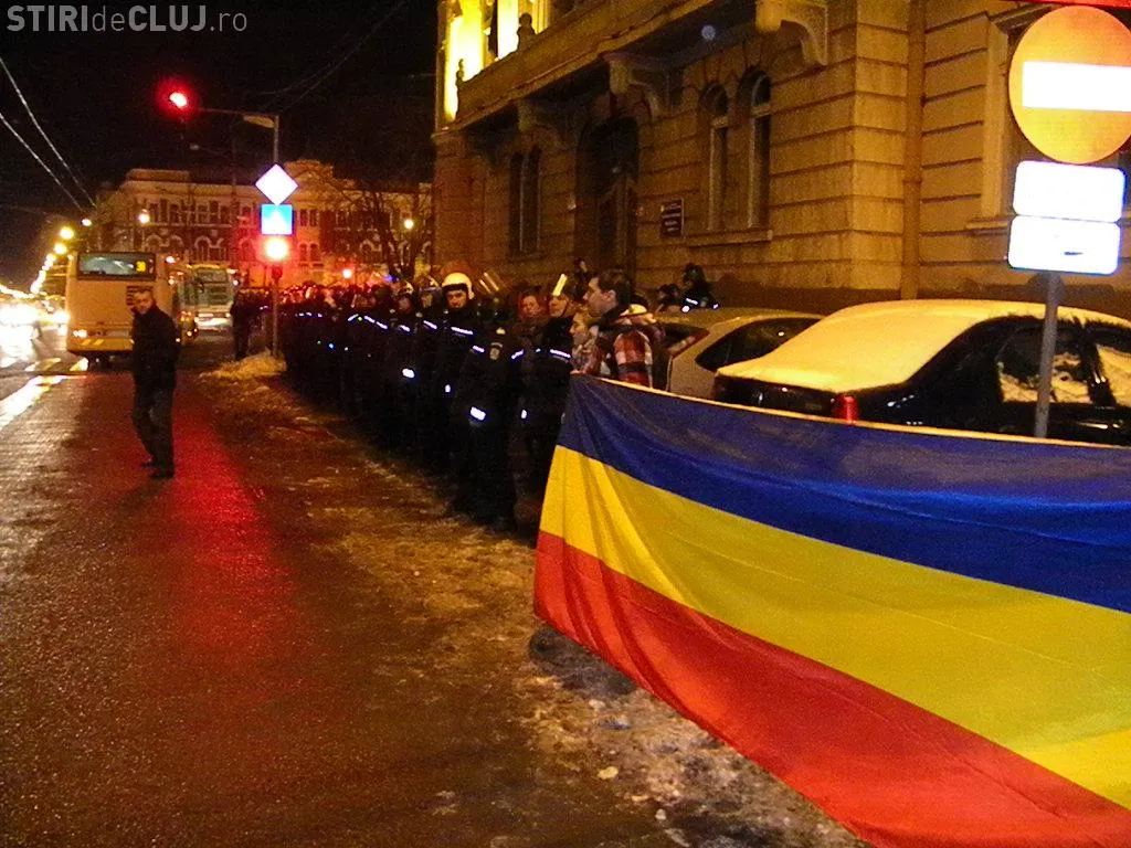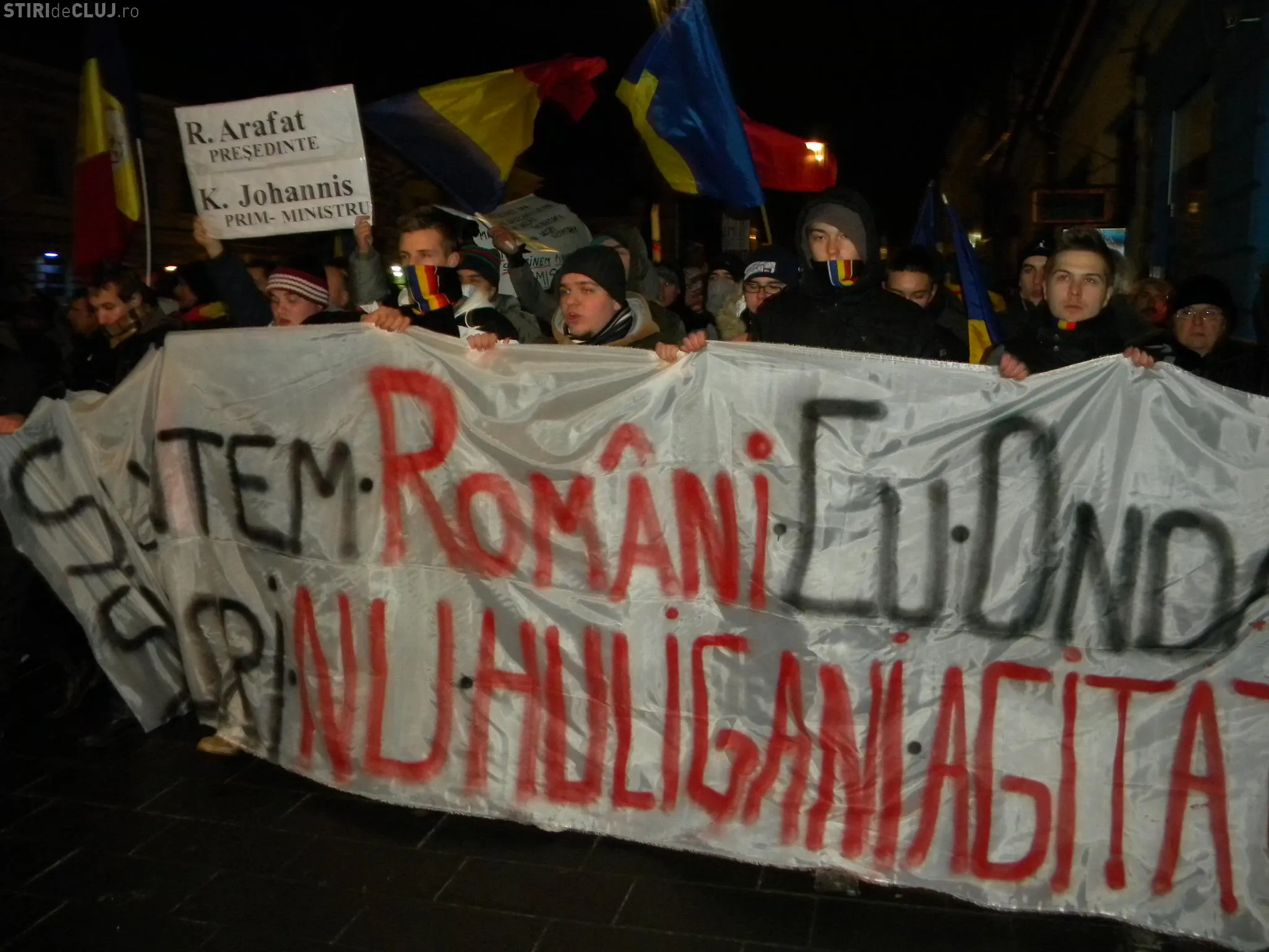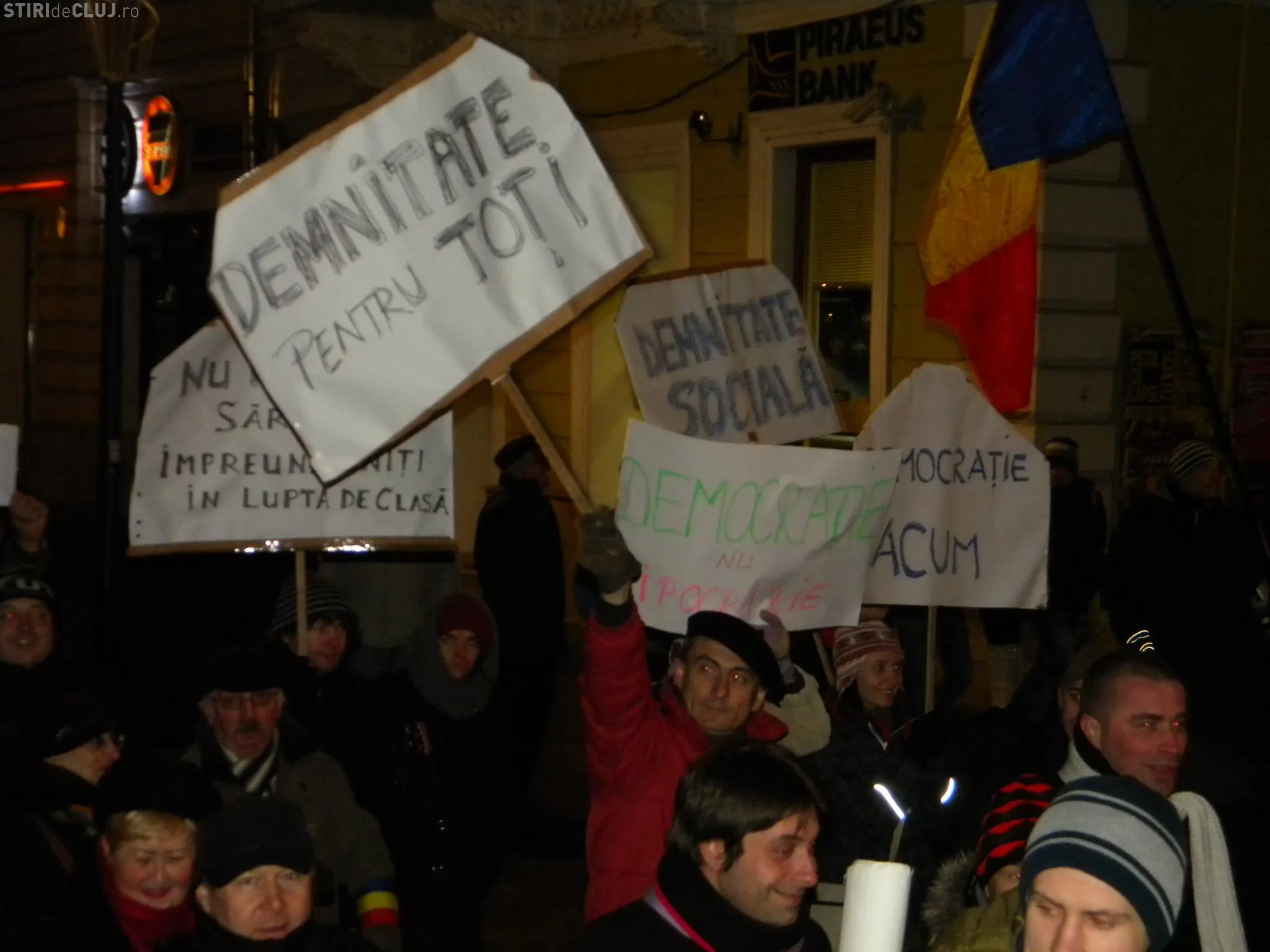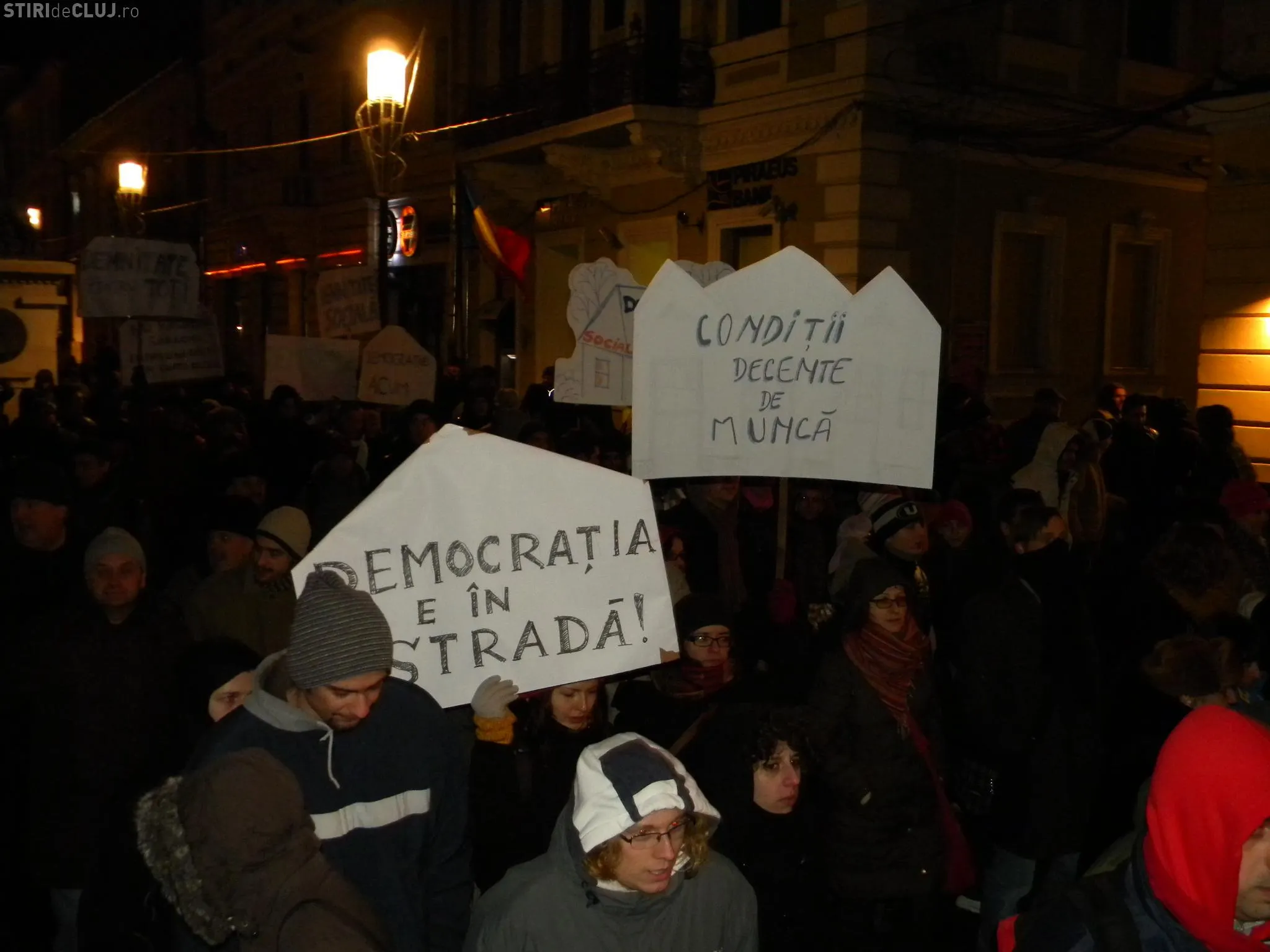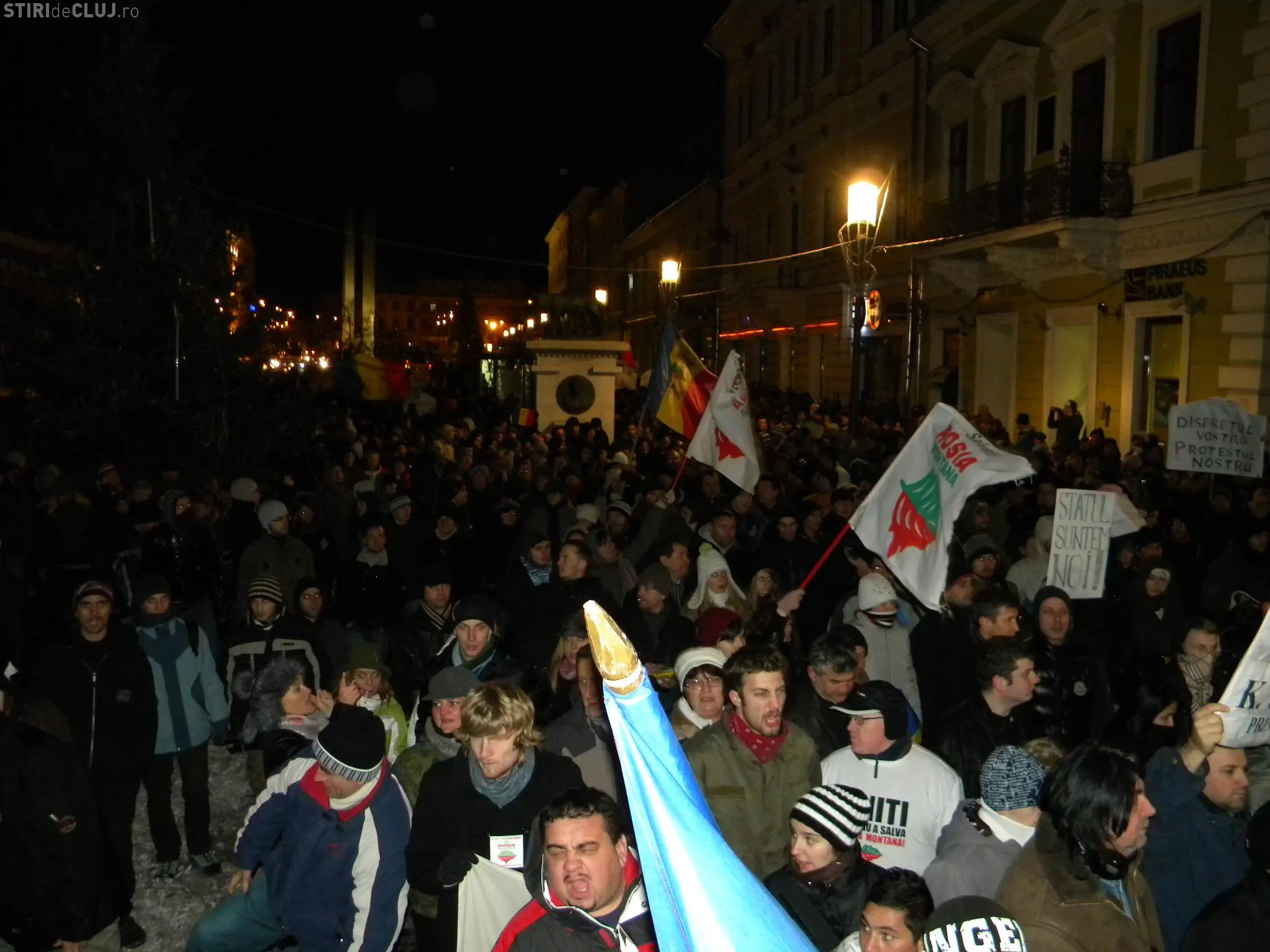 Protestatarii s-au strans initial in Piata Unirii, in jurul orei 19.00. Multimea a crescut de la 500 la peste 1000 de persoane si oamenii au pornit, la ora 20.00, intr-un mars pe Bulevardul Eroilor si s-au oprit la Prefectura Cluj.