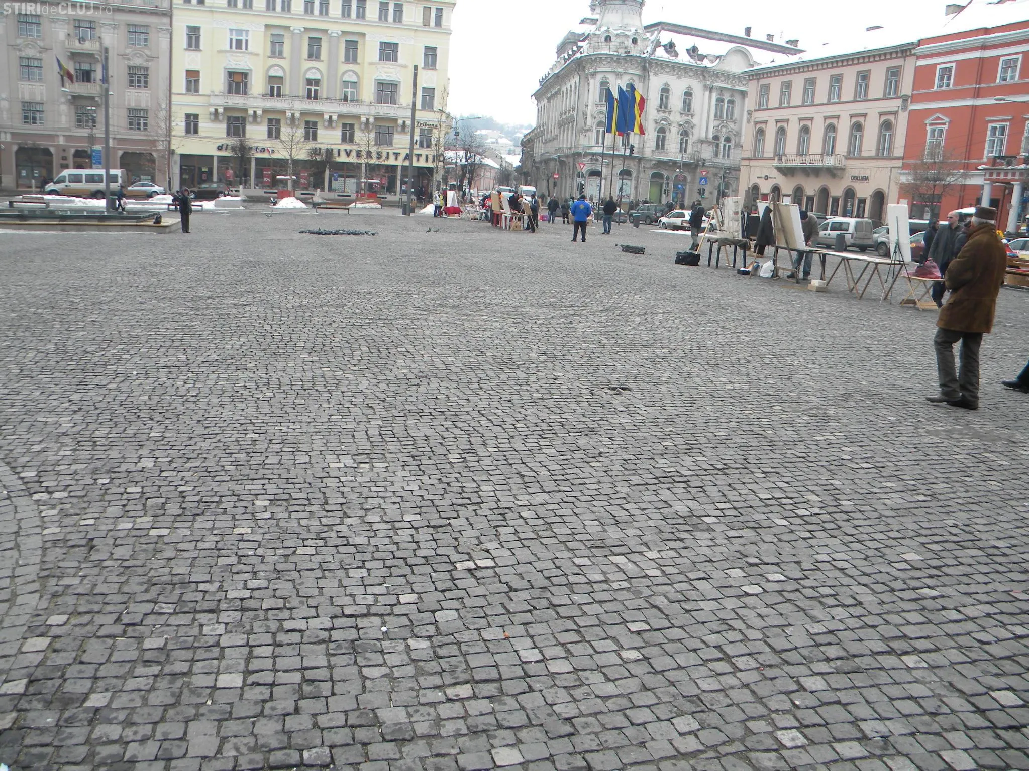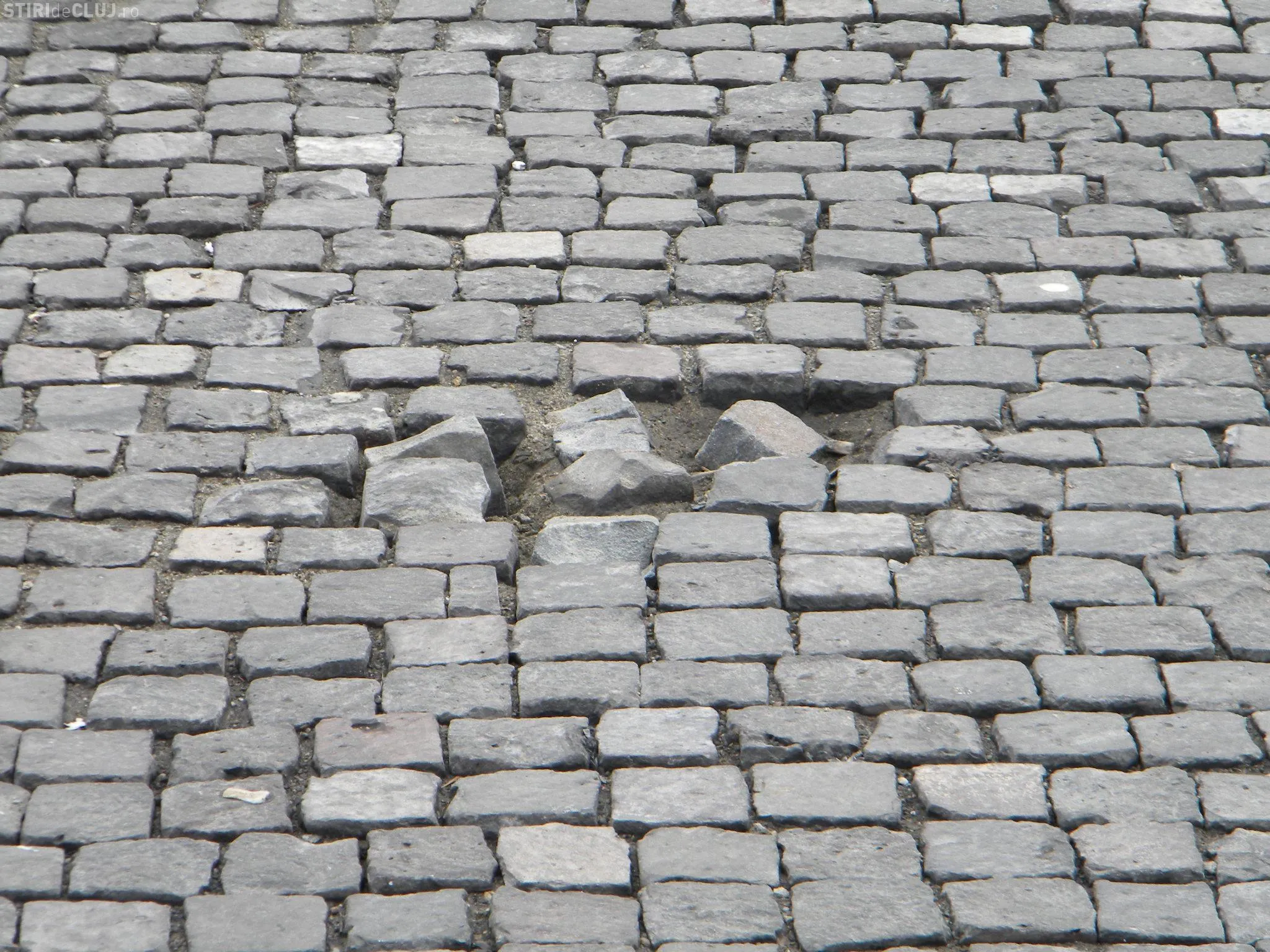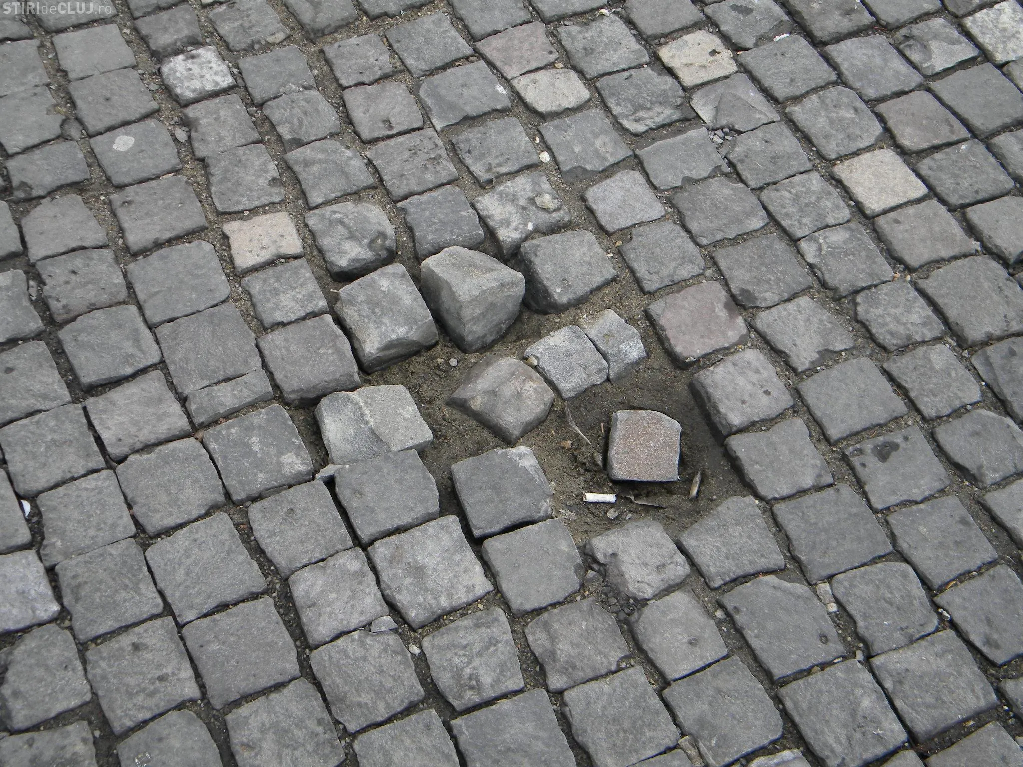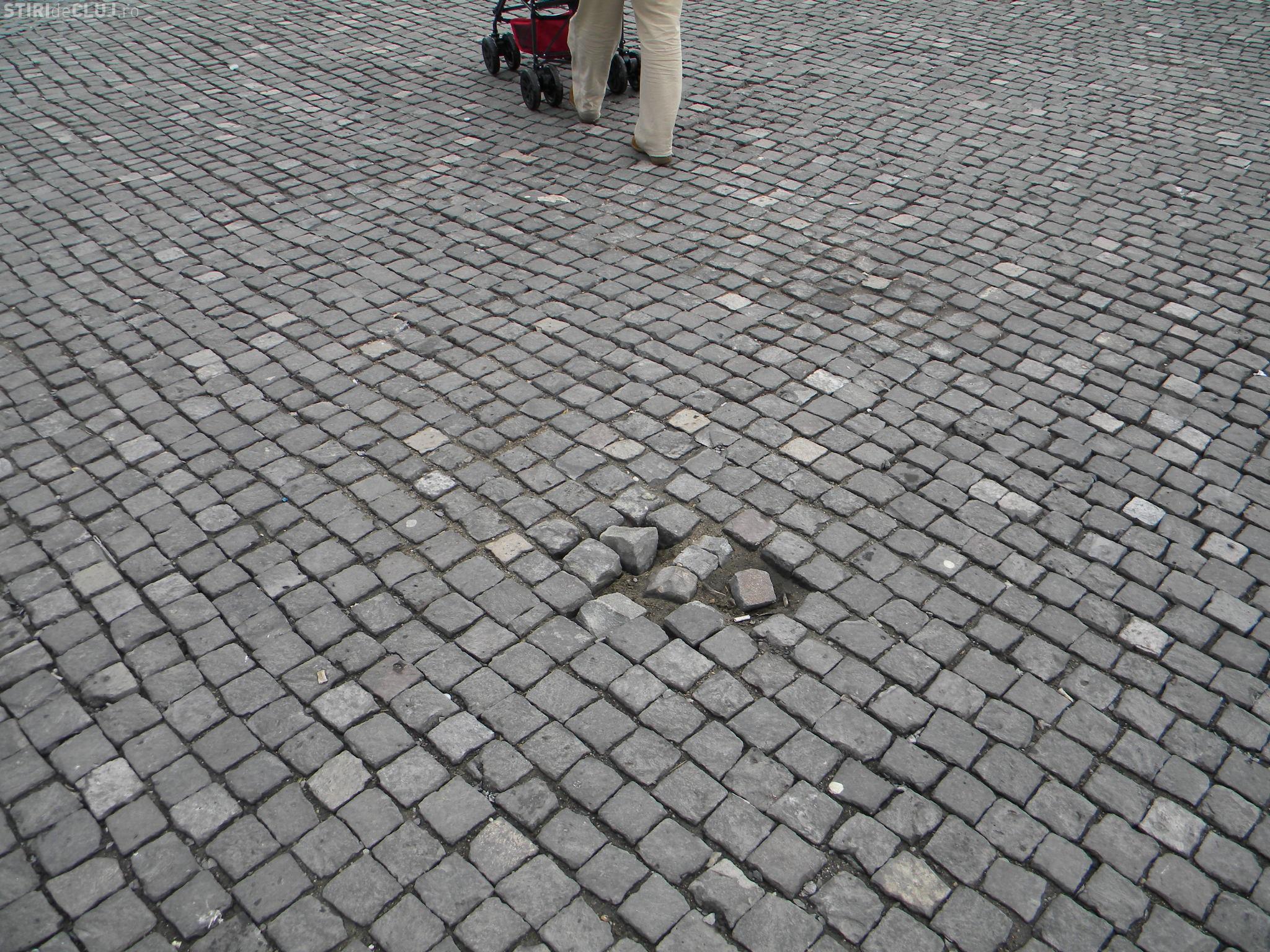 Piata cubica din Piata Unirii incepe sa dea semne de degradare. Dupa topirea zapezilor cateva bucati de piatra s-au desprins.