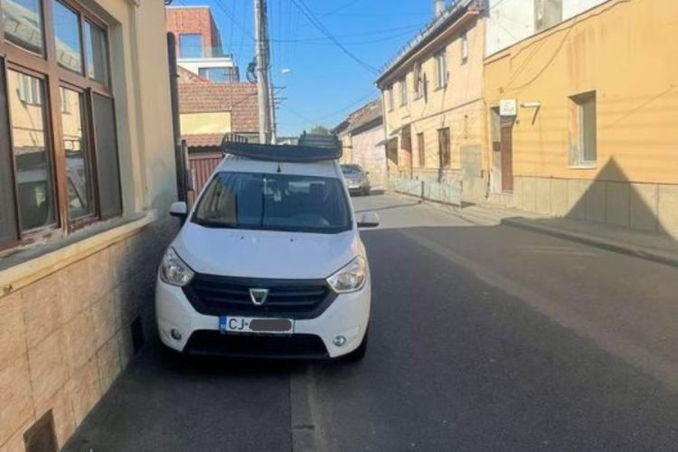 Pietonii care circulă pe strada Bogdan Petriceicu Haşdeu din Cluj-Napoca sunt îndemnați ironic să ia elicopterul, după ce un clujean și-a parcat mașina pe trotuar.