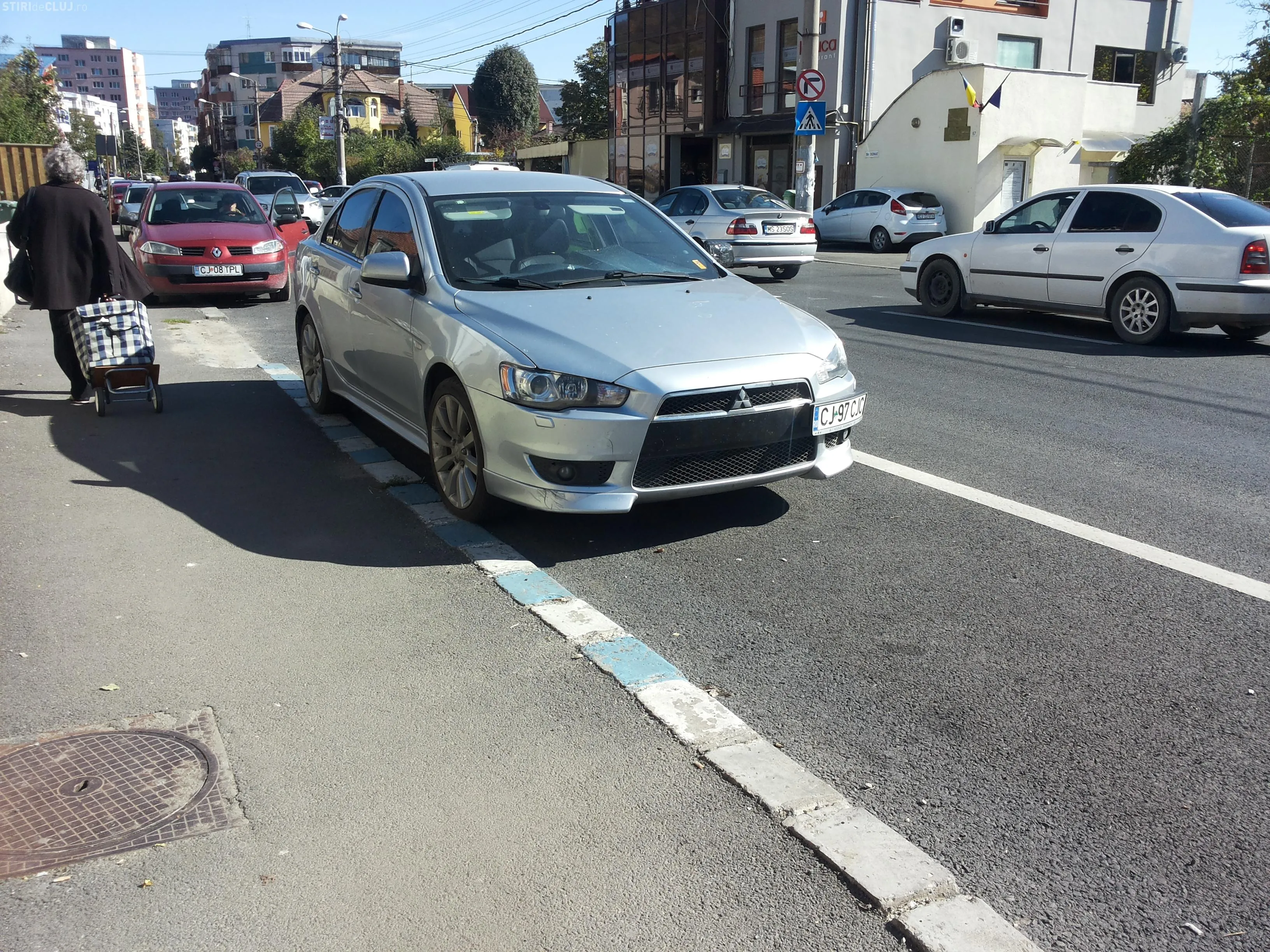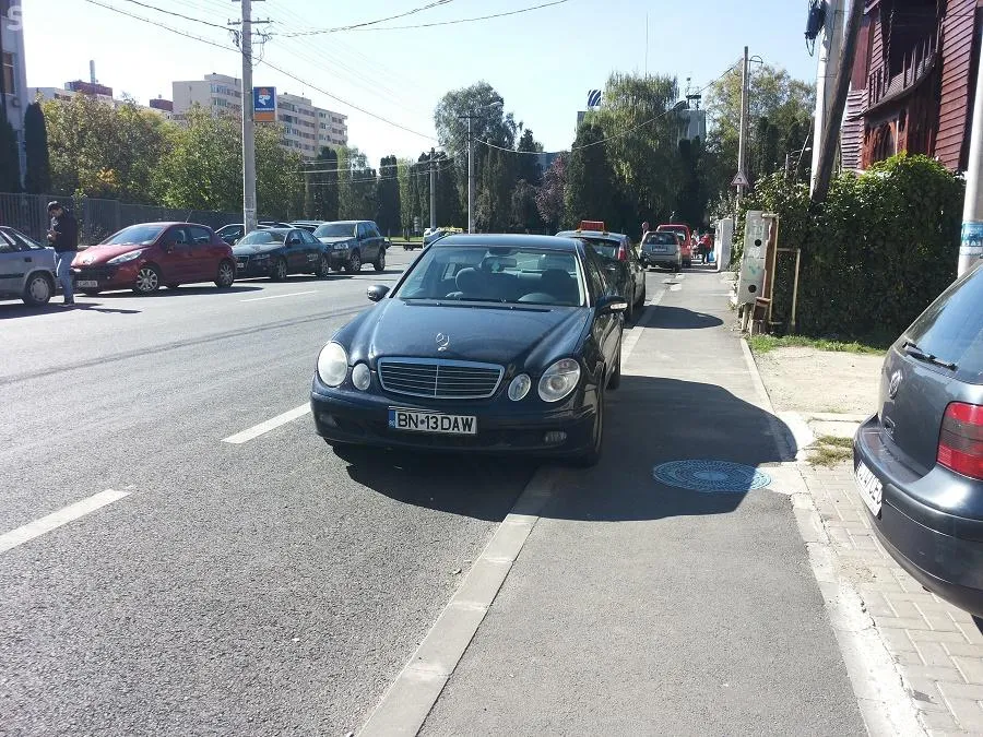 Mașinile parchează direct pe pistă, iar bicicliștii sunt nevoiți să circule prin trafic, pe stradă.